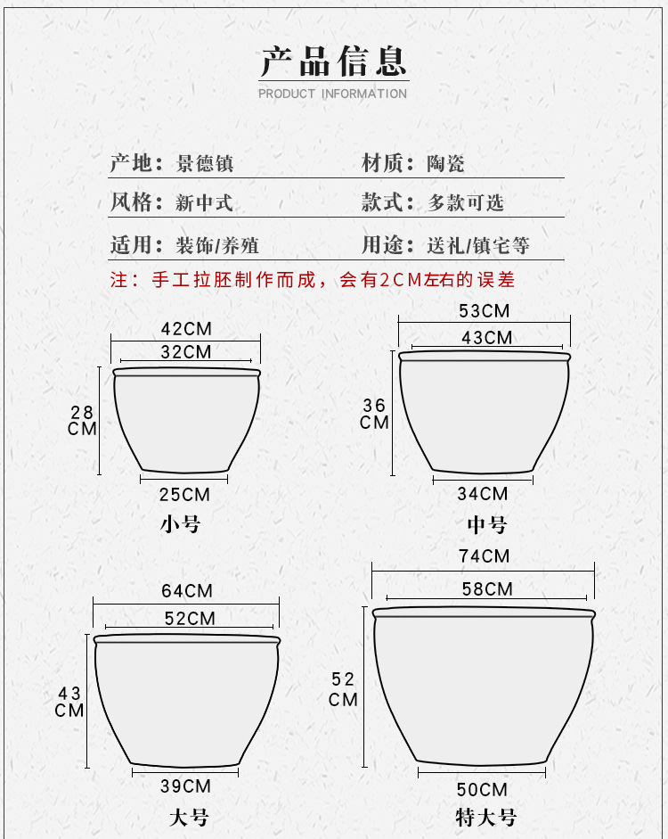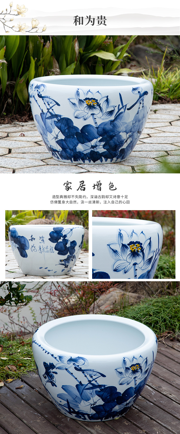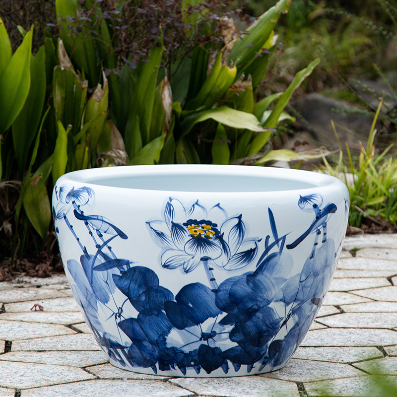 Большой керамический аквариум для внутреннего двора из Цзиндэчжэня, подходящий для разведения лотоса, чашевого лотоса, водяных лилий и черепах; аквариум для черепах в отеле.