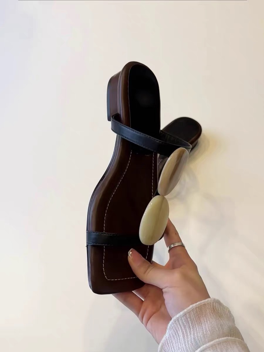 Нишевые женские тапочки во французском стиле, римские туфли с открытым квадратным носком, пляжные туфли на плоской подошве.