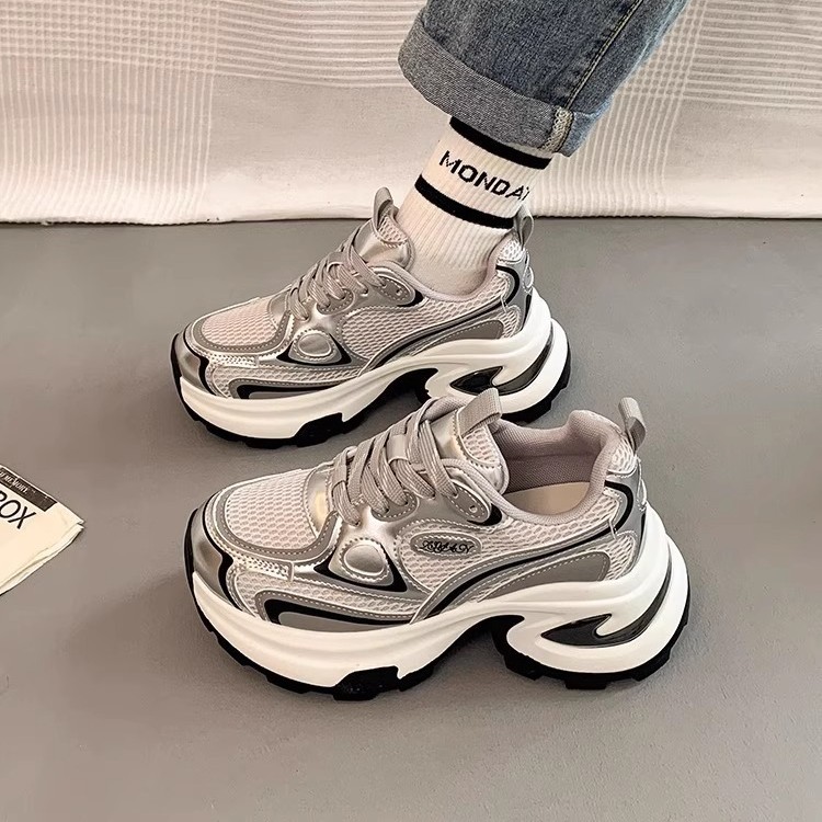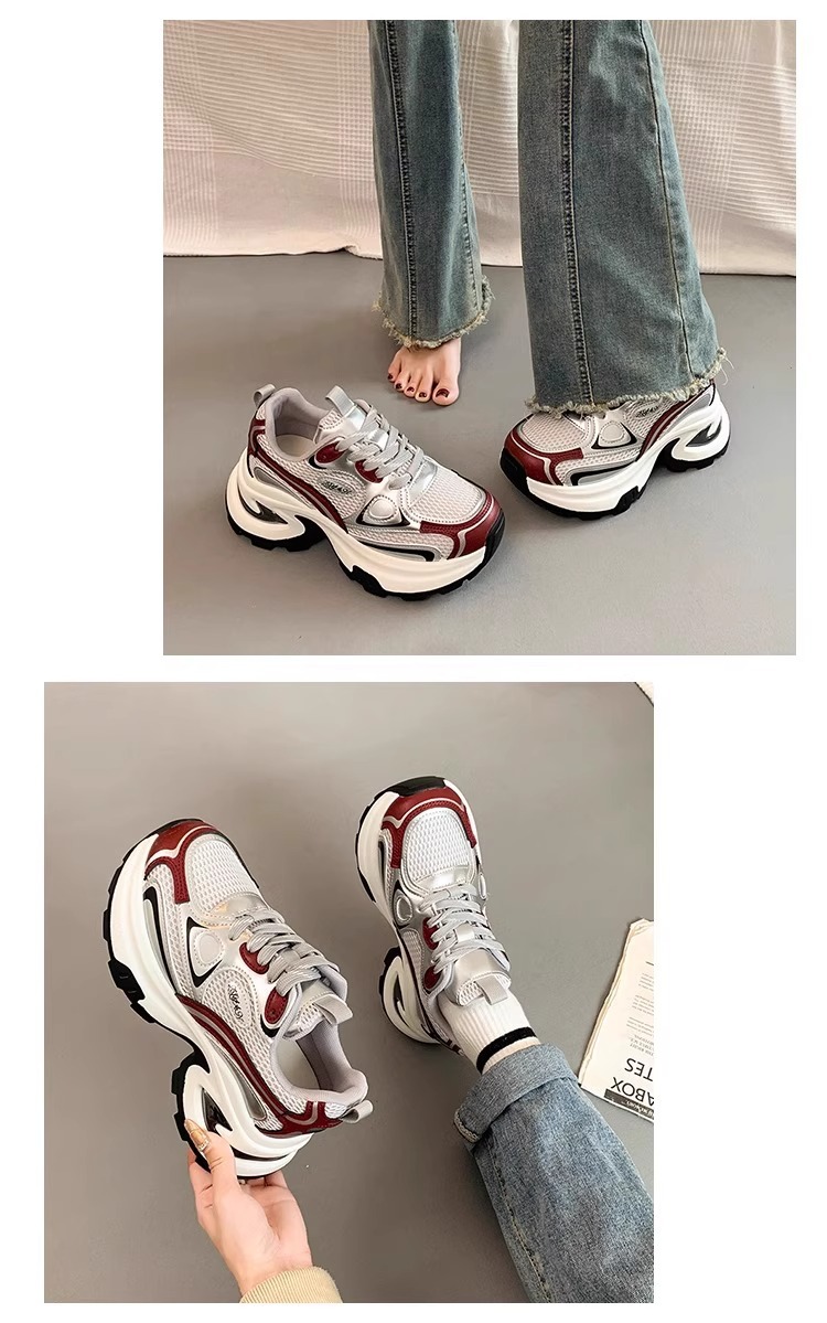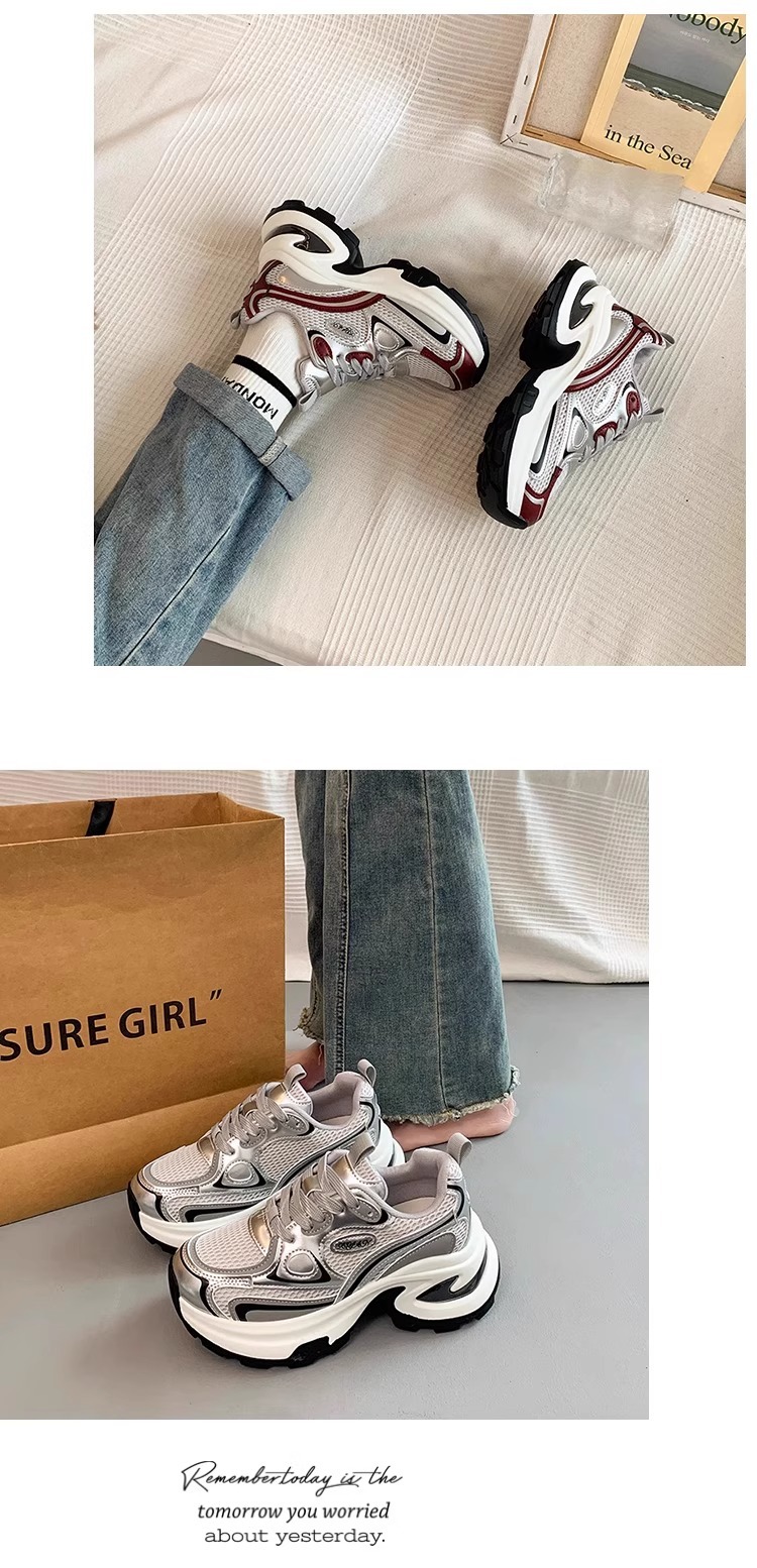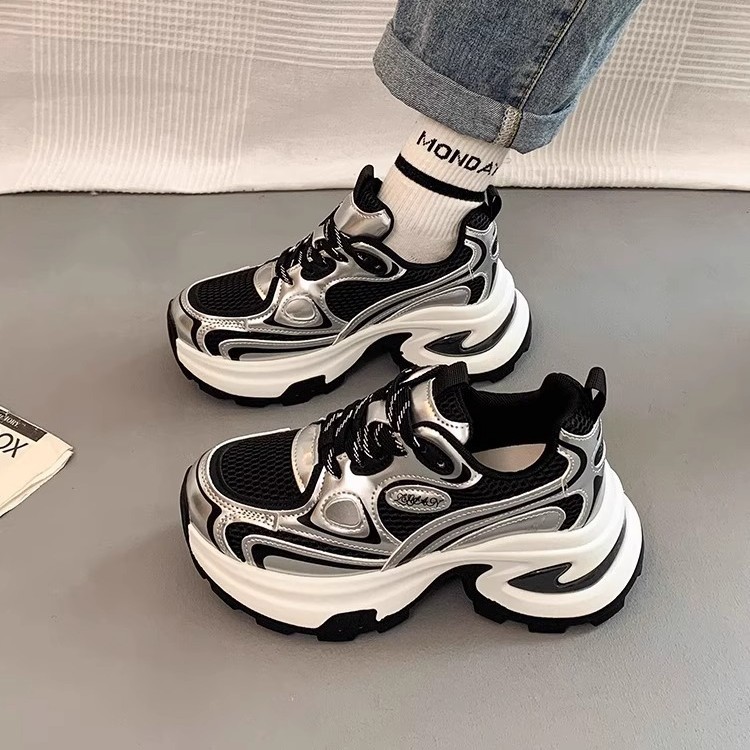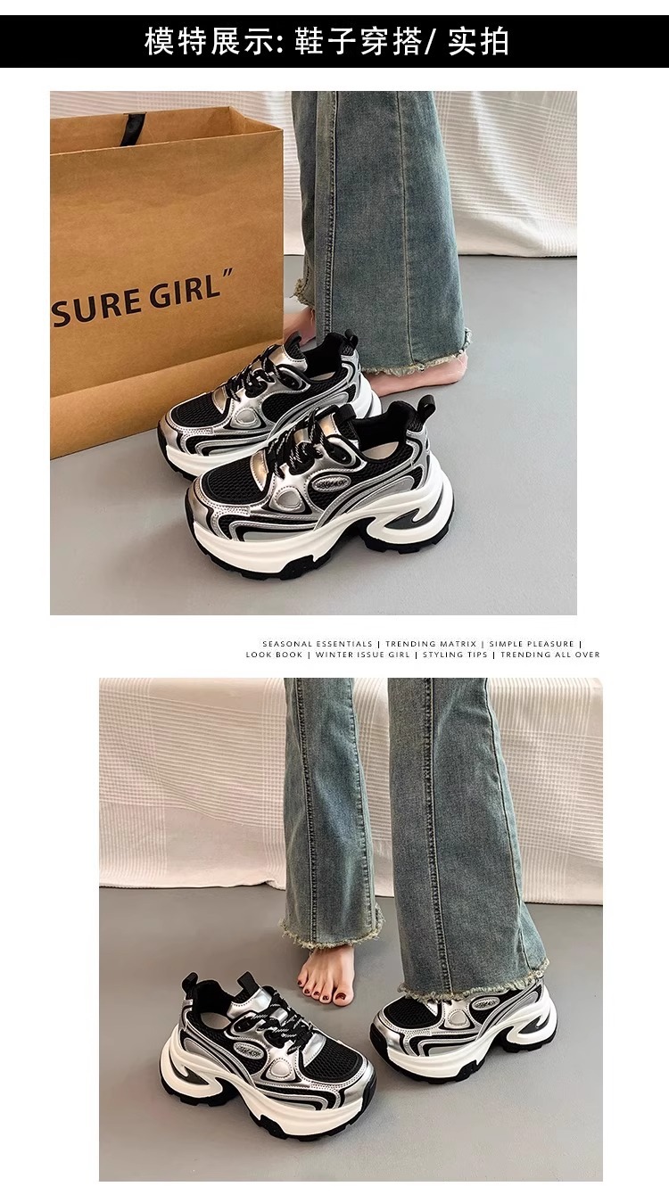 Сетчатая дышащая папочка обувь женская 2025 новая летняя толстая подошва увеличена тонкая легкая повседневная спортивная обувь