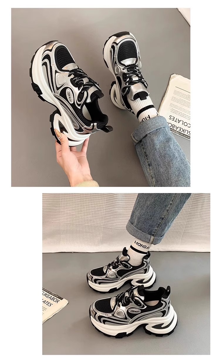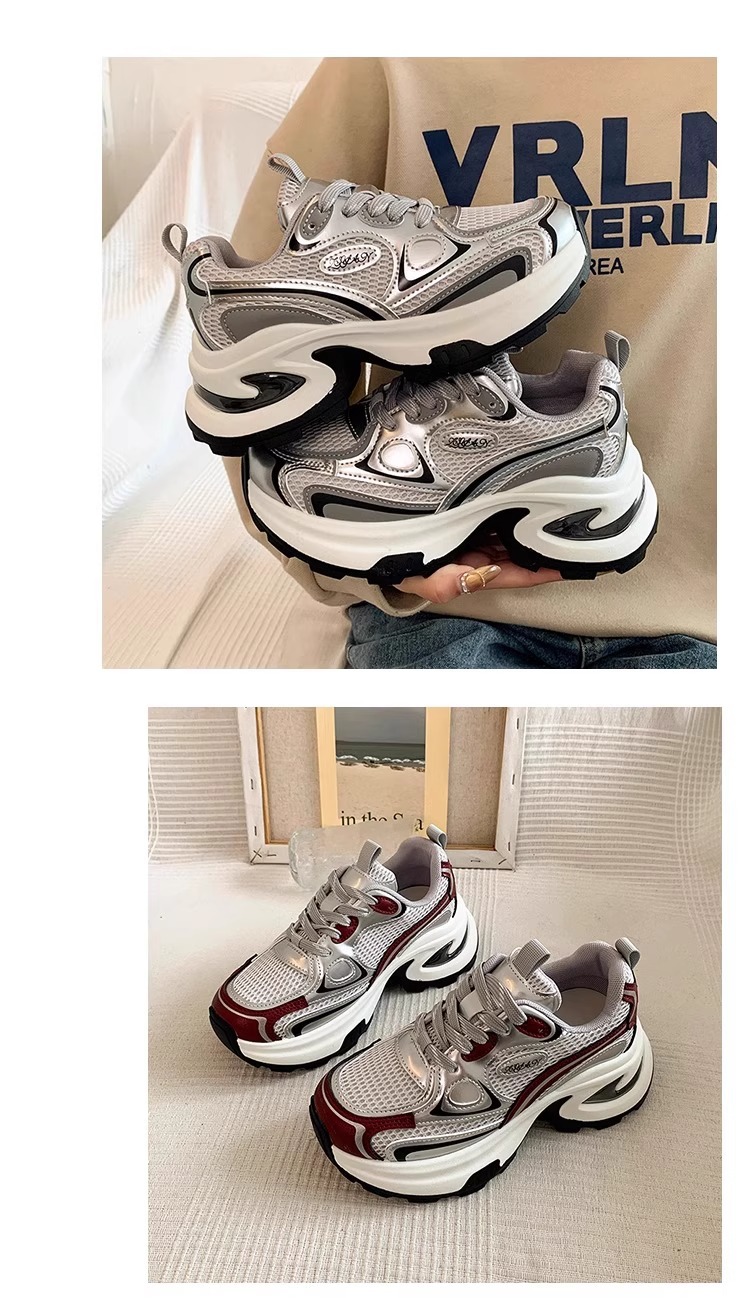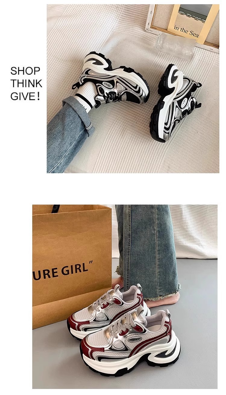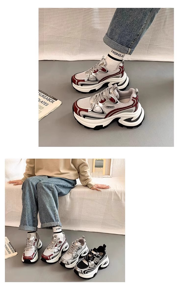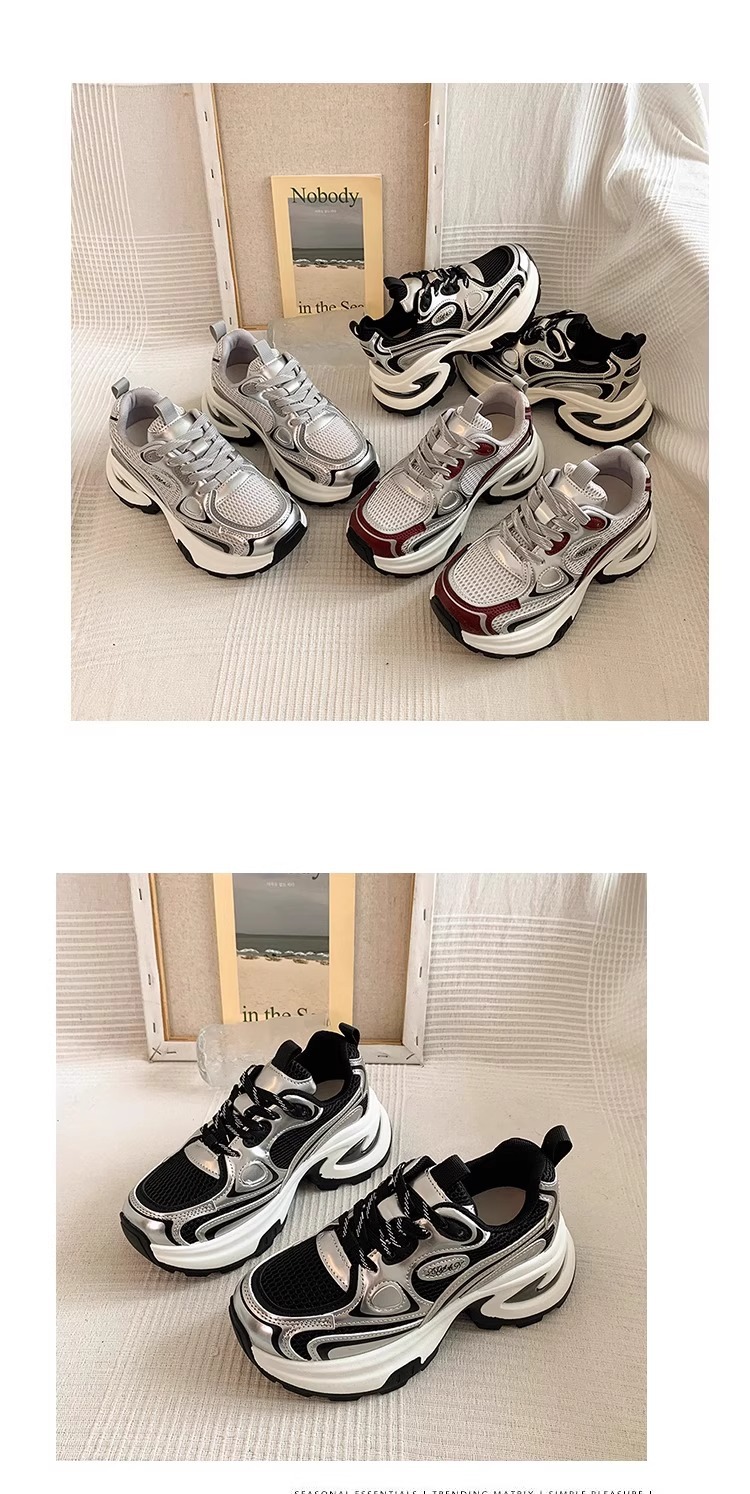 Сетчатая дышащая папочка обувь женская 2025 новая летняя толстая подошва увеличена тонкая легкая повседневная спортивная обувь