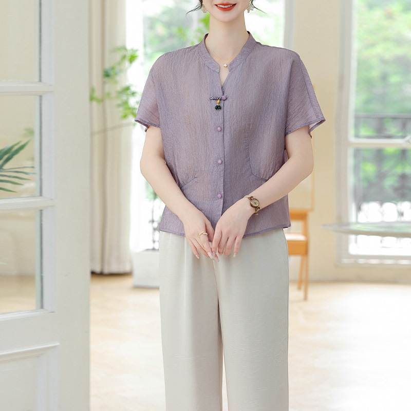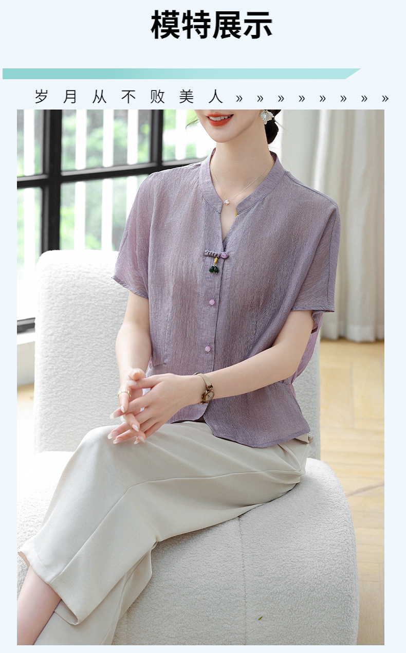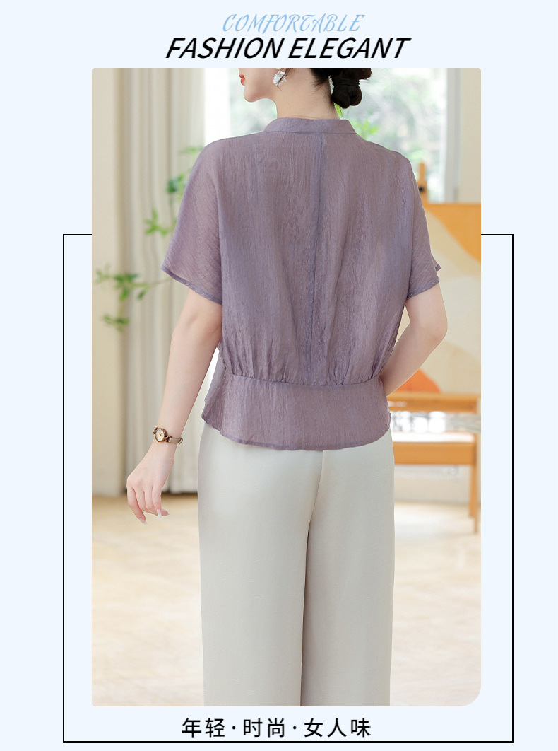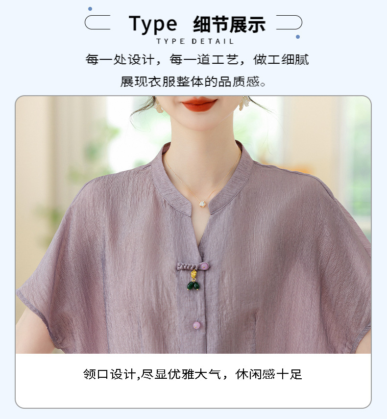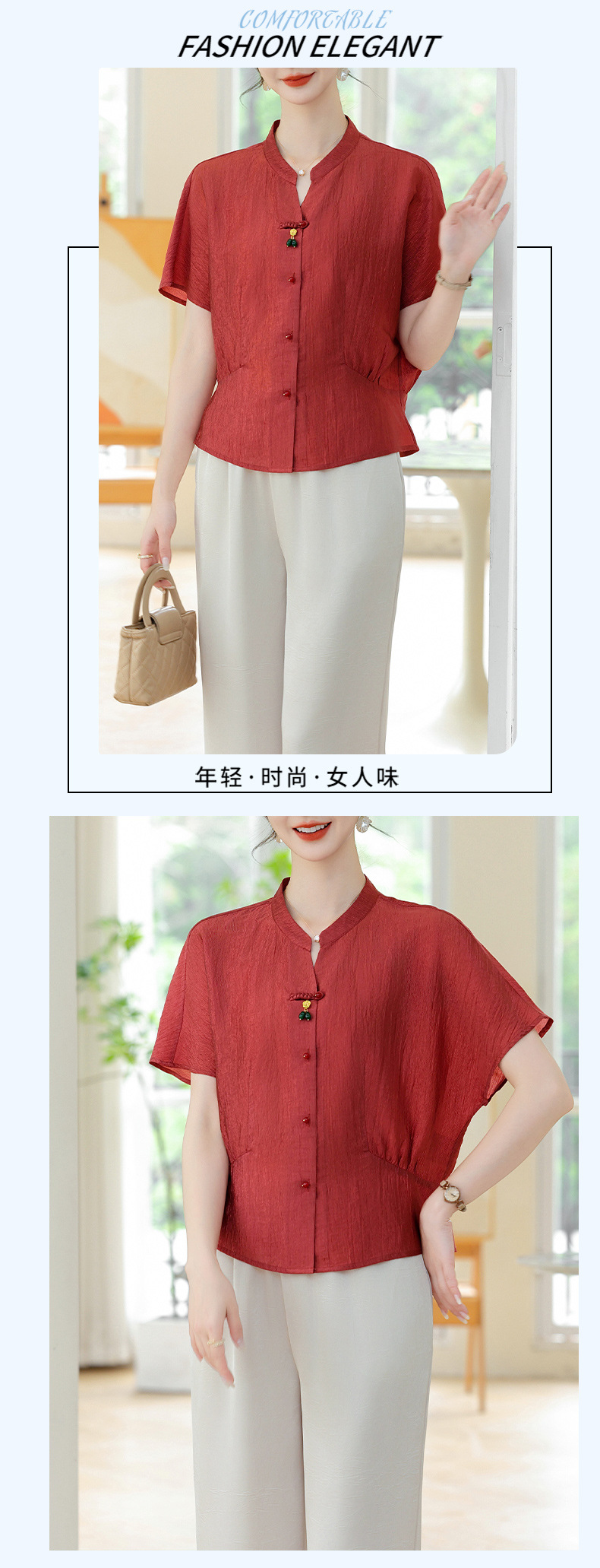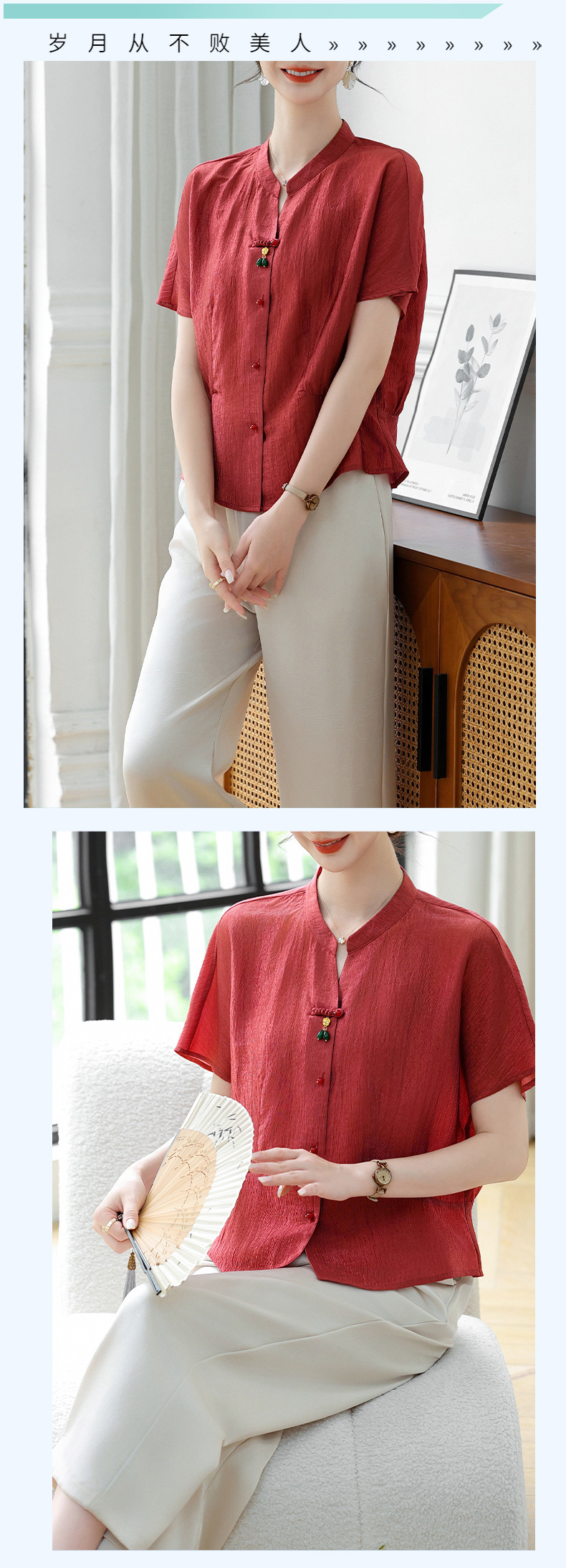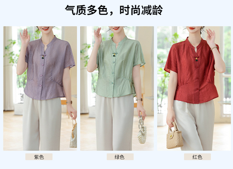 Новое летнее платье для мамы в китайском стиле, ацетатная атласная рубашка с короткими рукавами и летучей мышью, модный топ из ледяного шелка для женщин среднего и пожилого возраста