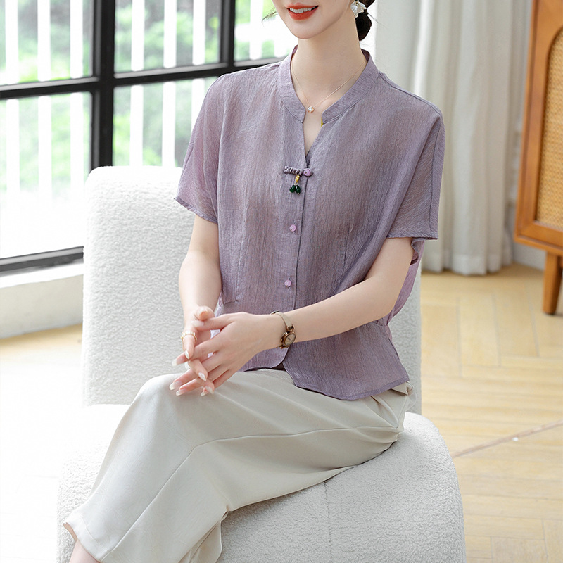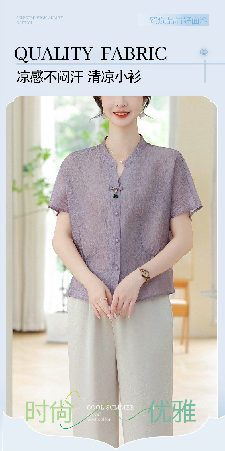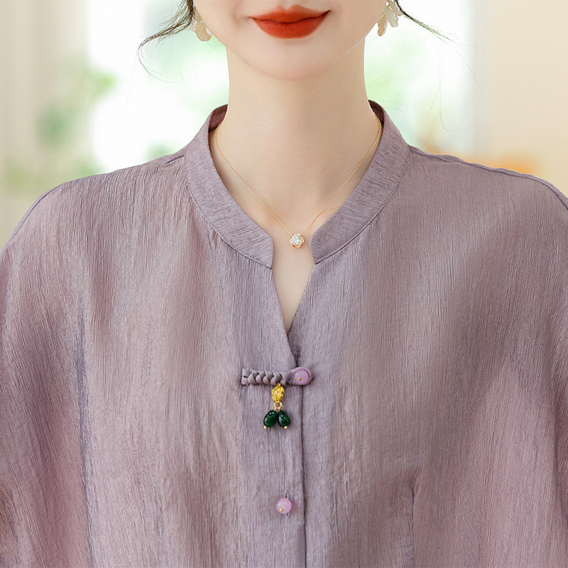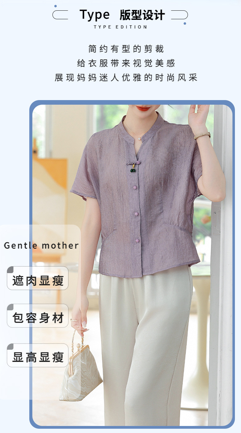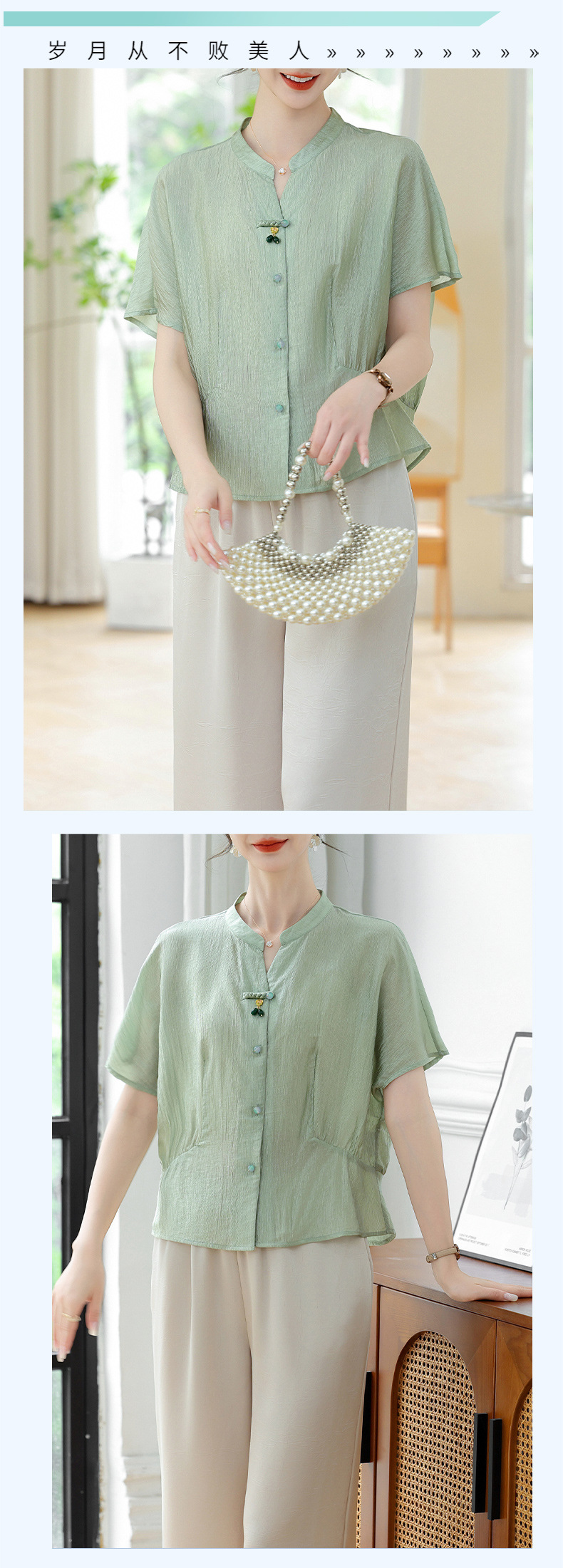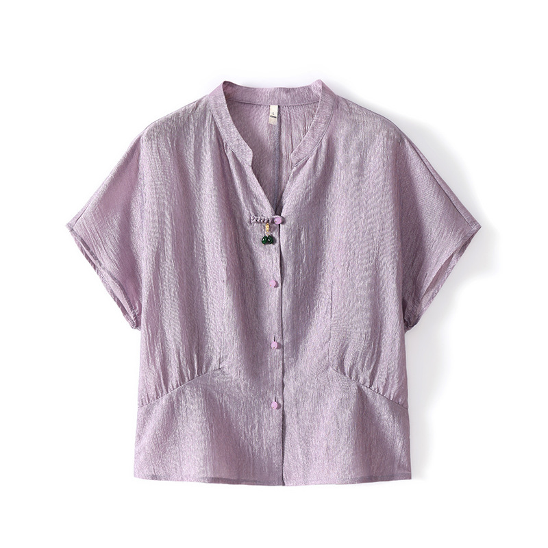 Новое летнее платье для мамы в китайском стиле, ацетатная атласная рубашка с короткими рукавами и летучей мышью, модный топ из ледяного шелка для женщин среднего и пожилого возраста