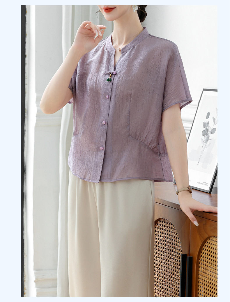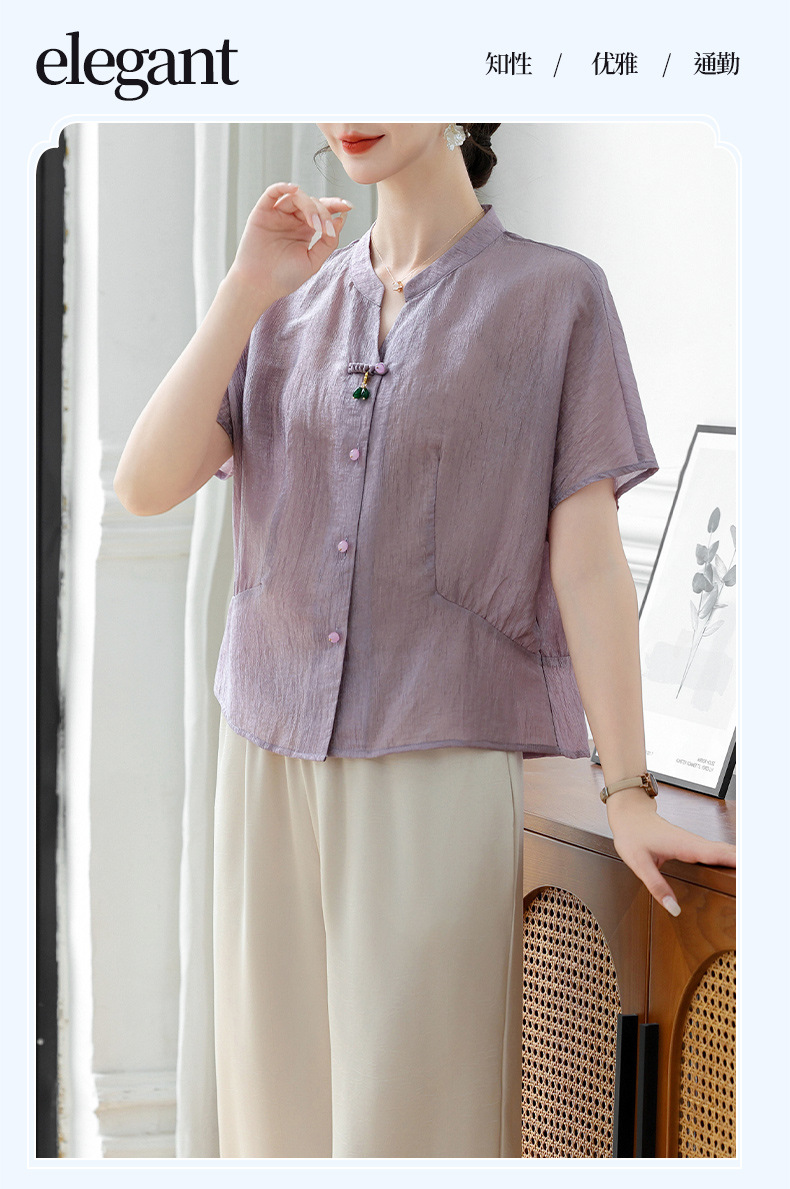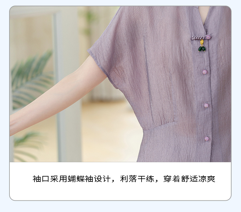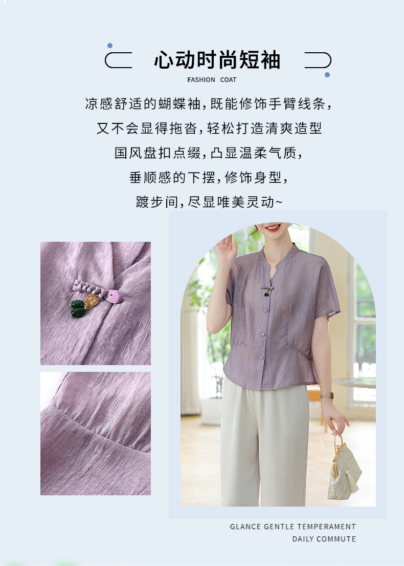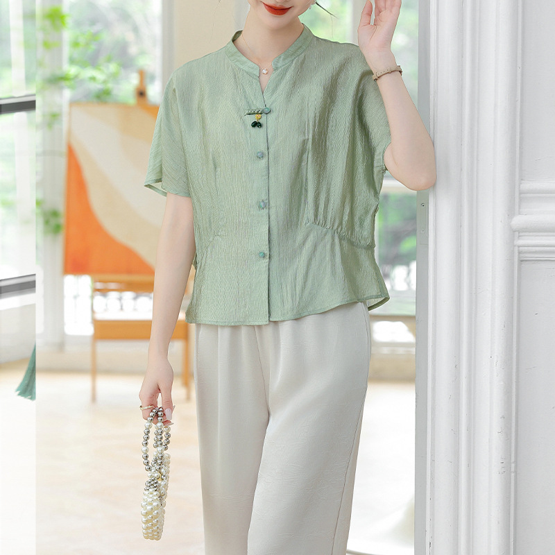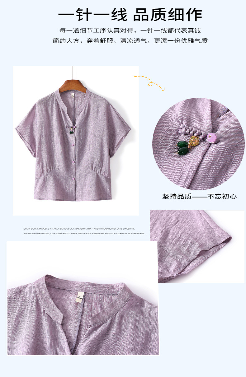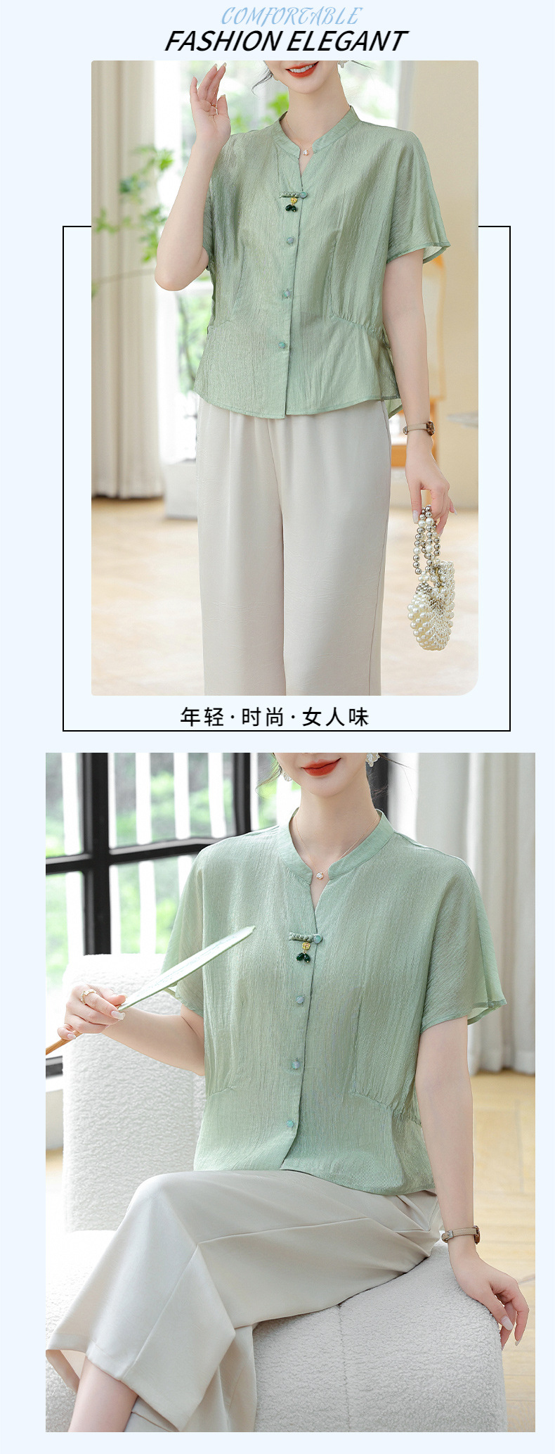 Новое летнее платье для мамы в китайском стиле, ацетатная атласная рубашка с короткими рукавами и летучей мышью, модный топ из ледяного шелка для женщин среднего и пожилого возраста