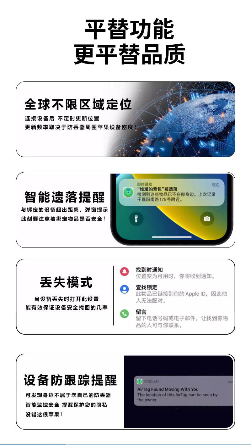 Беспроводной глобальный трекер-альтернатива AirTag для iOS, для пожилых людей, детей, велосипедов, мотоциклов, устройство против потери