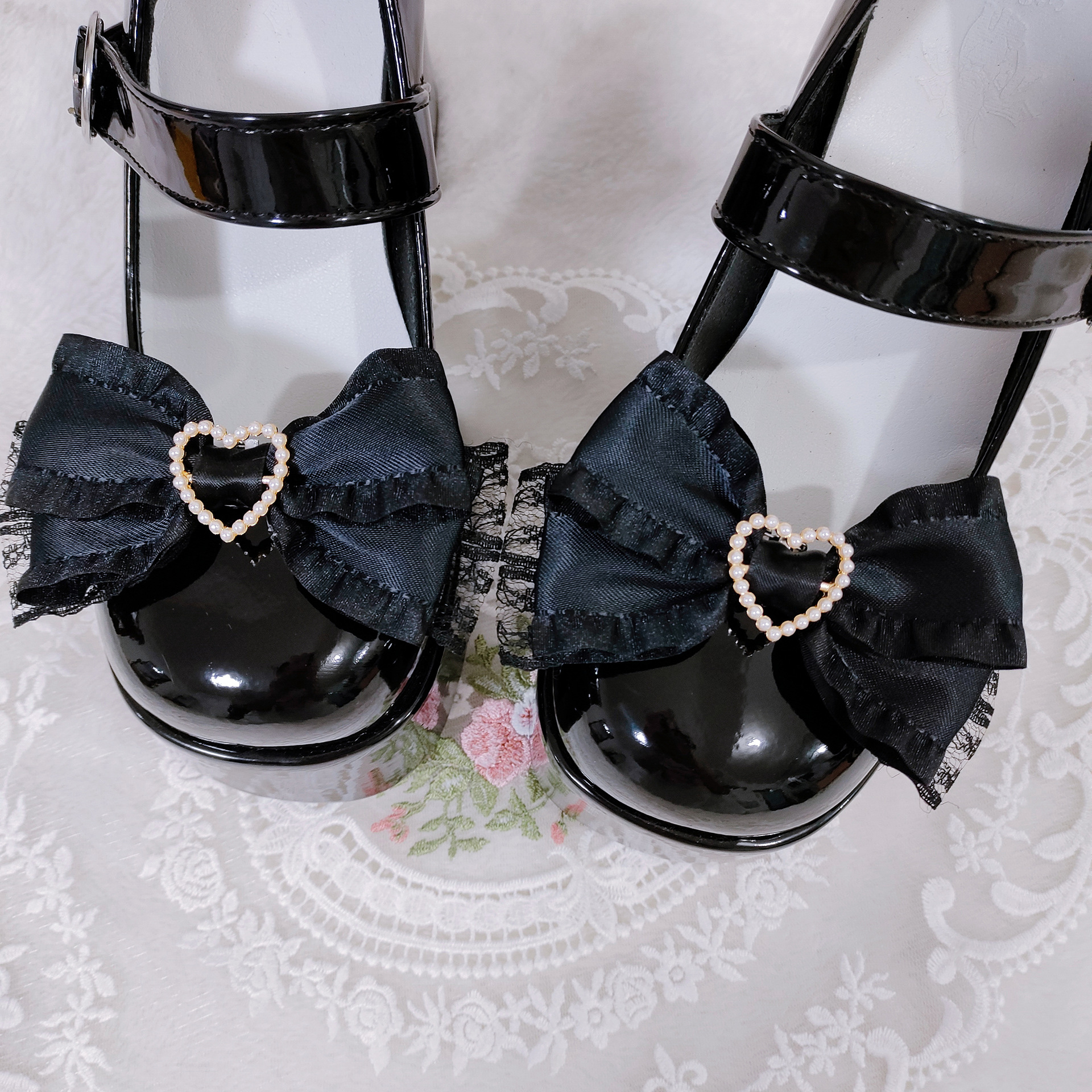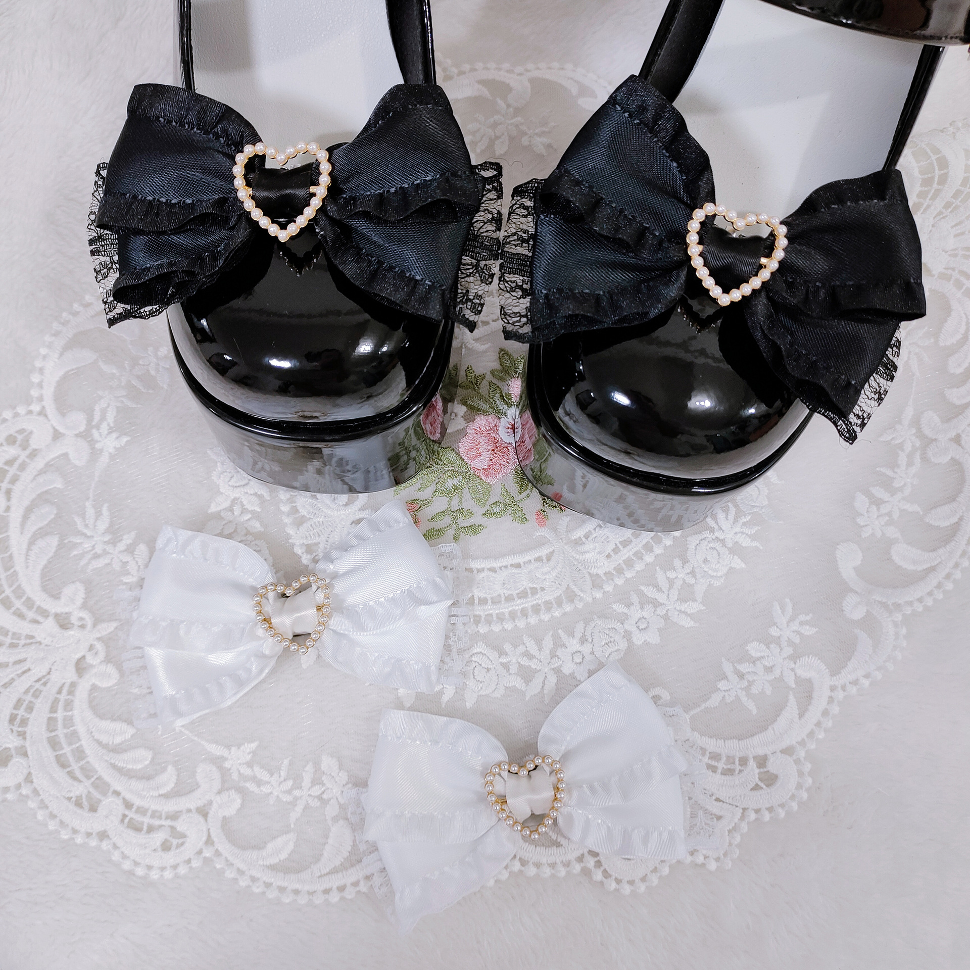 Оригинальный милый и милый жемчужный сердечный зажим ручной работы в японском стиле, универсальный базовый зажим для обуви в стиле Лолиты с бантом