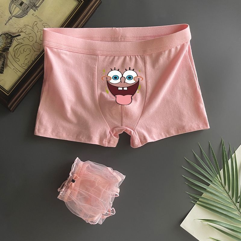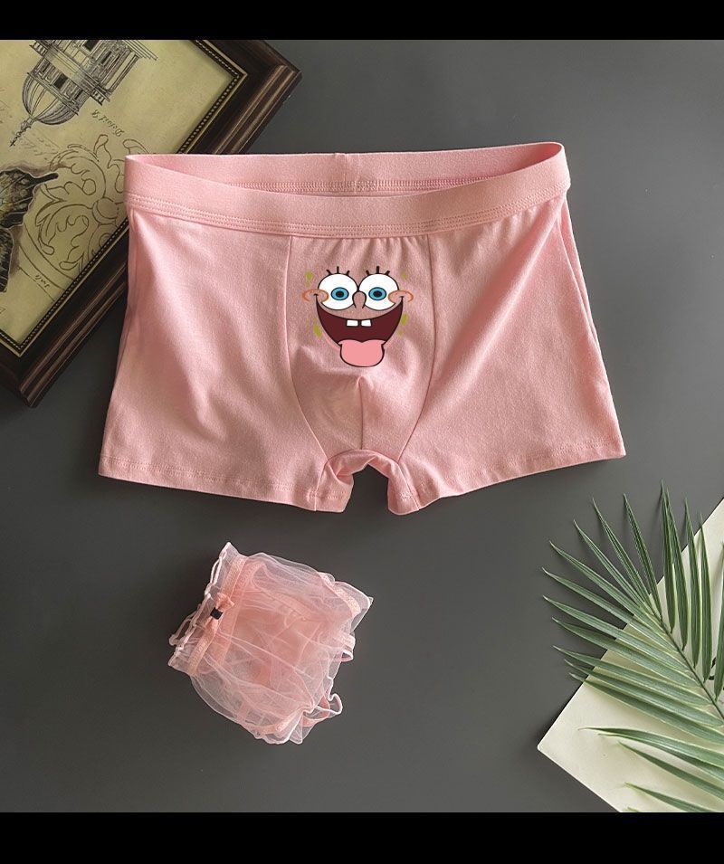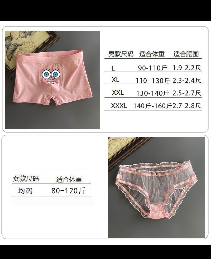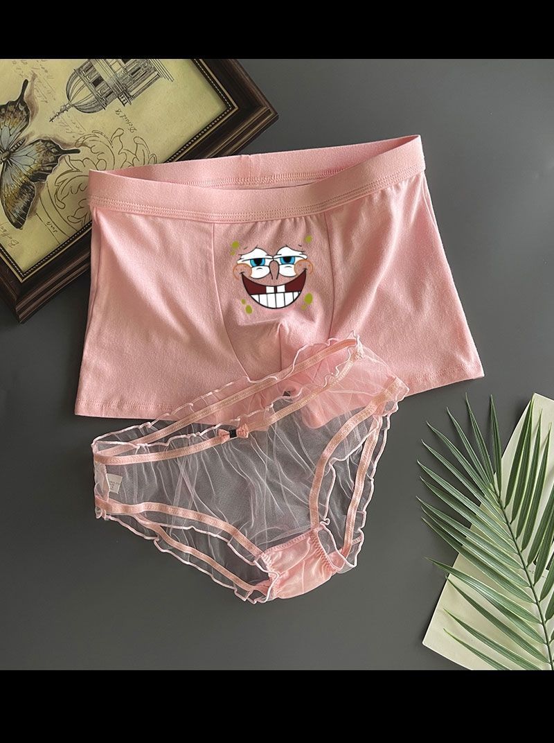 Нижнее белье для пары Губки Боба, один мужчина и одна женщина, розовое милое мультяшное сексуальное кружевное летнее бесшовное ледяное шелковое белье для мужчин и женщин