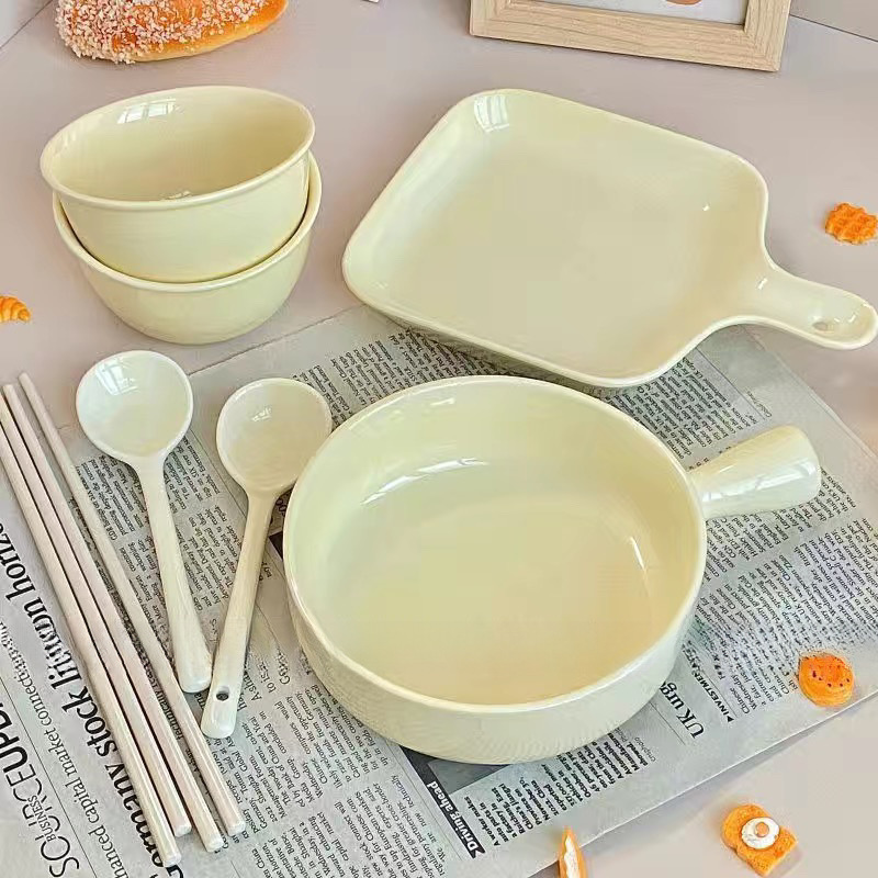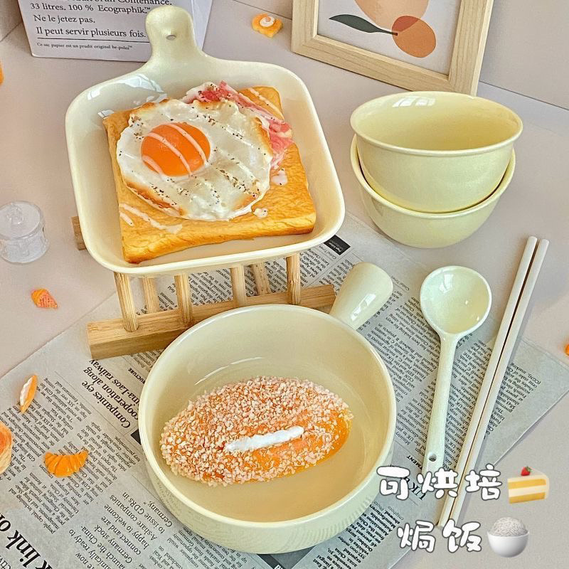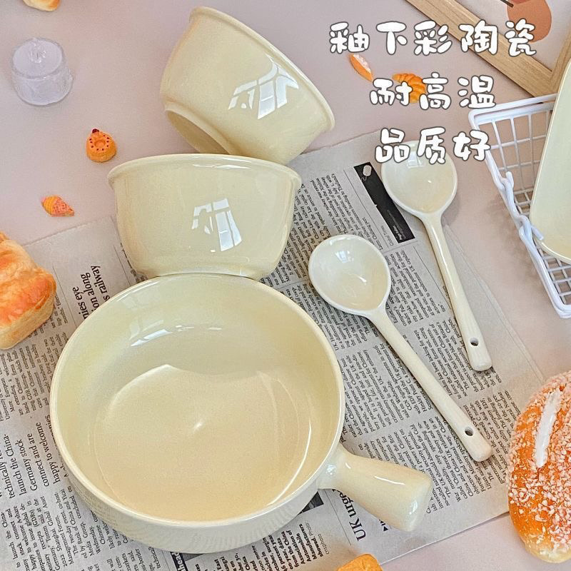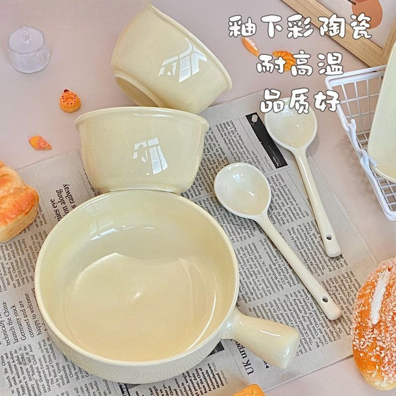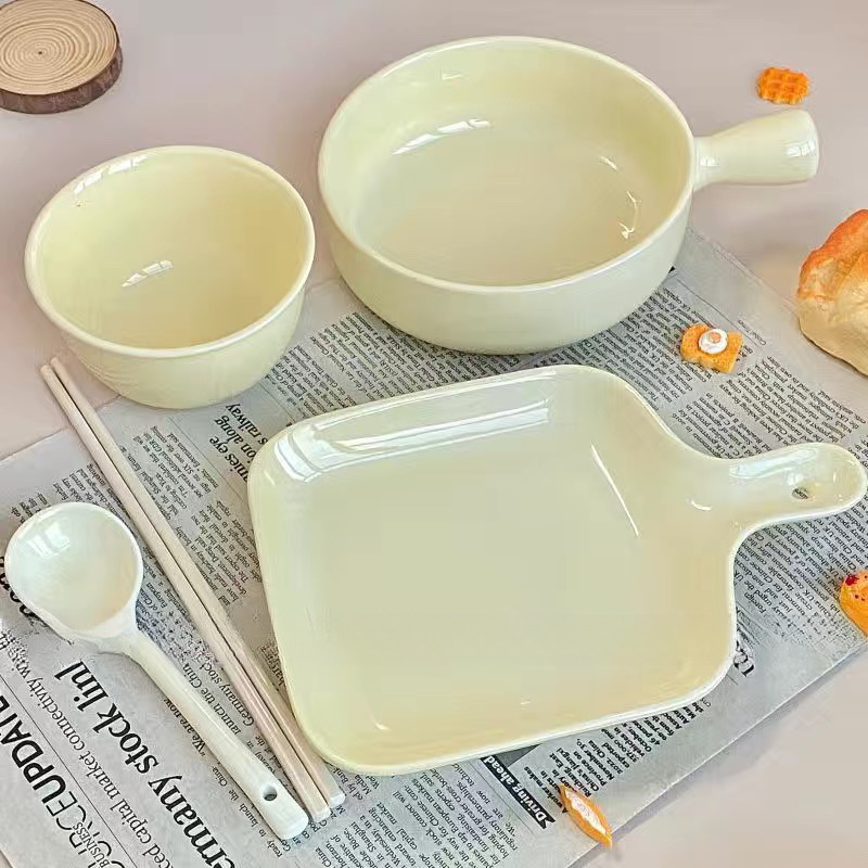 [Лечебная посуда кремово-желтого цвета] Высококачественная подглазурная керамика