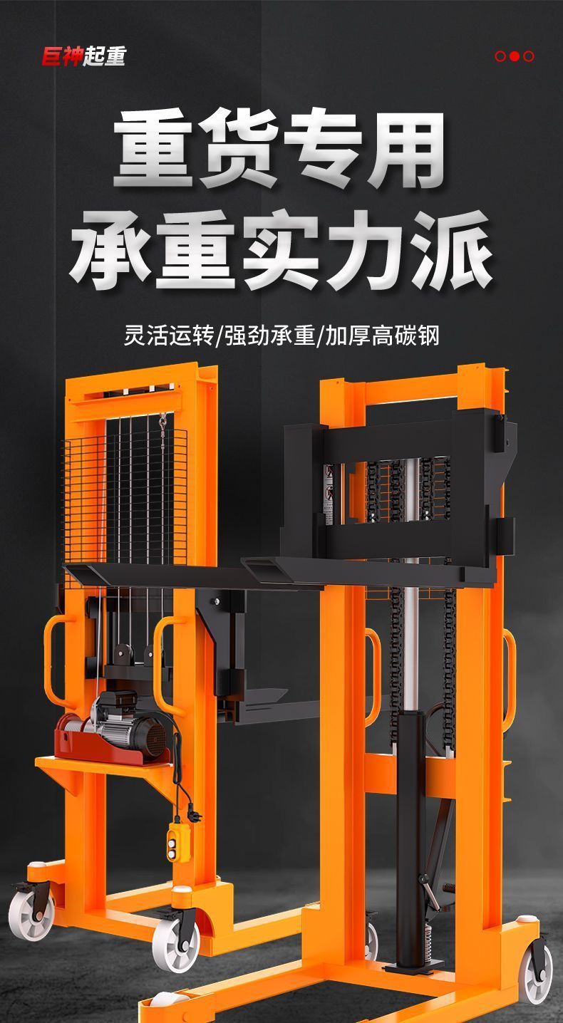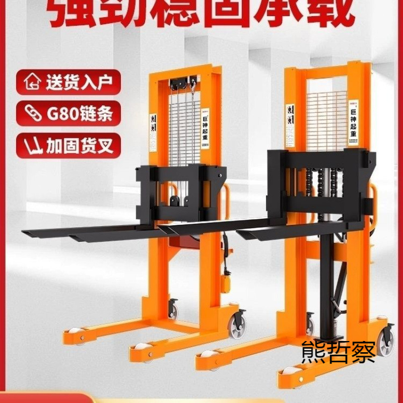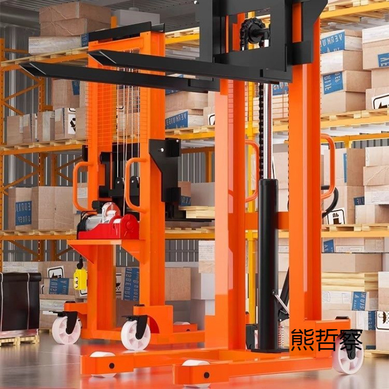 Ручной гидравлический электрический погрузчик для подъема и транспортировки грузов.