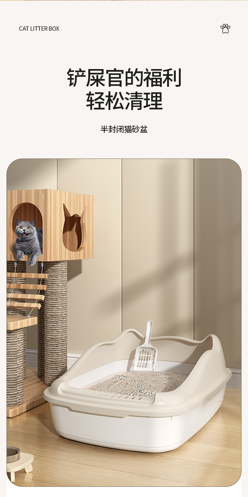 Очень большой полузакрытый лоток для кошачьего туалета с пластиковым совком, моющийся, предотвращает разбрасывание наполнителя, доступен оптом и дропшиппинг.