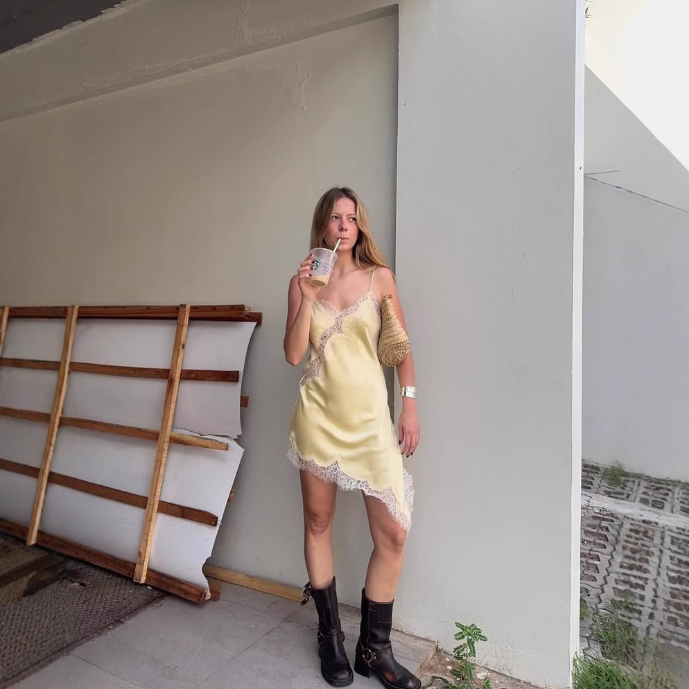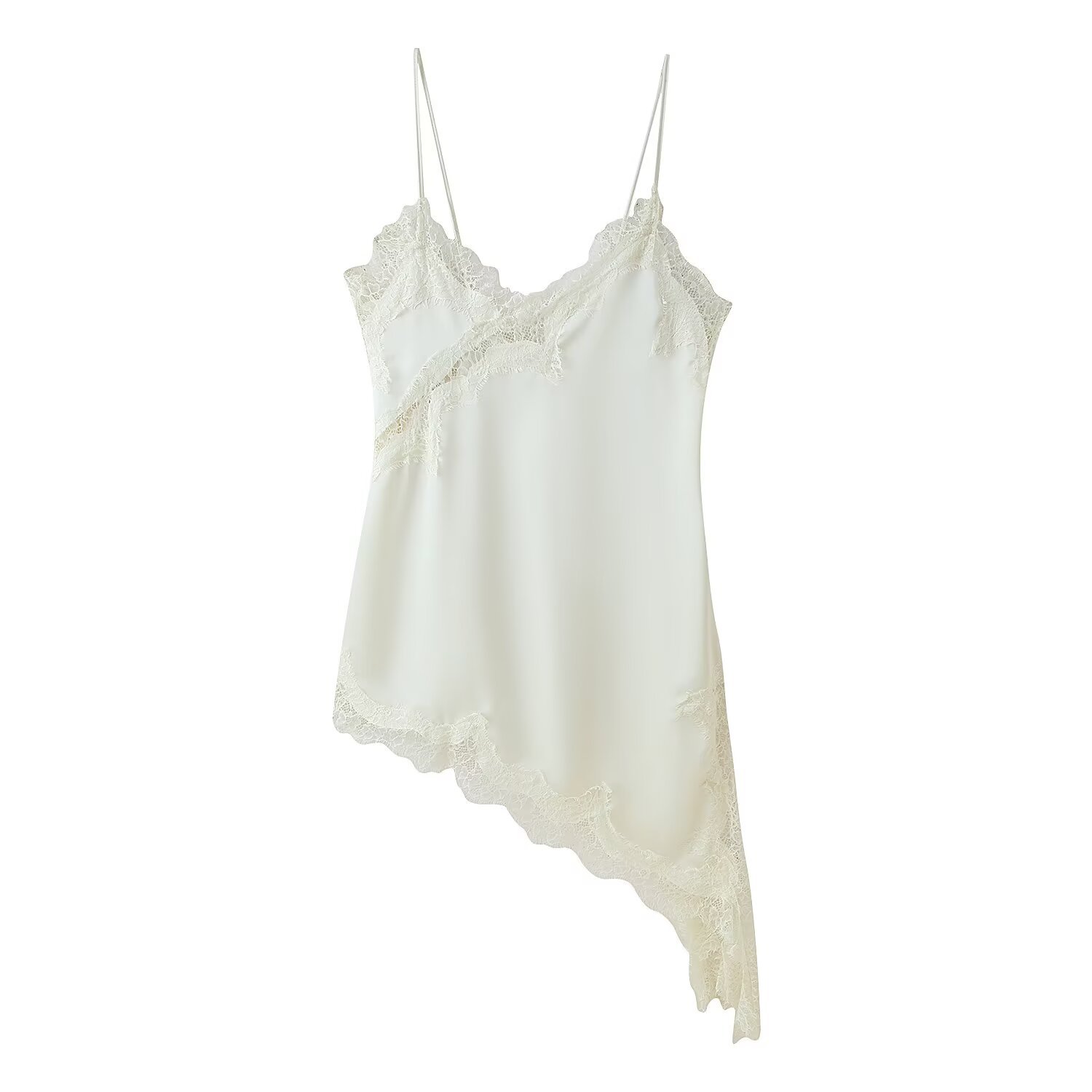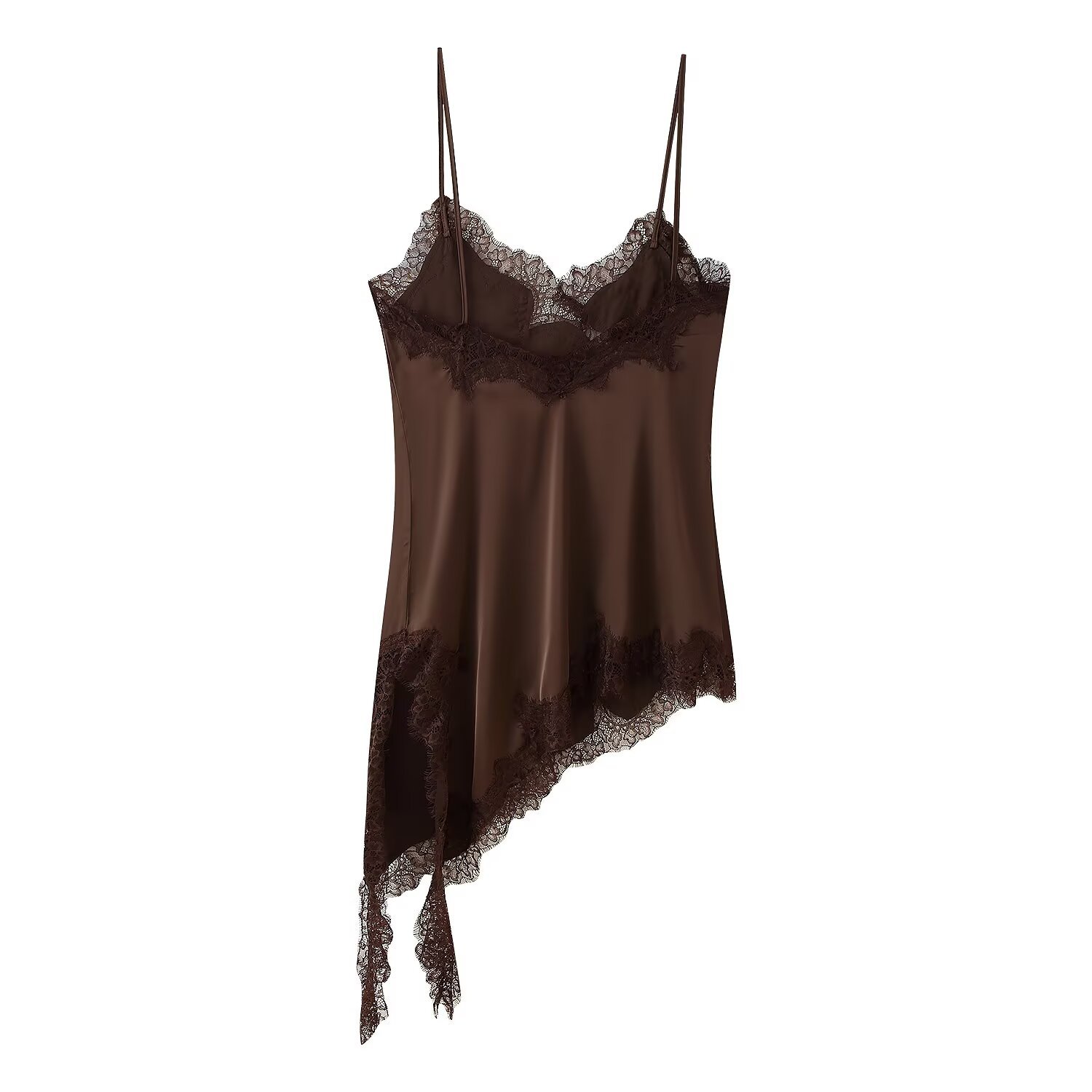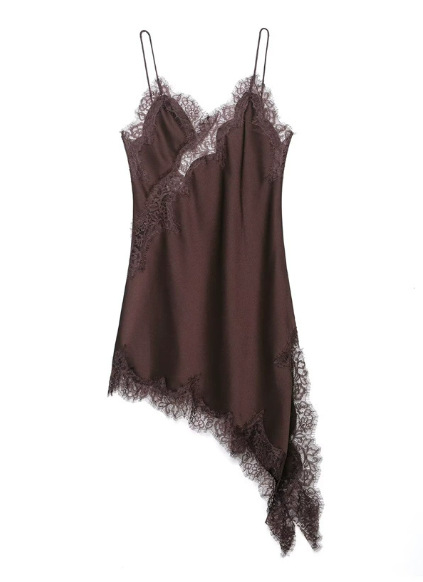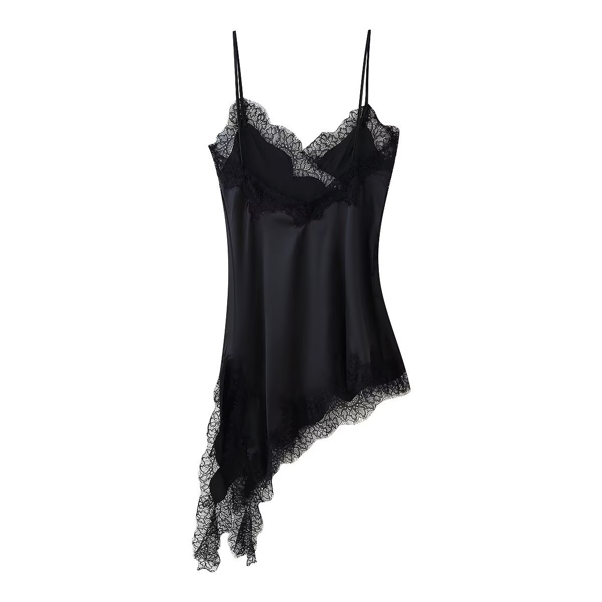Трансграничная европейская и американская одежда AliExpress, популярное сексуальное кружевное асимметричное платье на подтяжках
