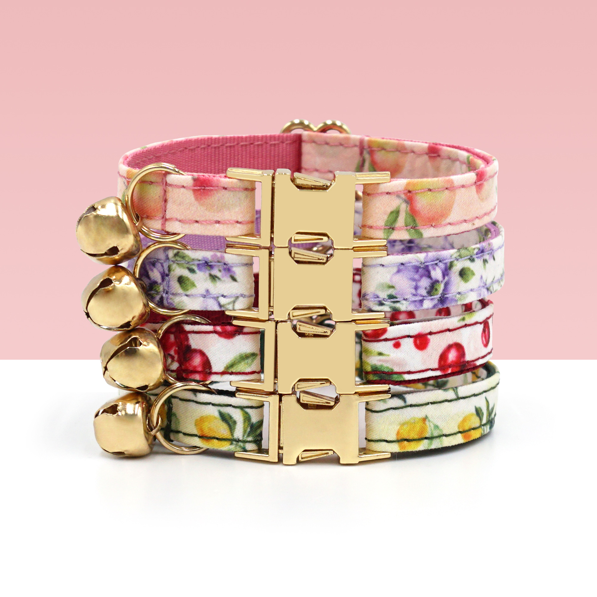 Ошейник для кошки с цветком пиона; Персиковый кошачий ошейник; Ошейник для кошки вишневого цвета; орешок для кошек с лимоном; Ошейник для кошки «Черника»; Поводок для кошки с цветком пиона; Поводок для кота персика; Поводок для кошки «Вишня»; поводок для лимонного кота; Поводок для кошки «Черника»; Бантик для кошки-пионы; персиковый кошачий бантик; бантик вишневого кота; лимонный кошачий бантик; Лук кота черники