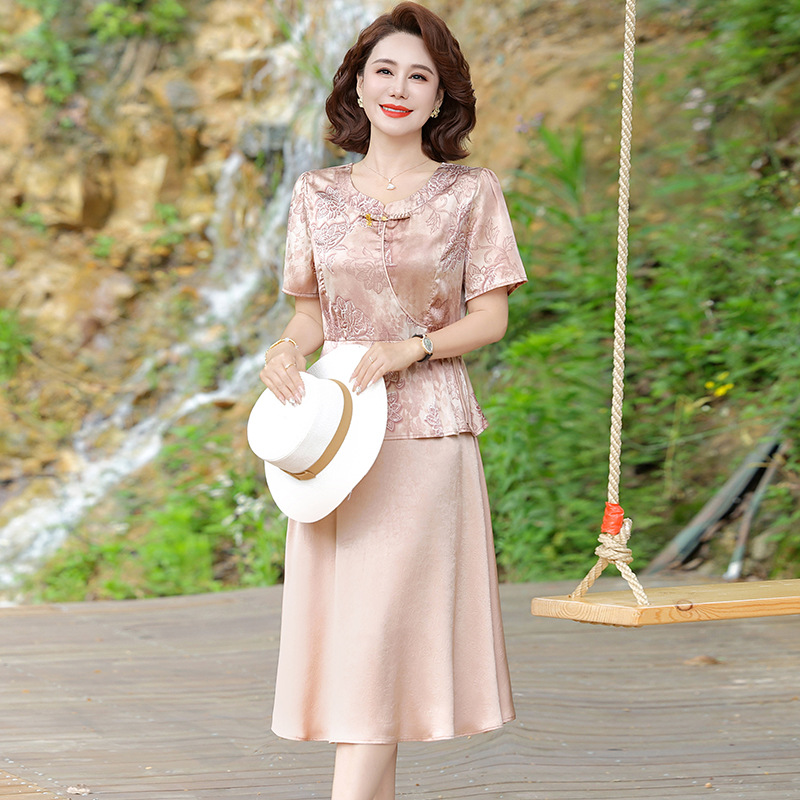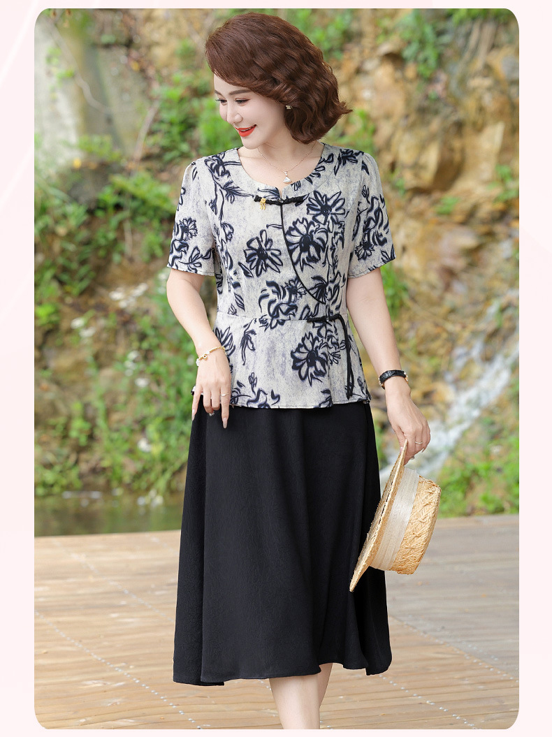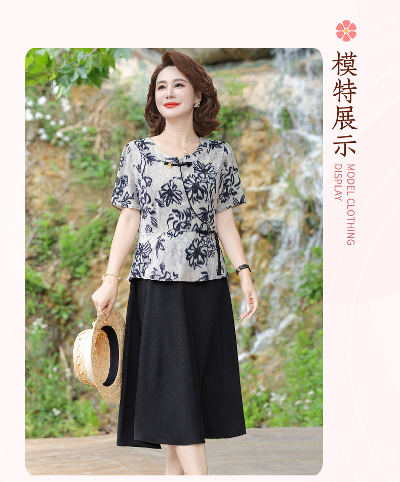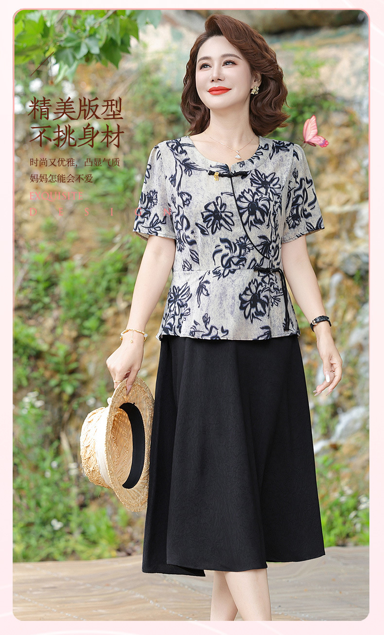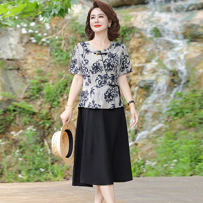 Летнее платье для мамы 2025, новинка для женщин среднего и старшего возраста, национальный стиль, новый китайский стиль, широкая юбка в женском стиле