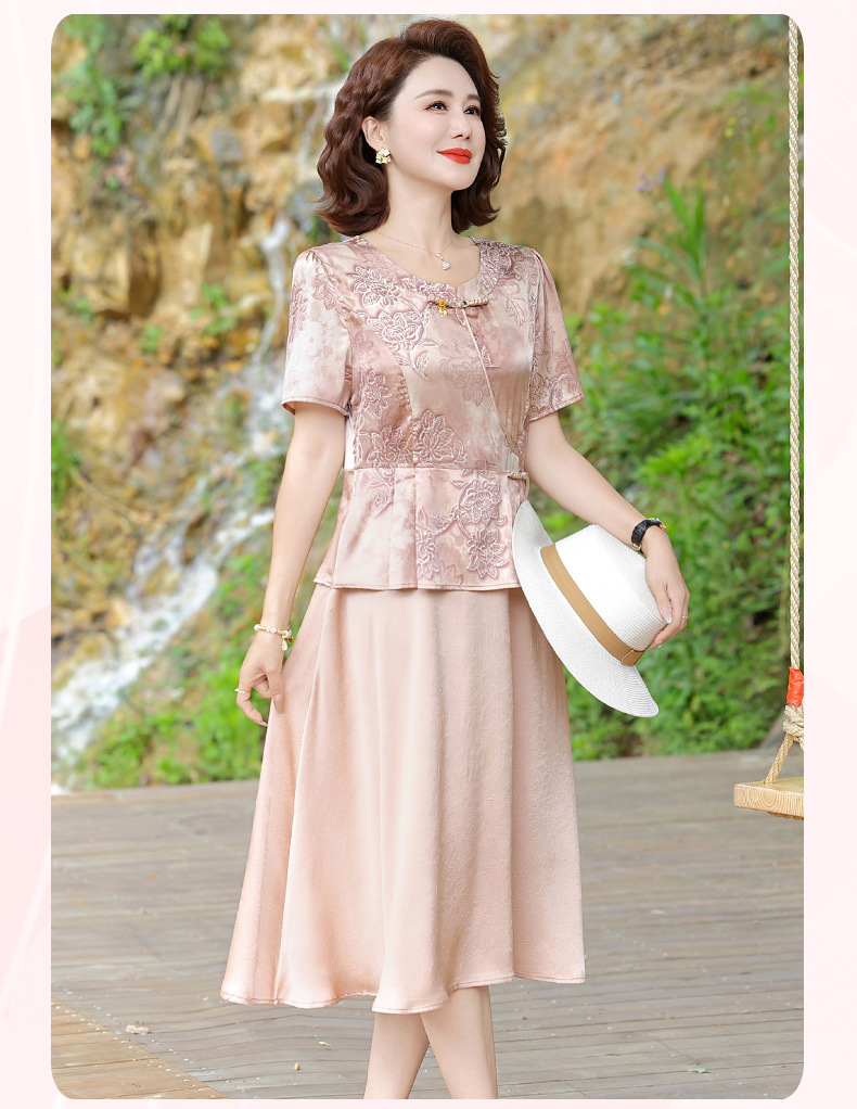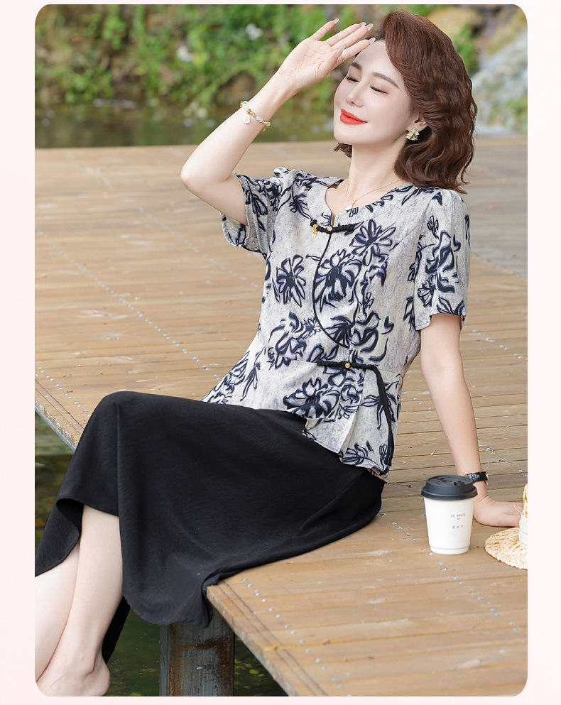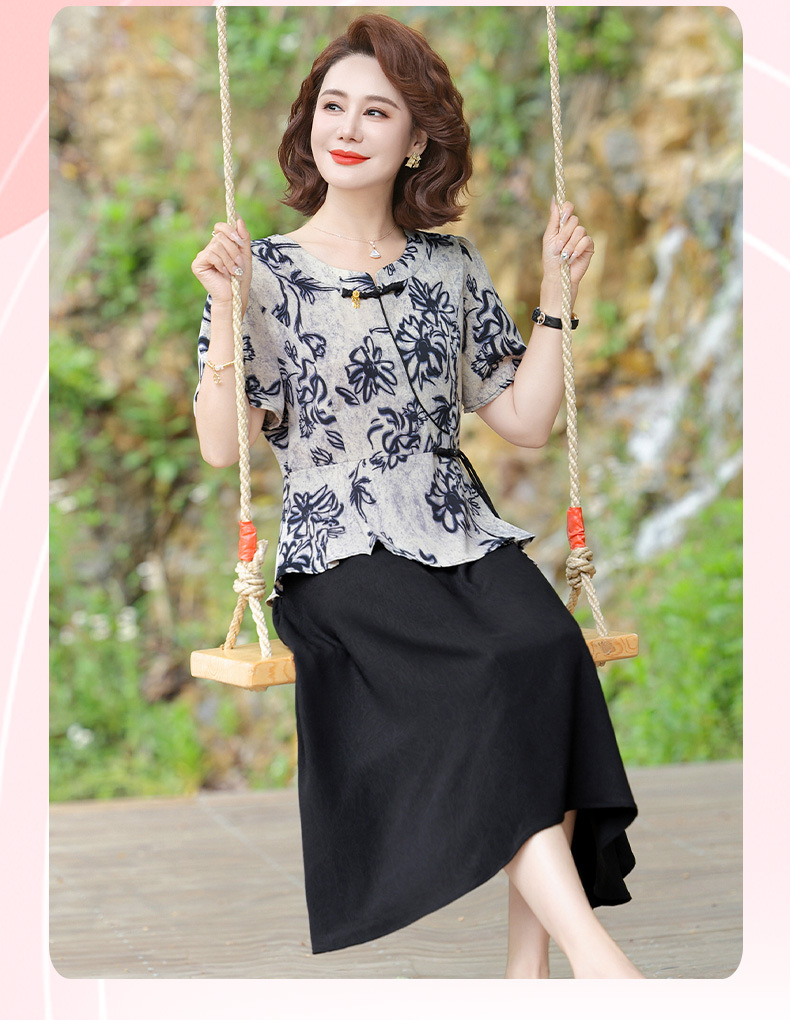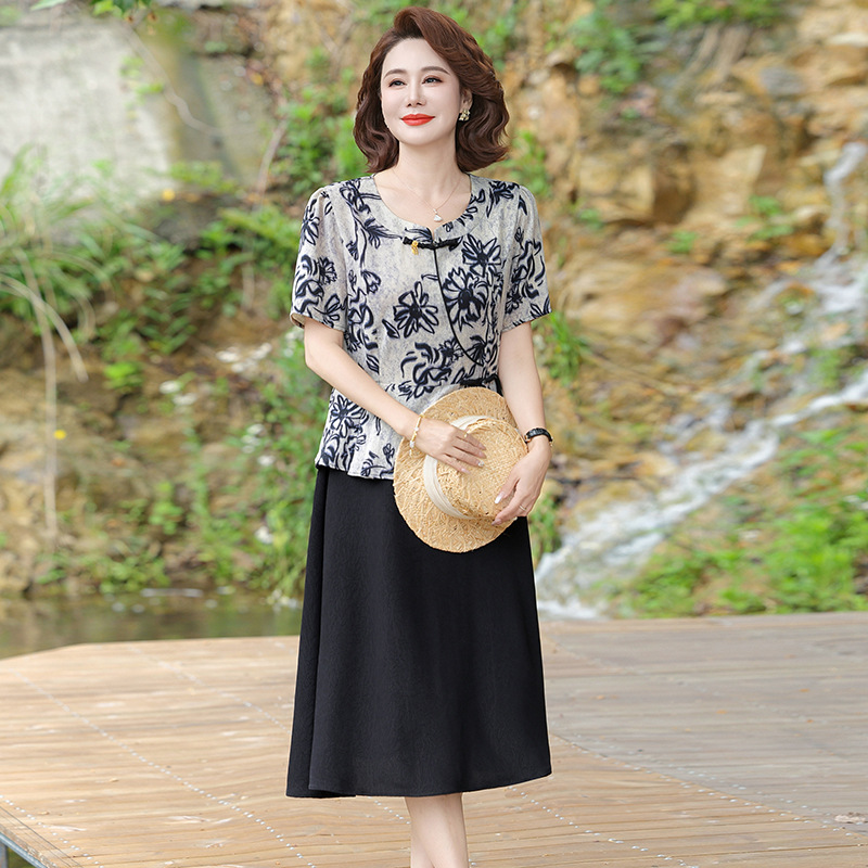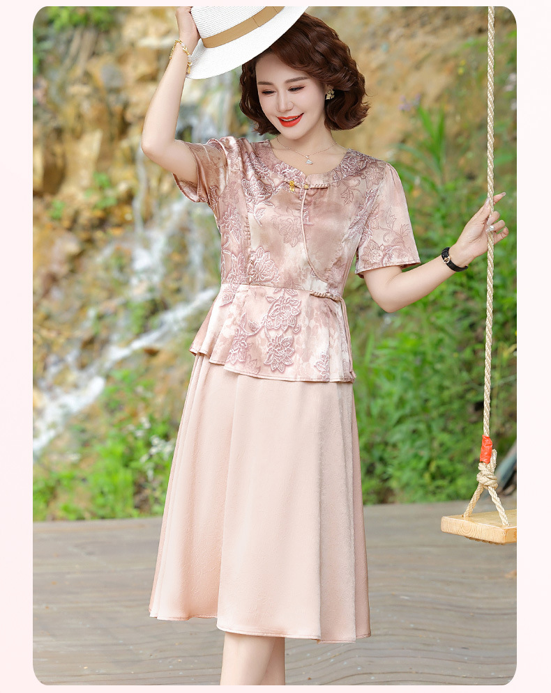 Летнее платье для мамы 2025, новинка для женщин среднего и старшего возраста, национальный стиль, новый китайский стиль, широкая юбка в женском стиле