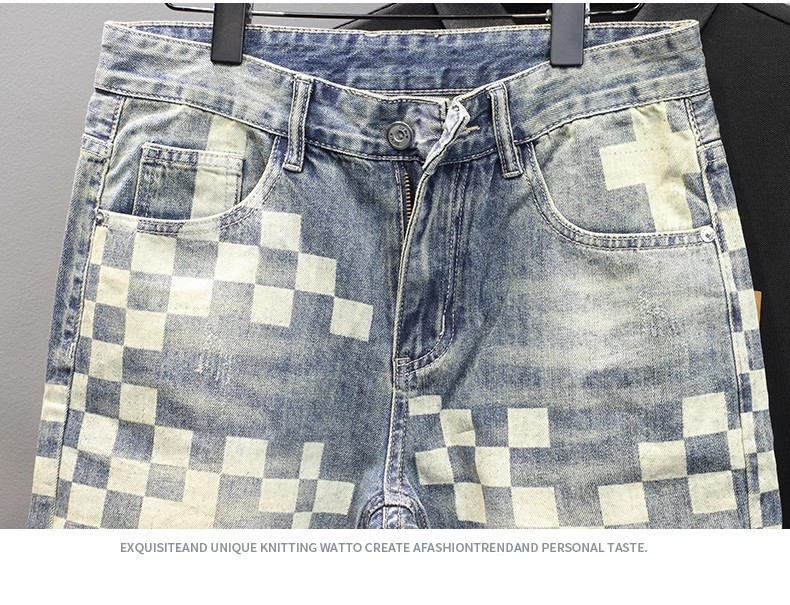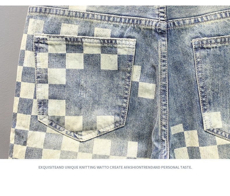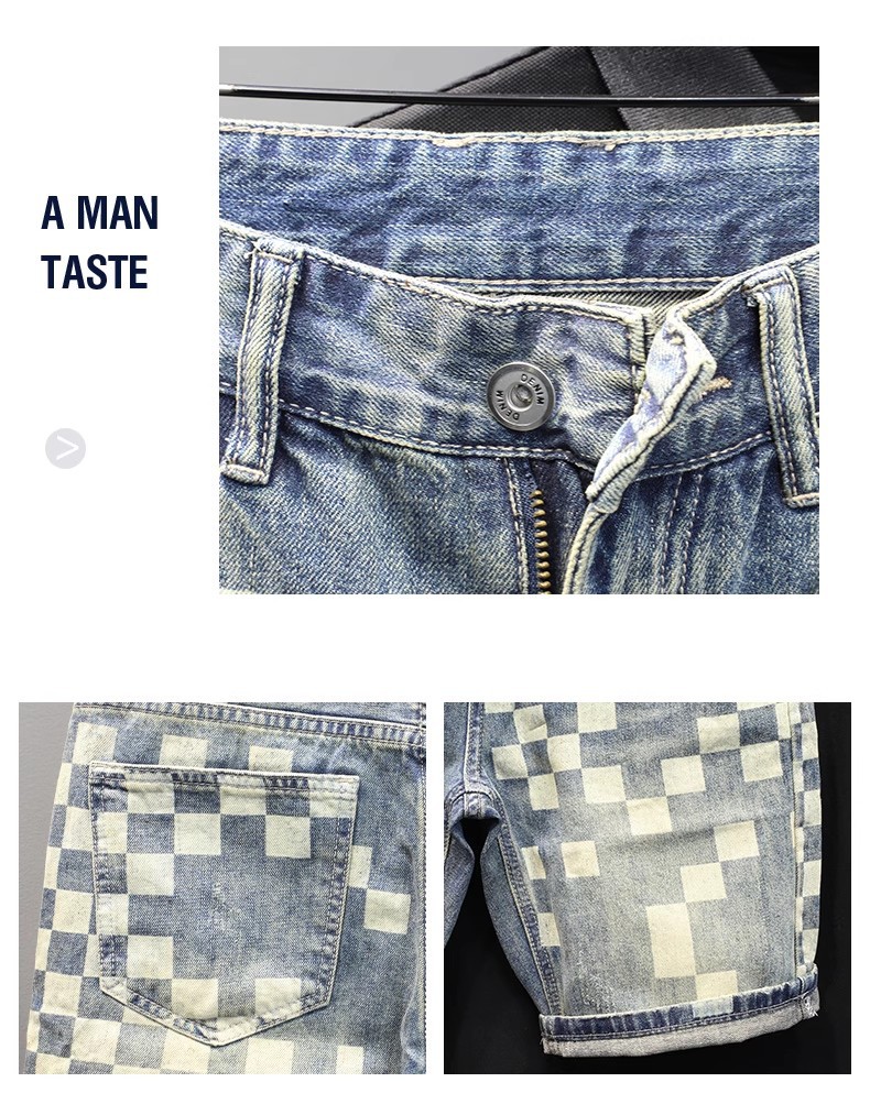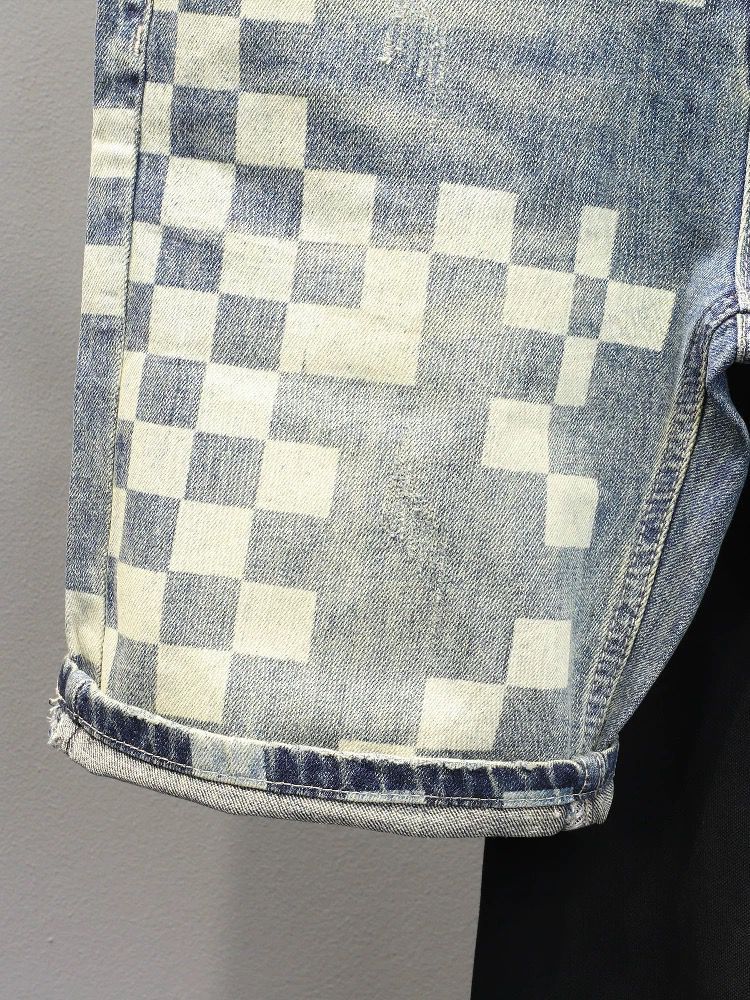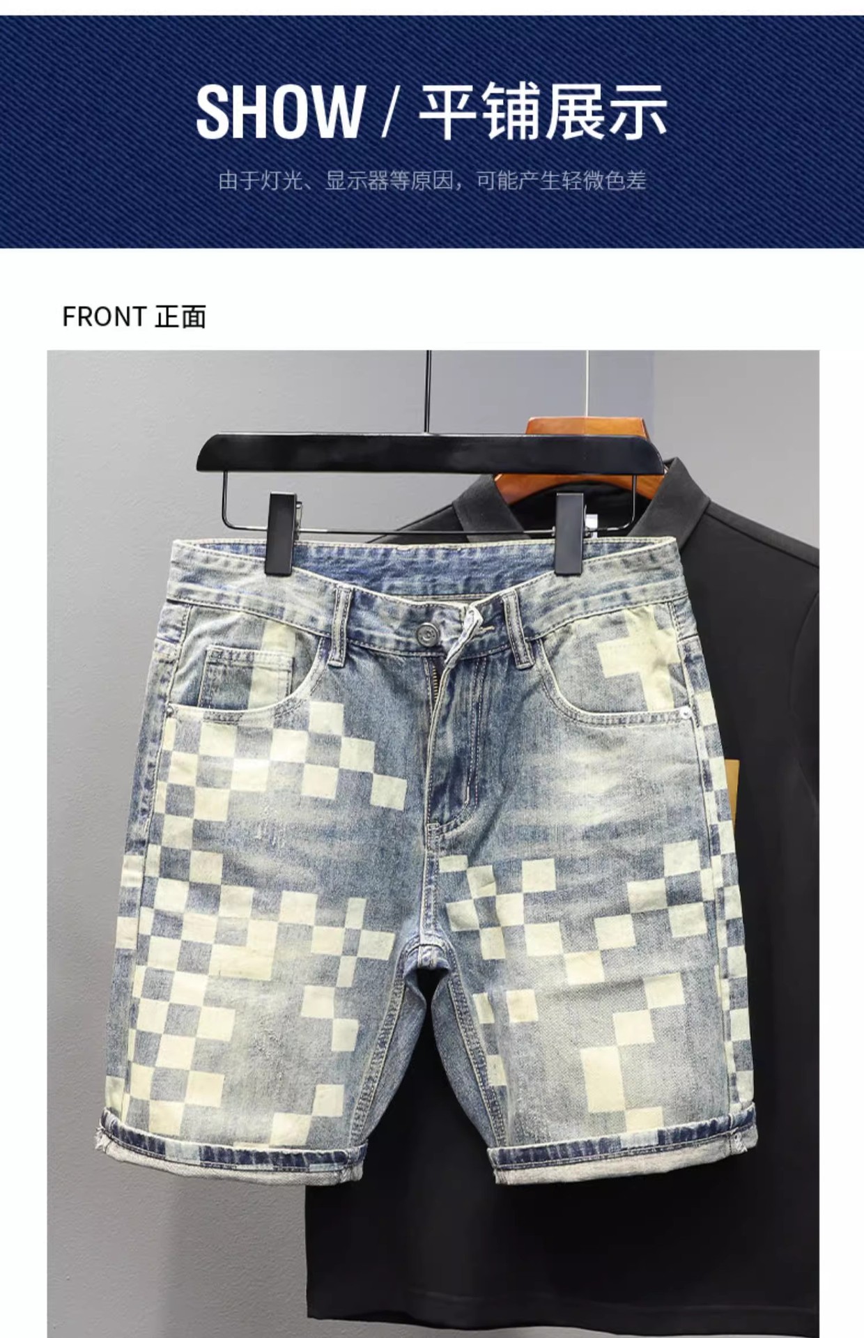Новые летние мужские джинсовые шорты, модные брендовые стильные клетчатые лоскутные шорты, свободные прямые универсальные шорты длиной до колена