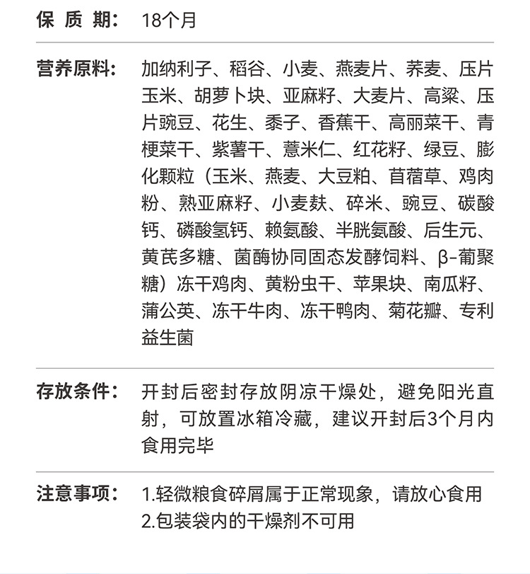Пробиотик H1, полная цена, лиофилизированный продукт, 500 г [поставляется с запечатывающим зажимом и ложкой]; Пробиотик H1, полноценная леденящаяся сухая пища, 1000 г [больший размер более экономичен]; [Обязательно для запасов, 17,9 за упаковку] Пробиотик H1, полноценная ледяная сушка, 1500 г.; [7 видов сублимированного лосося и трески, 30-дневный эксперимент по удалению запаха] H1 Xianqi полная цена сублимированного питания-500 г; [Бесплатный уплотнительный зажим + ложка] Полная цена смешанного корма для насекомых, 500 г.; H2 Golden Bear Staple Food 450 г [поставляется с запечатывающим зажимом и ложкой]; H2 Gnome Staple Food 450 г [поставляется с уплотнительным зажимом и ложкой]; H1 свежие омары, лиофилизированные продукты, 500 г [поставляется с запечатывающим зажимом и ложкой]; Зерно для хомяков 1000 г [большой размер более экономичен]; Зерно для хомяков 500г.; Корм для хомяков фруктово-овощной 500г