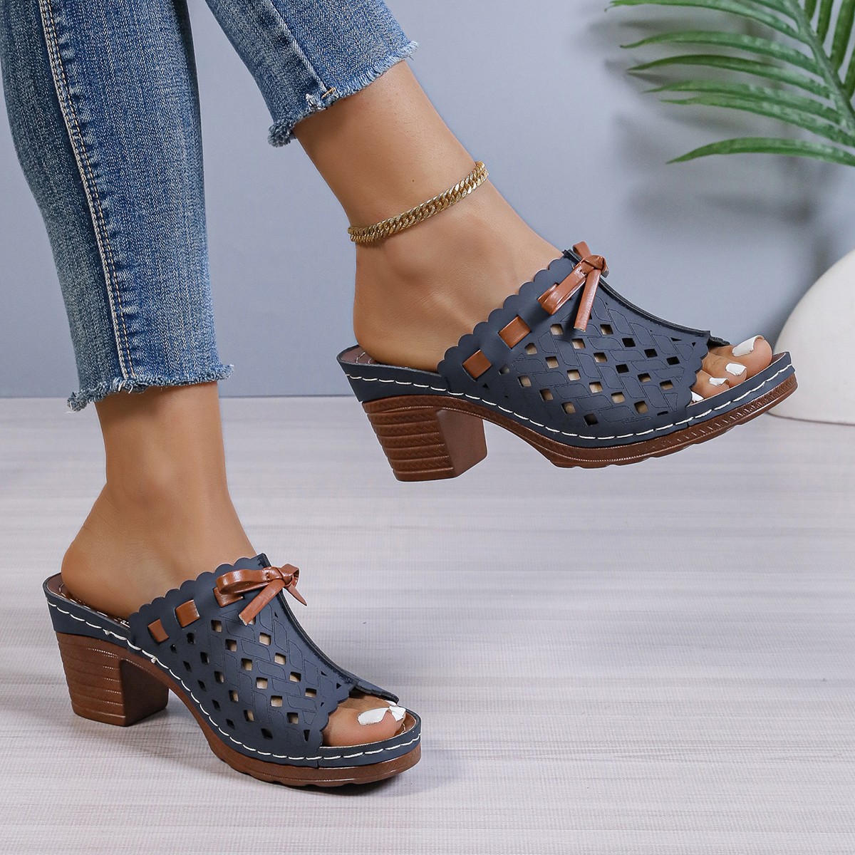 Летние новые европейские и американские босоножки на высоком каблуке с вырезом «рыбий рот», женские, на толстом каблуке, большие размеры, 43 в наличии, 2025 г.