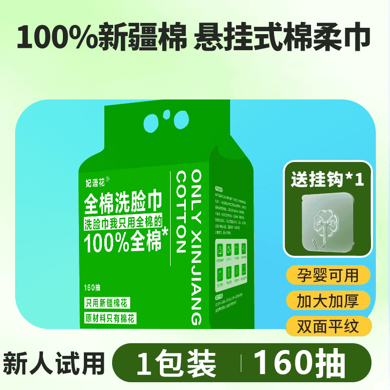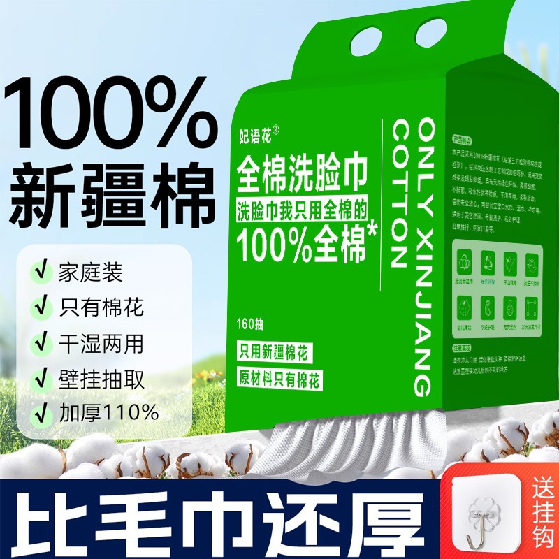 160 листов одноразовых подвесных хлопчатобумажных мягких полотенец, утолщенный хлопок с жемчужной текстурой для очищения лица матери и ребенка.