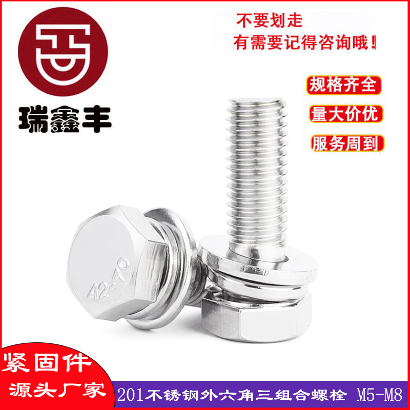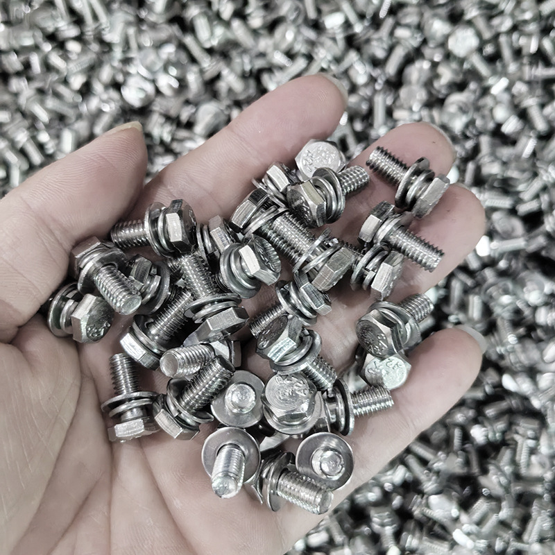 Нержавеющая сталь 201, внешняя шестигранная плоская пружинная шайба, три комбинированных винта, плоские болты с шестигранной головкой и обрезанными краями, винты M5M6M8