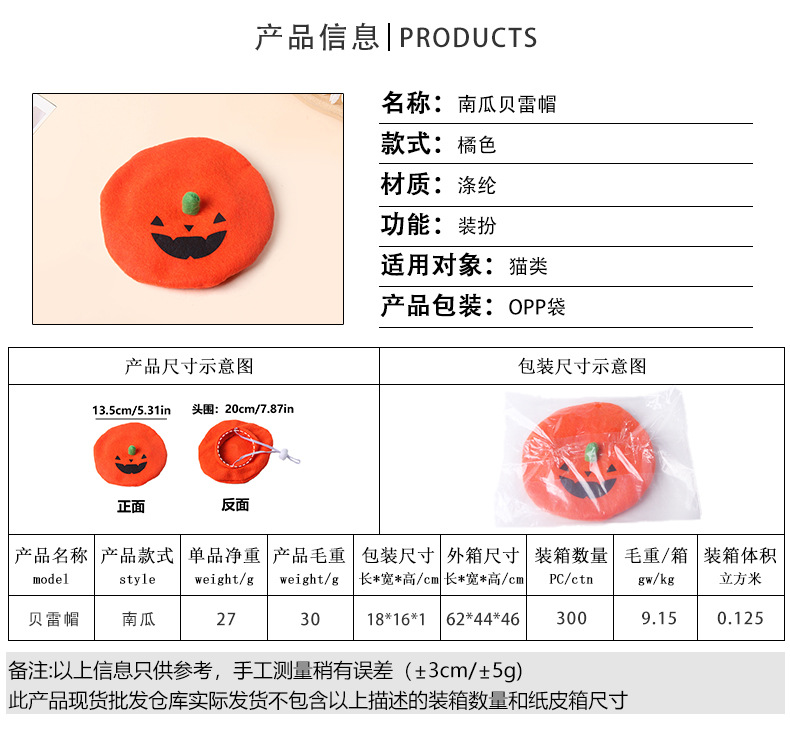 Amazon новый четырехсезонный берет домашнее животное шляпа кошка кошка тыква берет