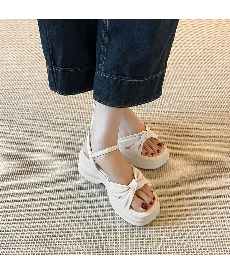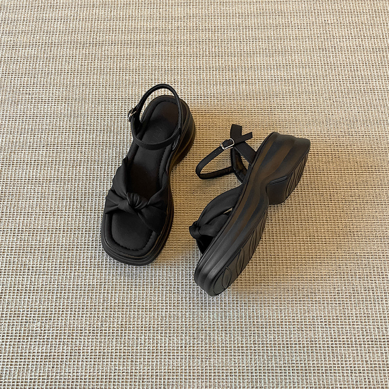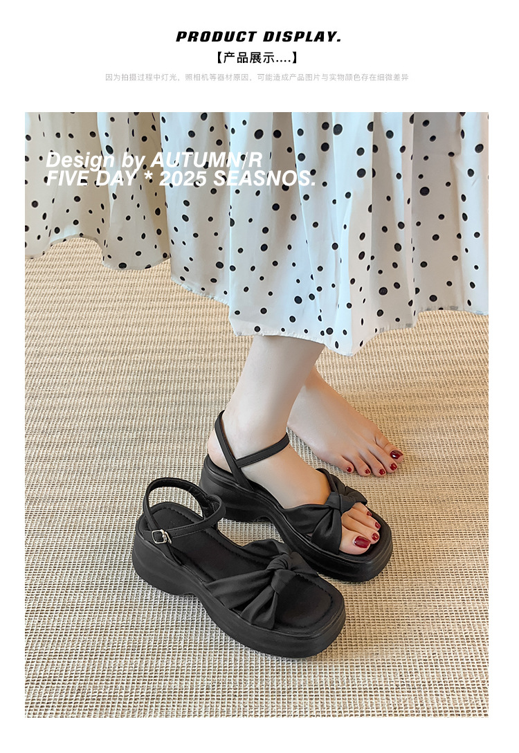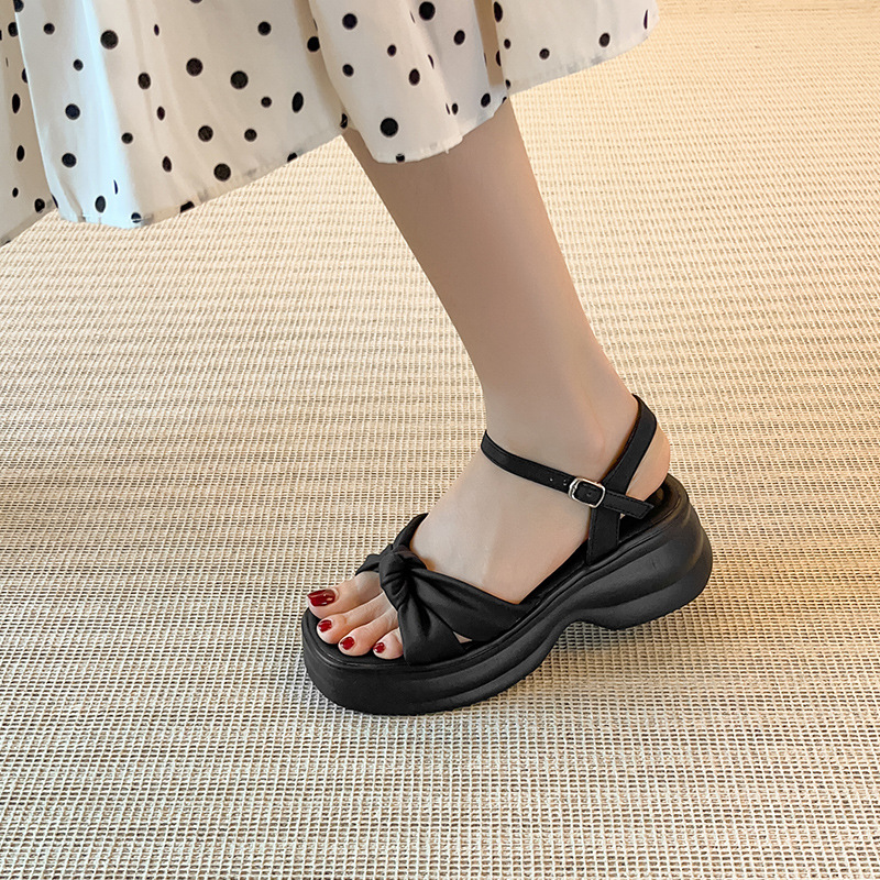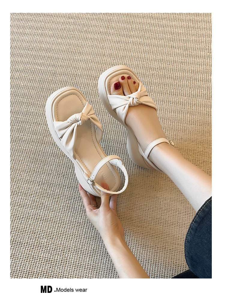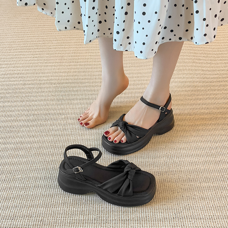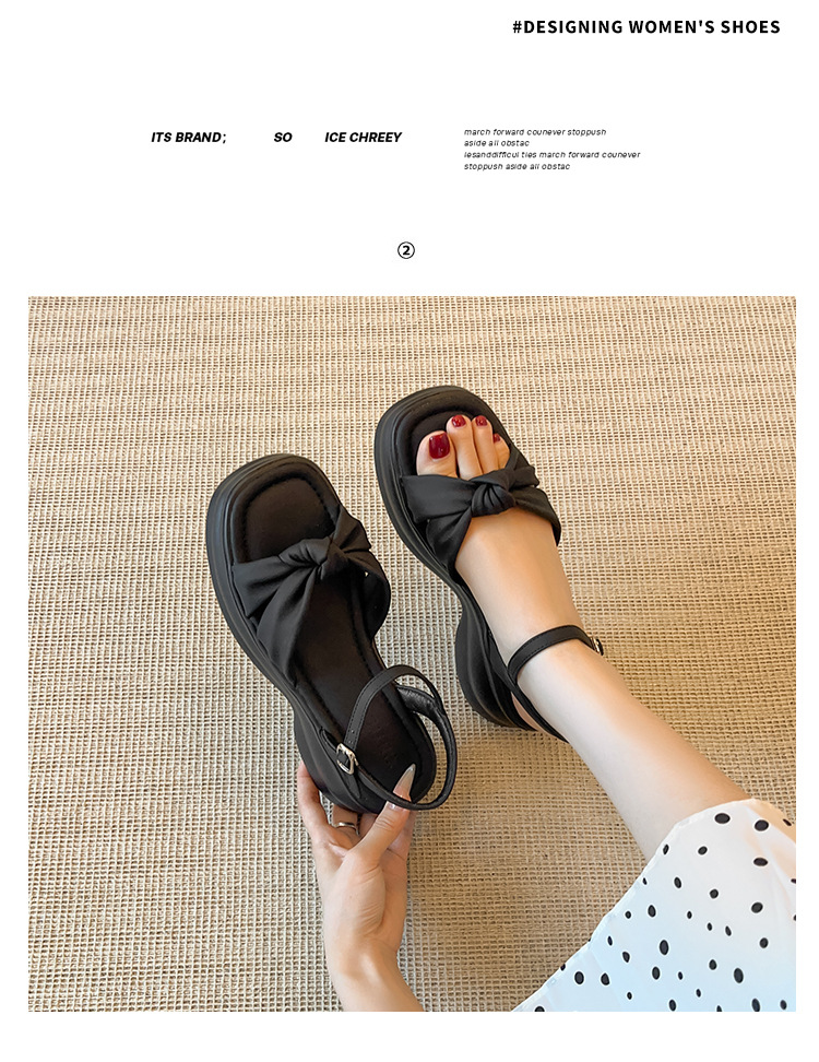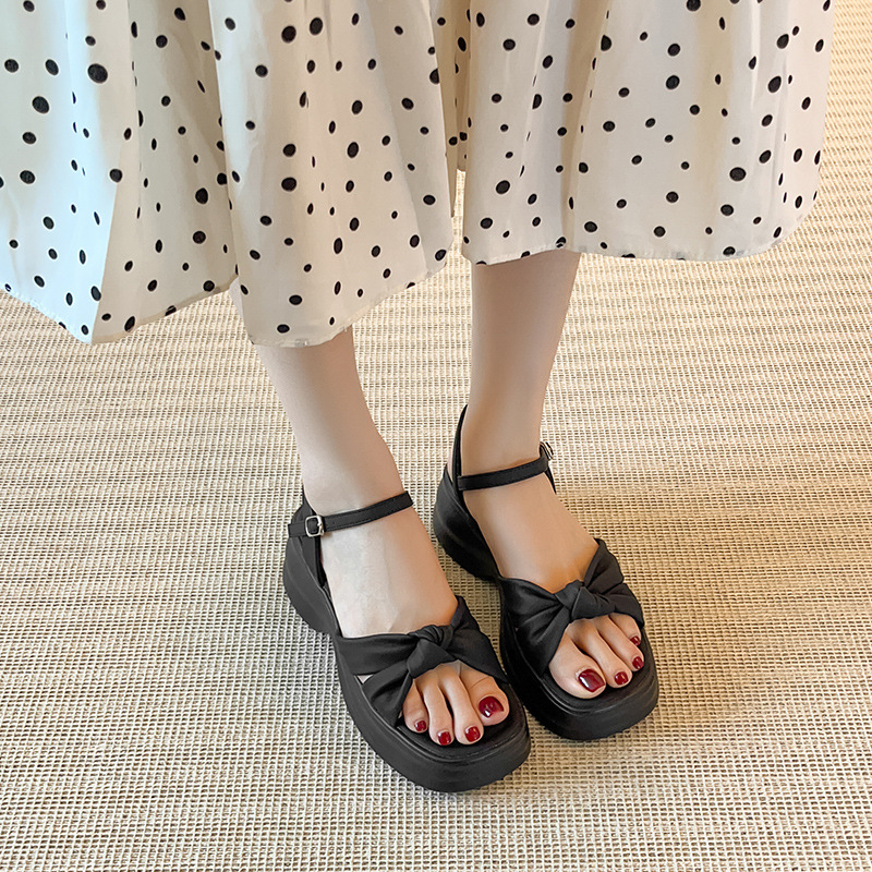 Женские летние босоножки на толстой подошве в стиле феи, новинка 2025 года, с бантом, на толстом каблуке, на одной лямке, модные пляжные туфли