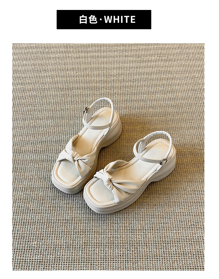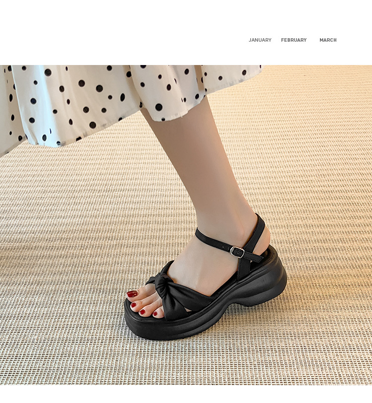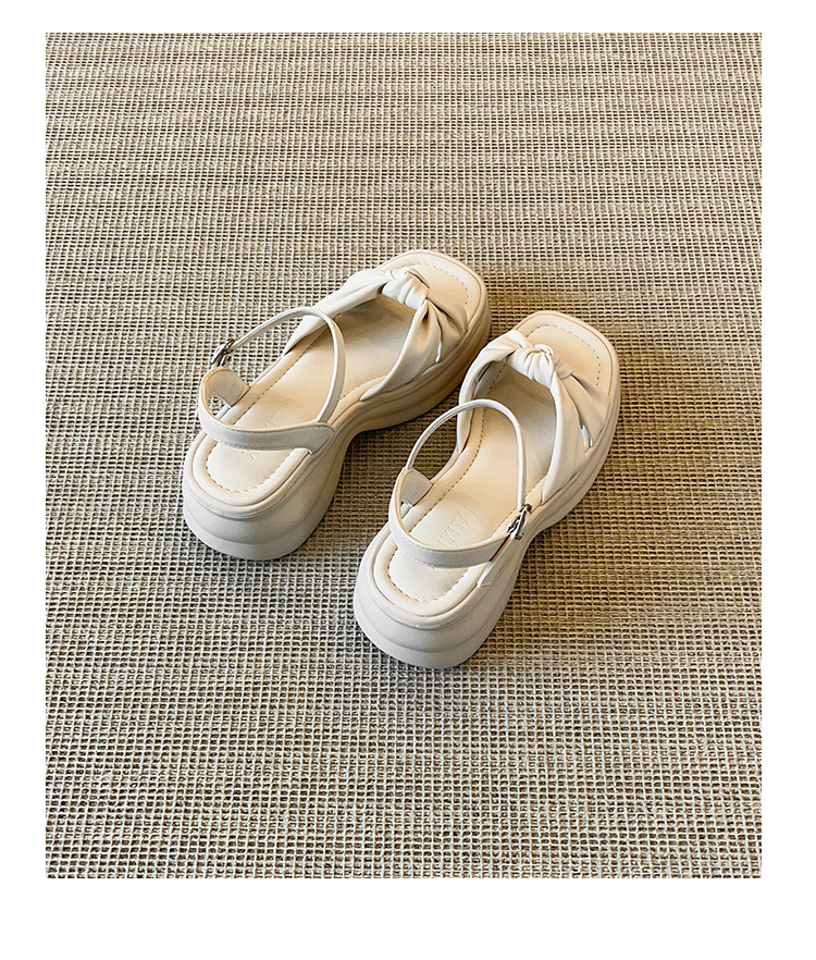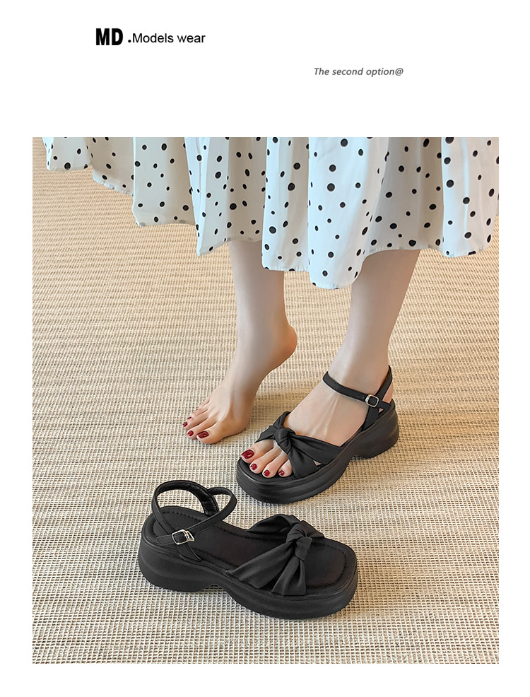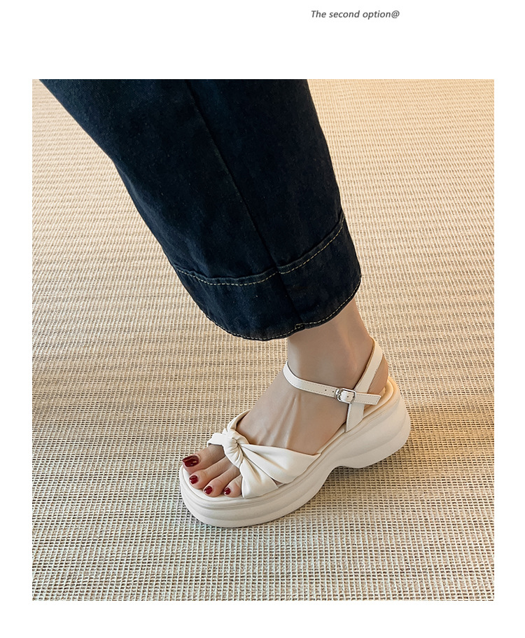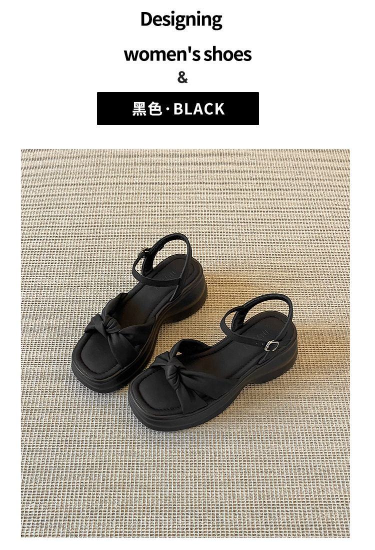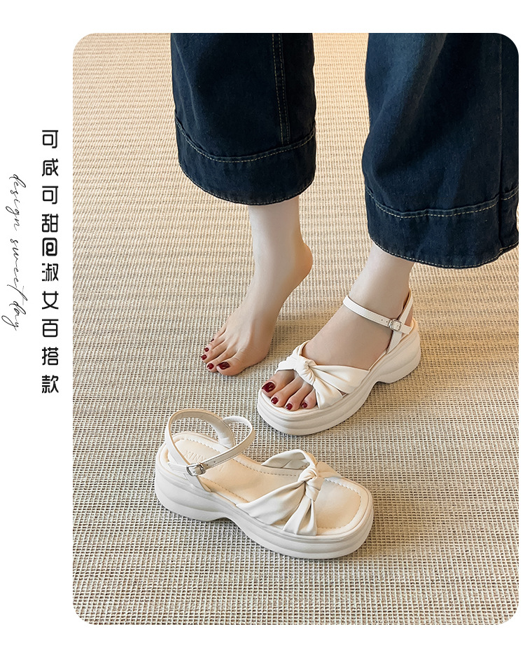 Женские летние босоножки на толстой подошве в стиле феи, новинка 2025 года, с бантом, на толстом каблуке, на одной лямке, модные пляжные туфли