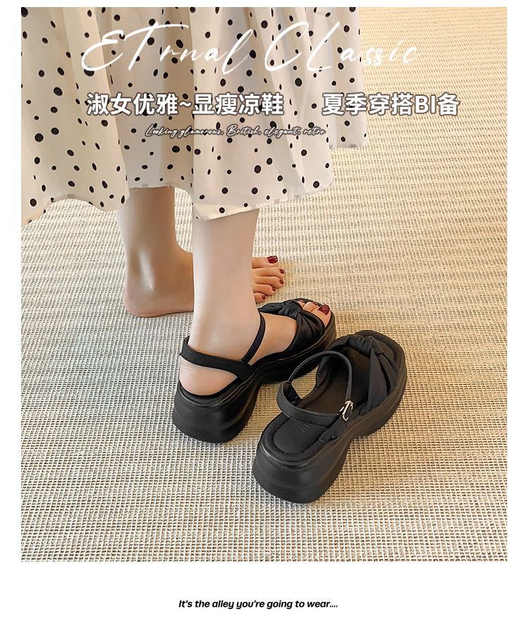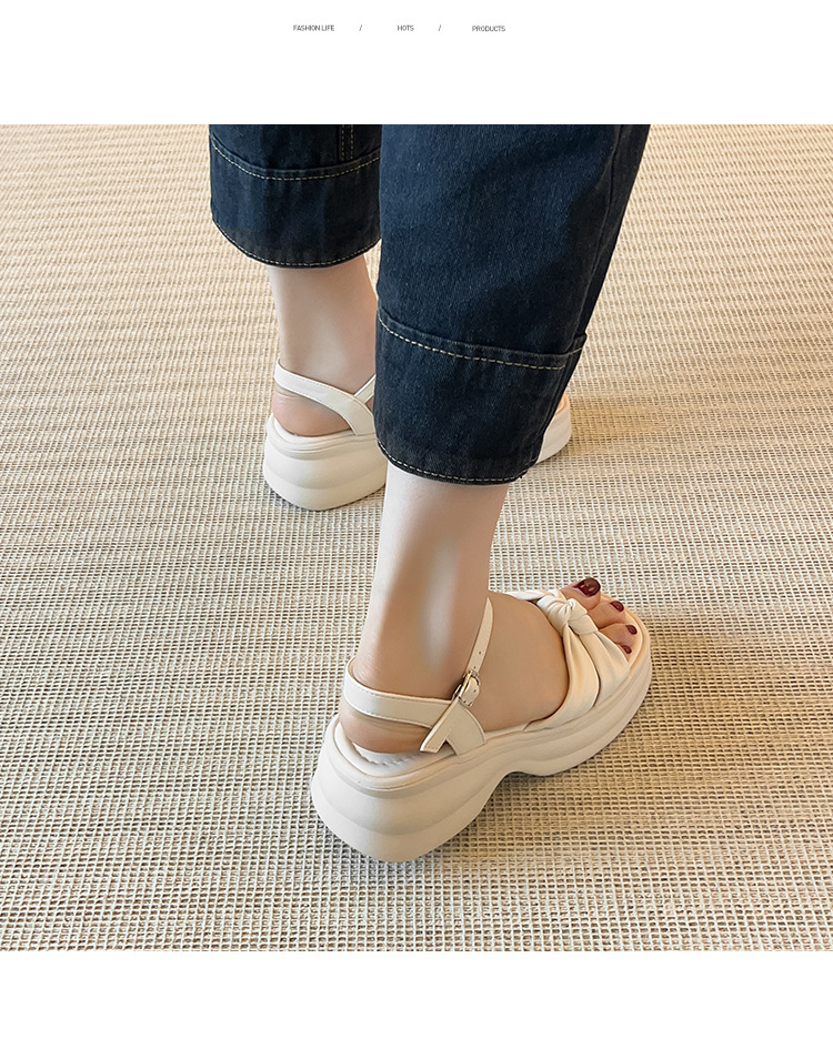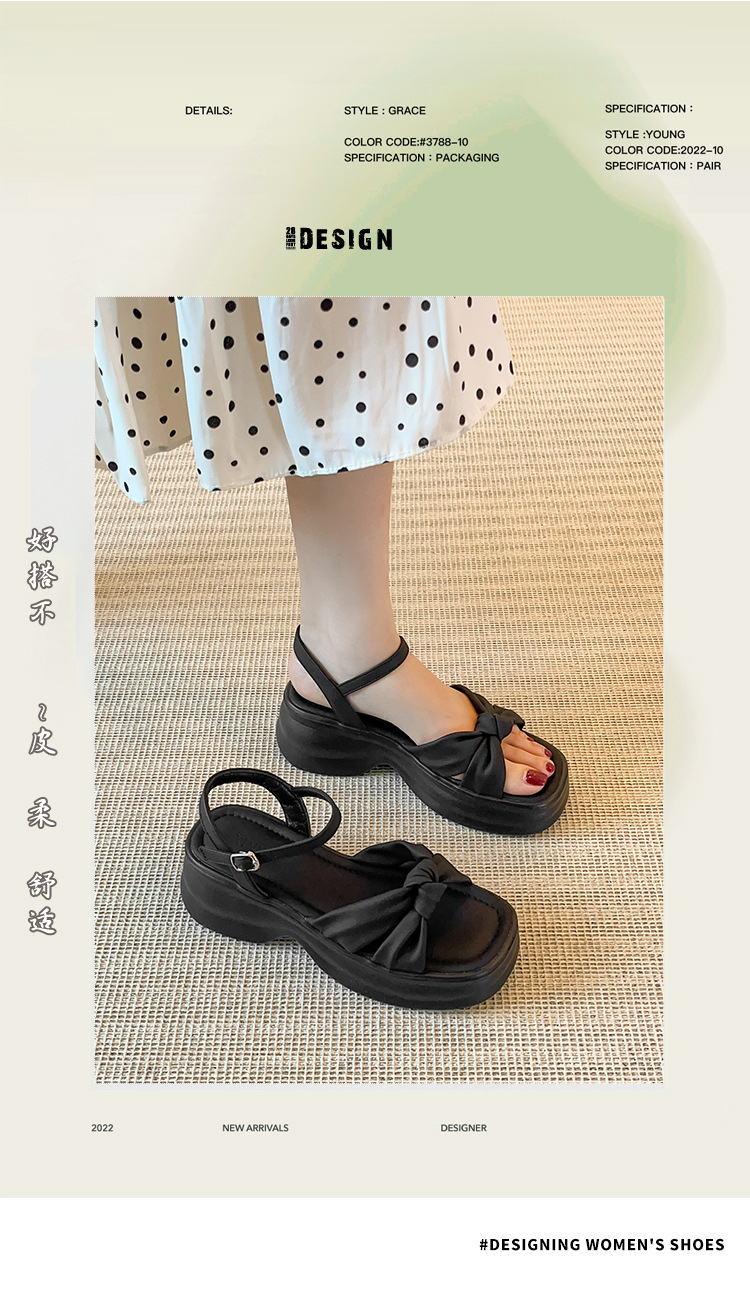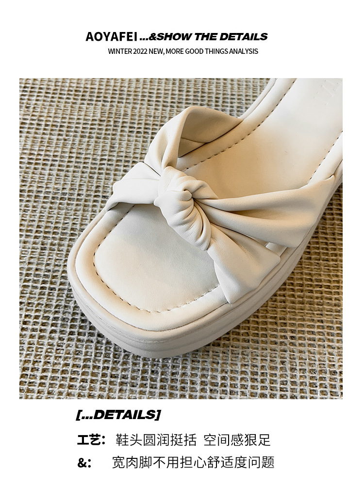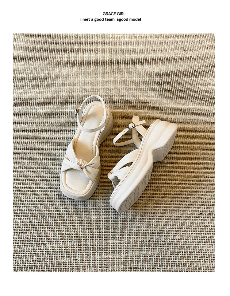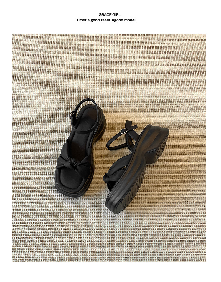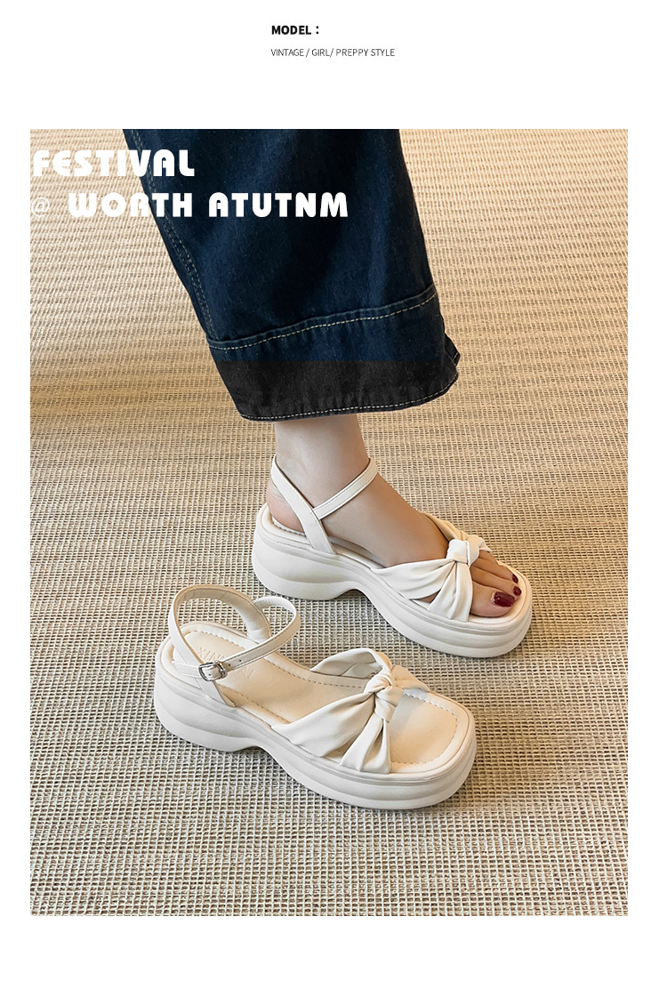 Женские летние босоножки на толстой подошве в стиле феи, новинка 2025 года, с бантом, на толстом каблуке, на одной лямке, модные пляжные туфли