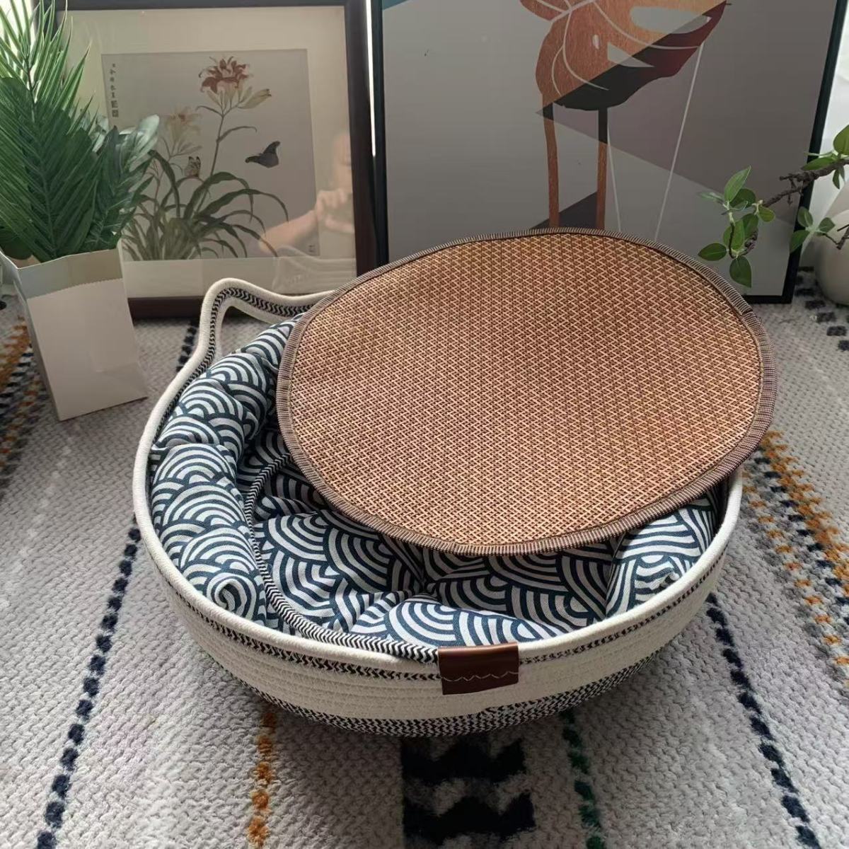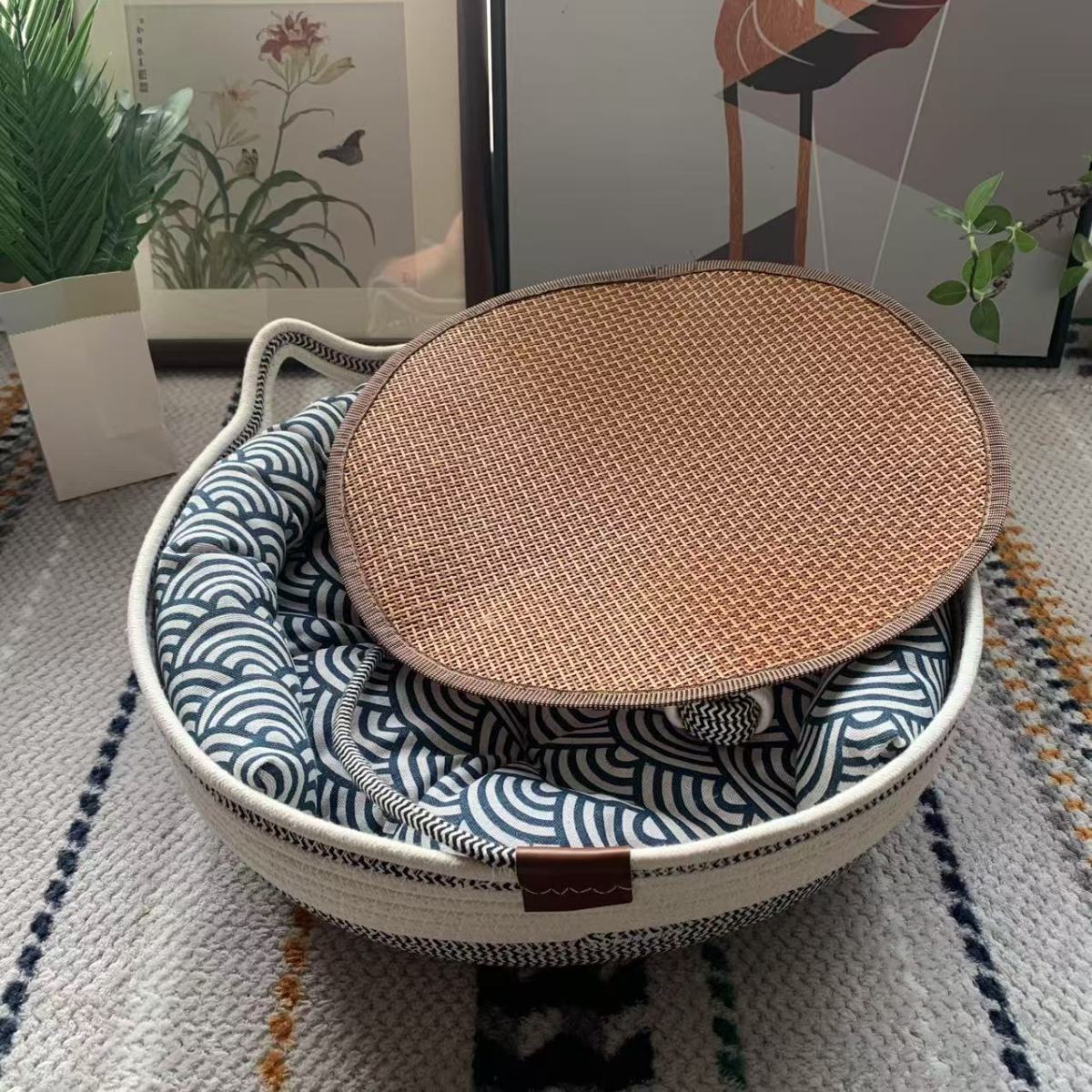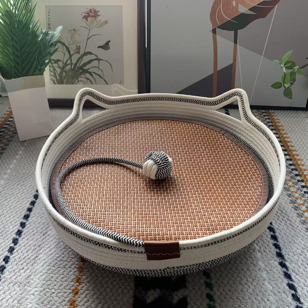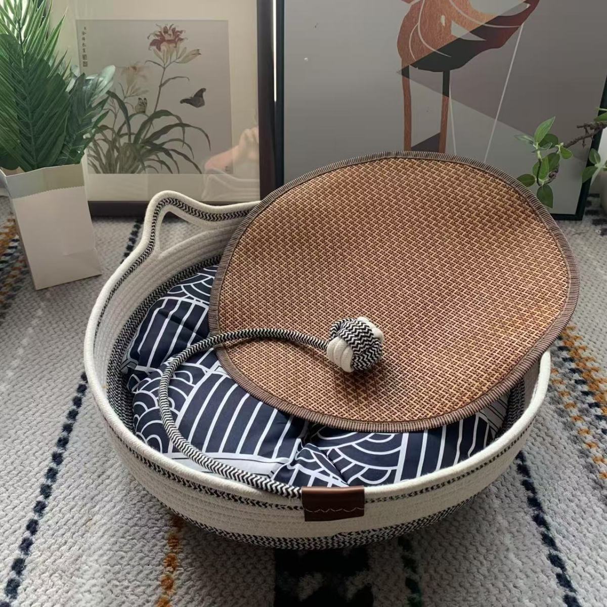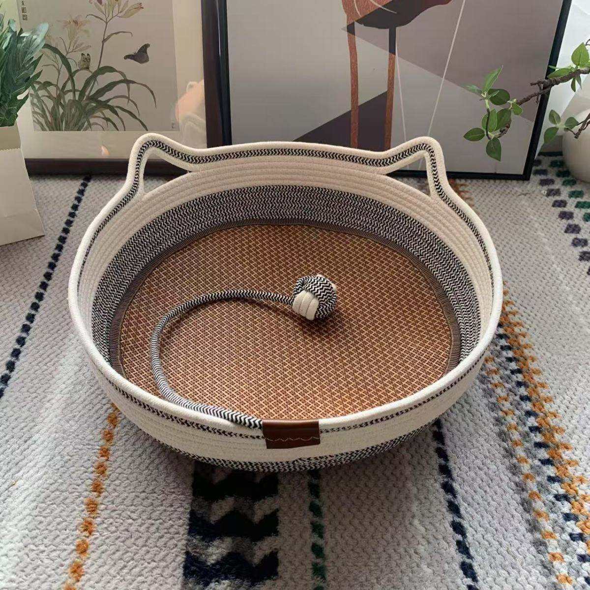 Кошачье гнездо, летнее прохладное гнездо, доска для кошачьих когтей, цельное кошачье гнездо из хлопчатобумажной нити, универсальное для всех сезонов, милый ватный диск для шлифовки когтей, устойчивый к пятнам, съемный и моющийся.