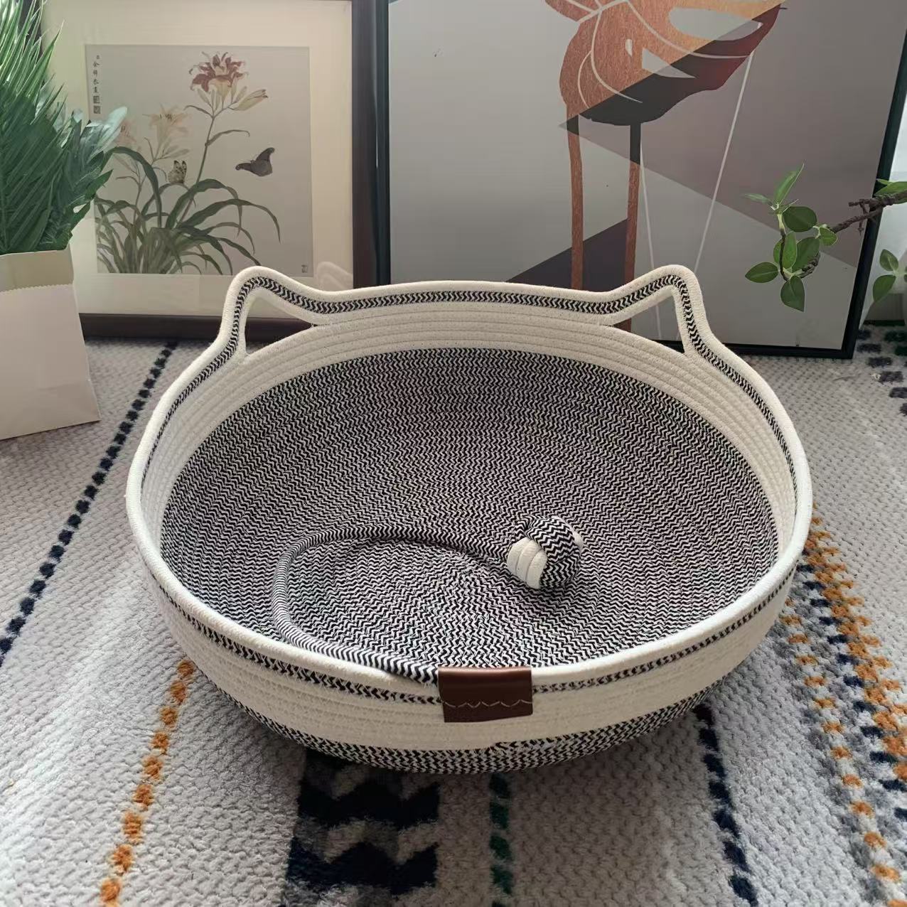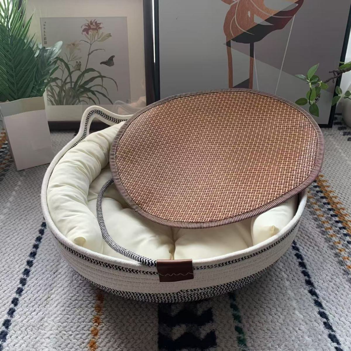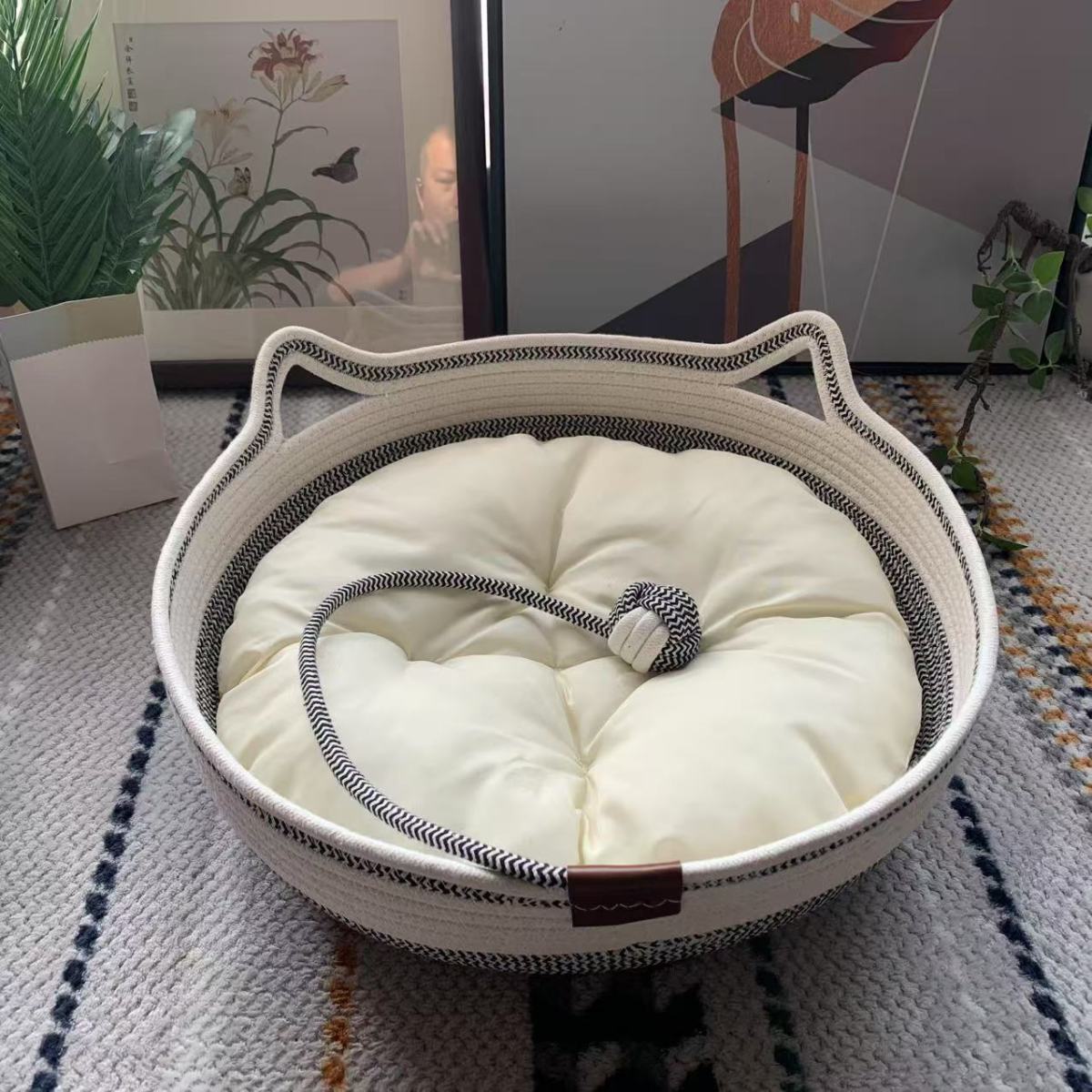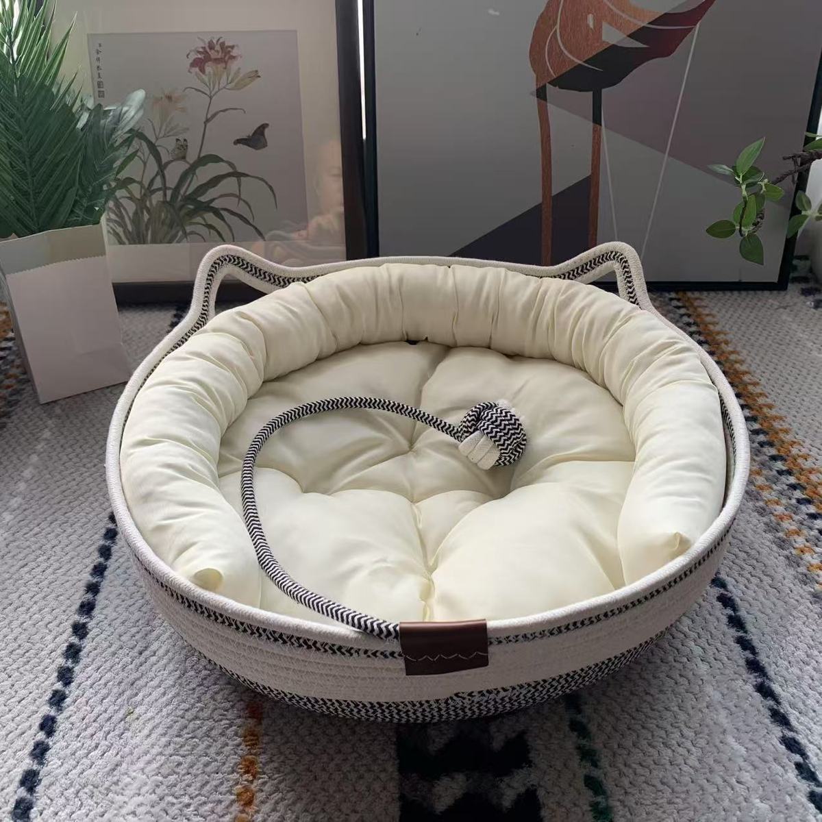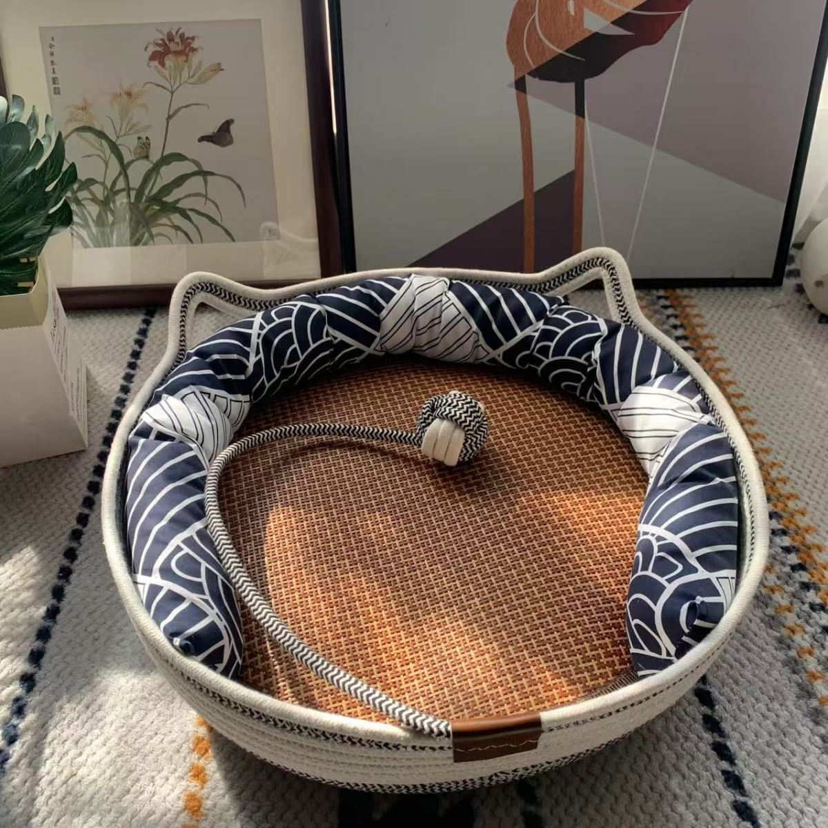 Кошачье гнездо, летнее прохладное гнездо, доска для кошачьих когтей, цельное кошачье гнездо из хлопчатобумажной нити, универсальное для всех сезонов, милый ватный диск для шлифовки когтей, устойчивый к пятнам, съемный и моющийся.