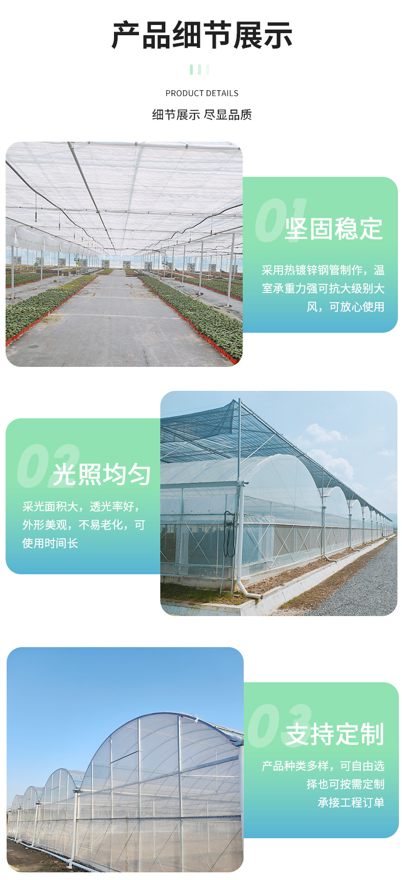 Индивидуальные многопролетные теплицы различных спецификаций, сараи с каркасом из оцинкованной стали, теплицы для овощей с солнцезащитной пленкой.