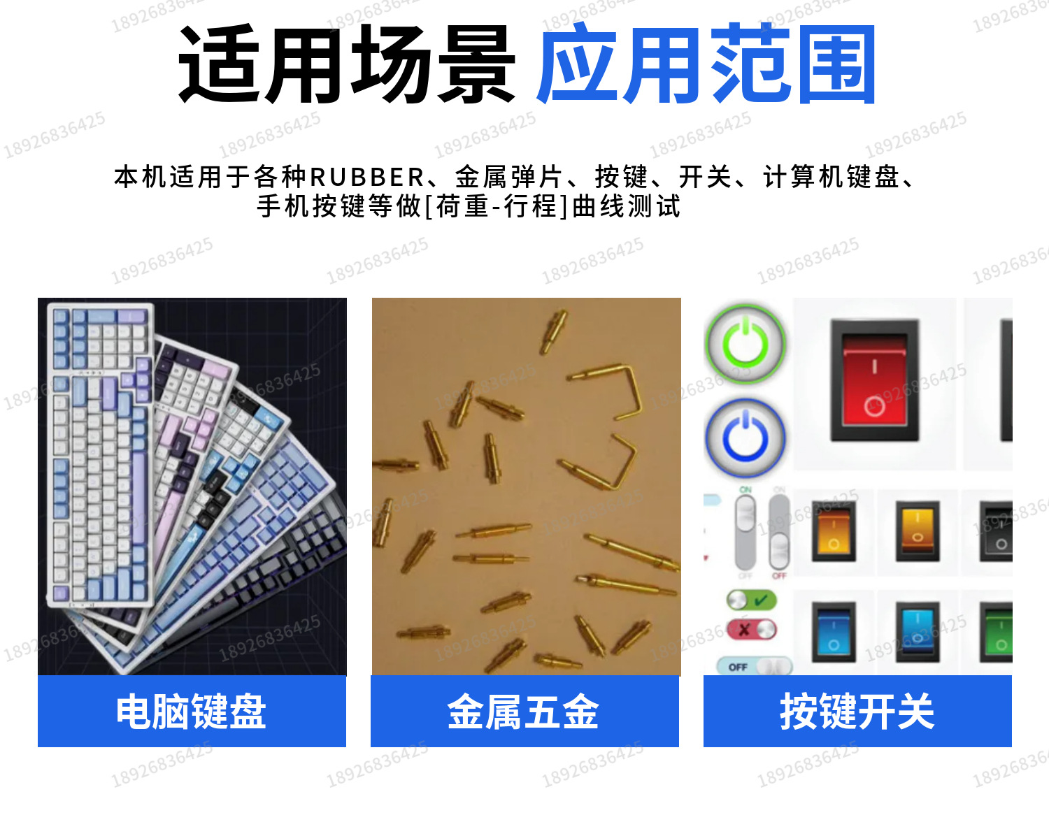 Эта машина подходит для тестирования кривых [нагрузочного хода] различных РЕЗИНОВЫХ, металлических шрапнели, кнопок, переключателей, компьютерных клавиатур, кнопок мобильных телефонов и т. д.
