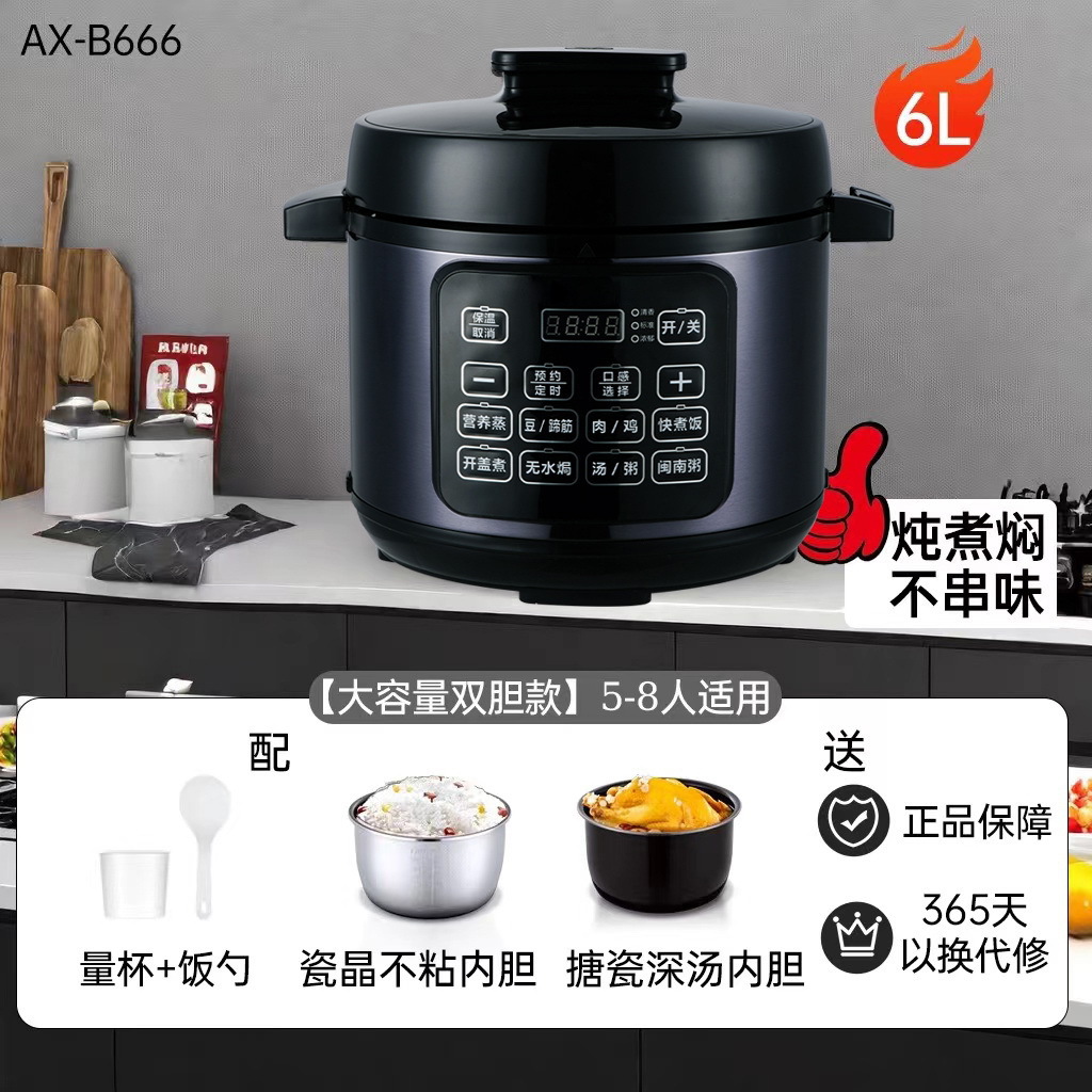 Подарочная электрическая скороварка 6 литров с антипригарным покрытием, рисоварка, дропшиппинг, 5 л, бытовая многофункциональная умная электрическая скороварка с двумя кастрюлями