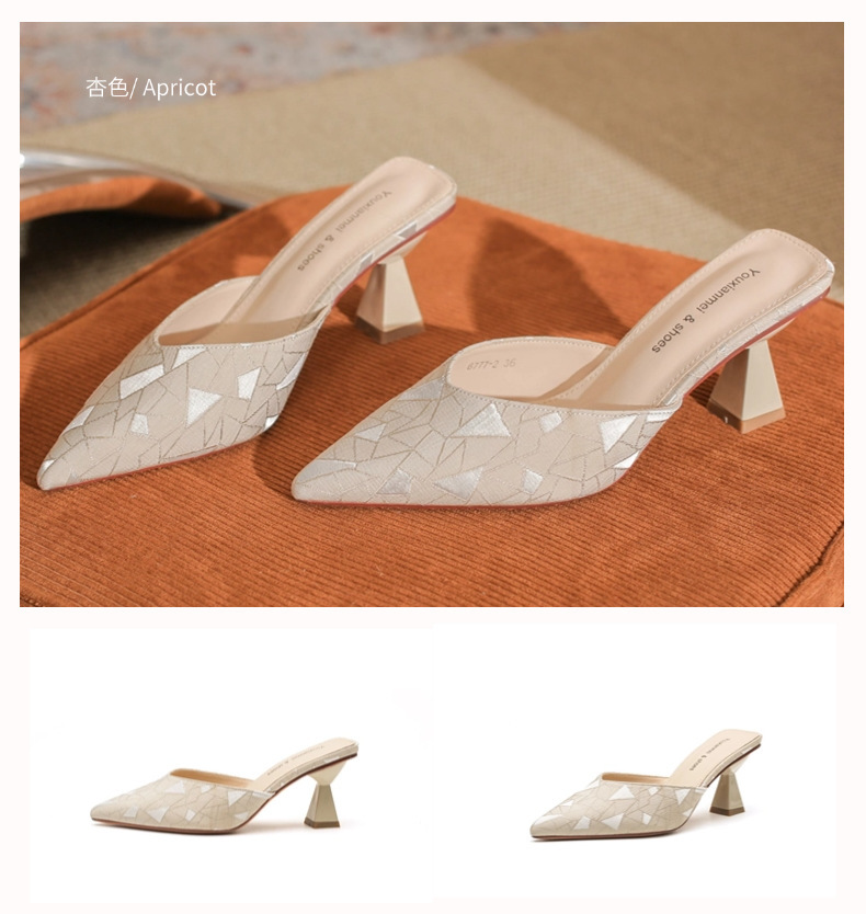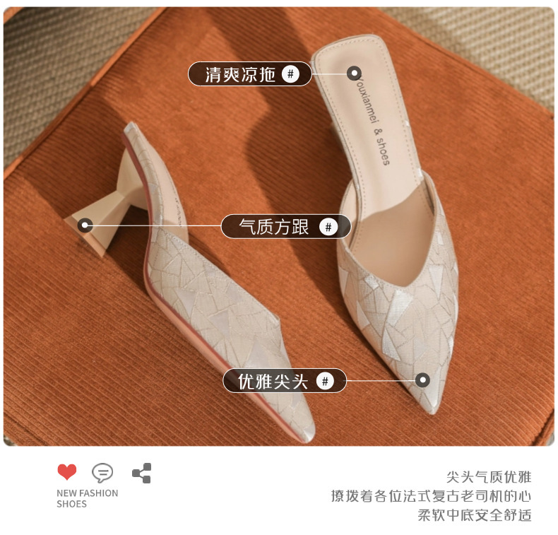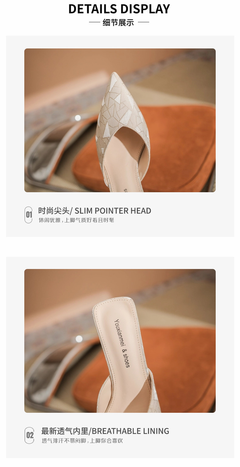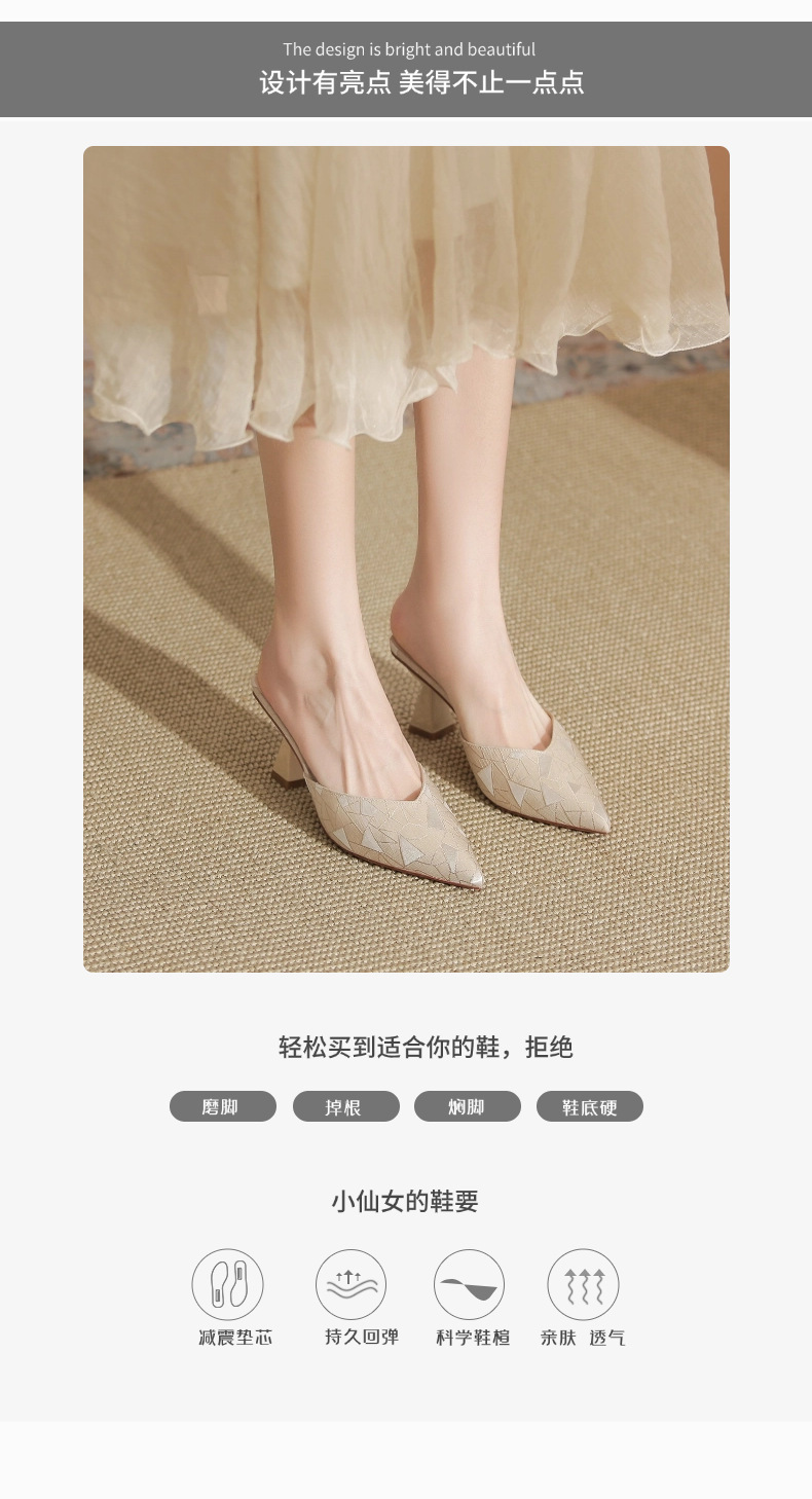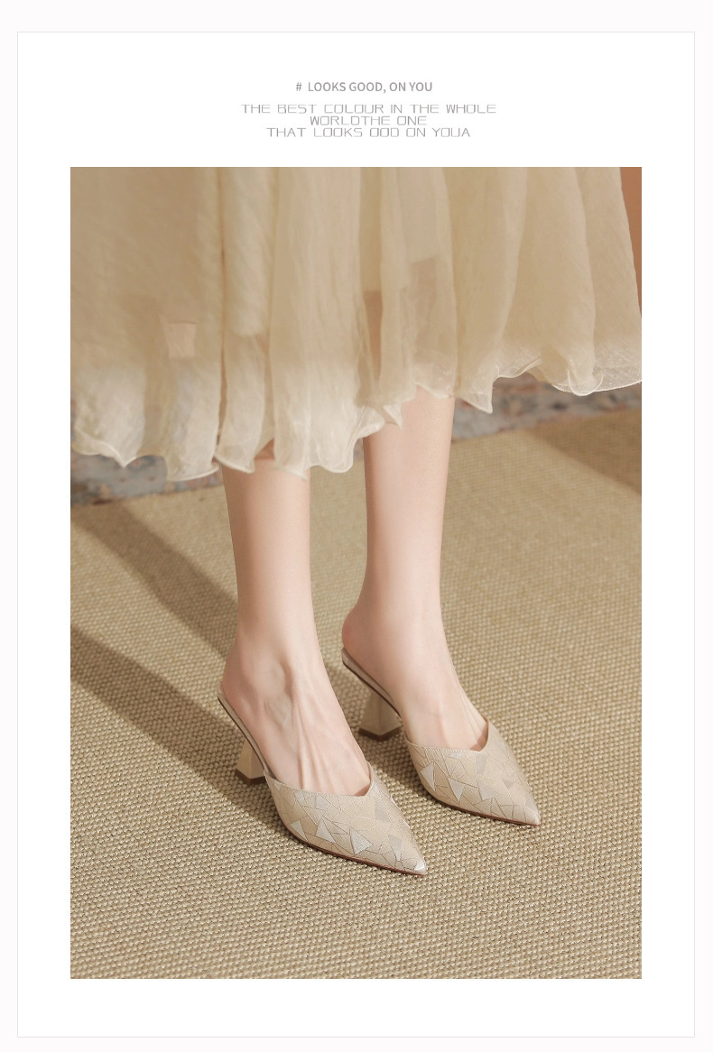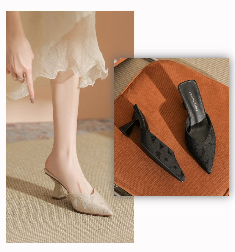 2025 весна-лето толстый каблук остроносые полусабо внешняя торговля французская мода универсальный стиль высокий каблук уличные сандалии кросс-граничная торговля