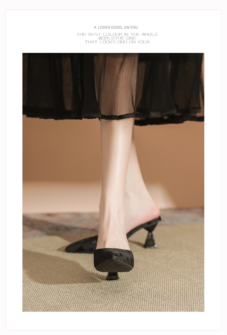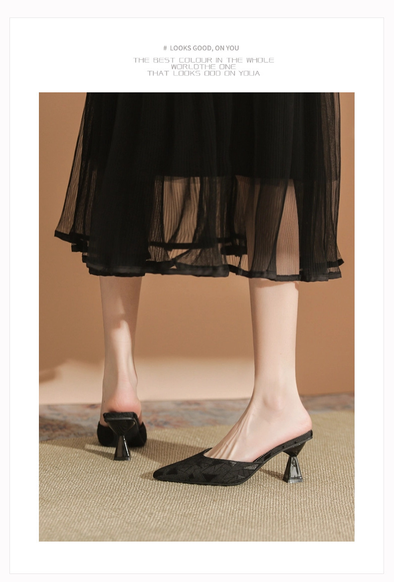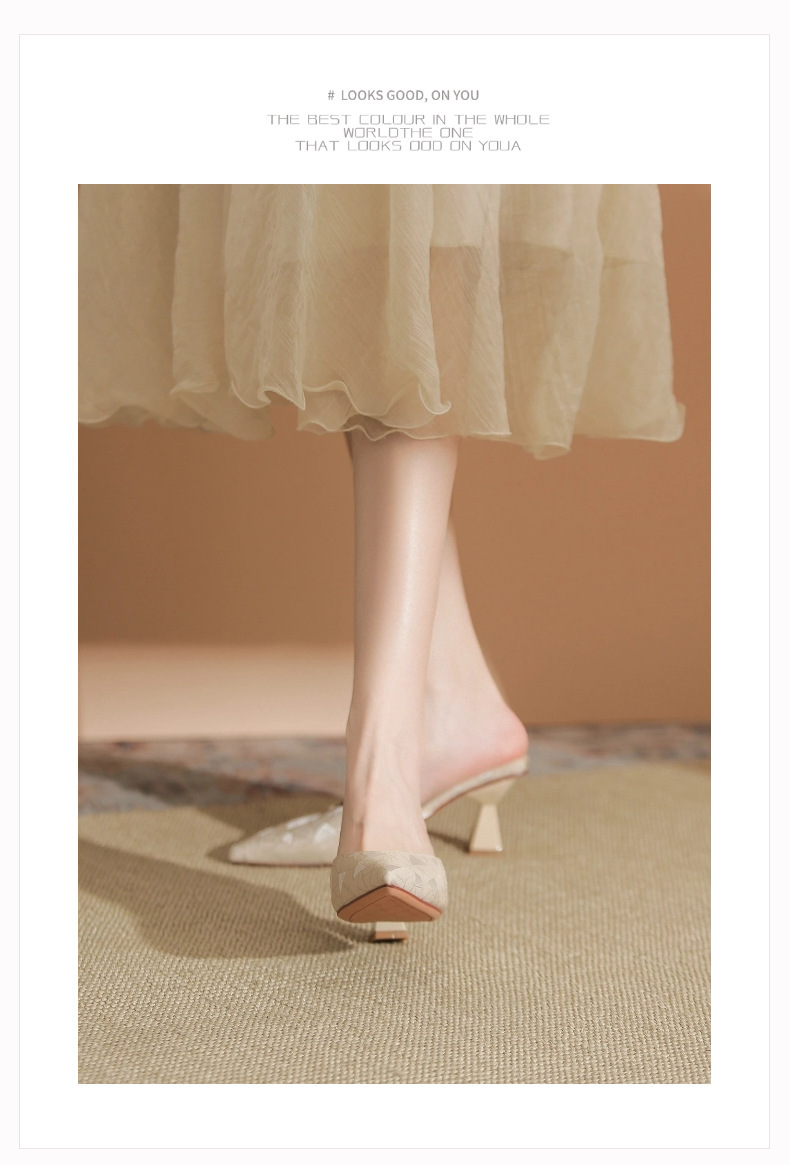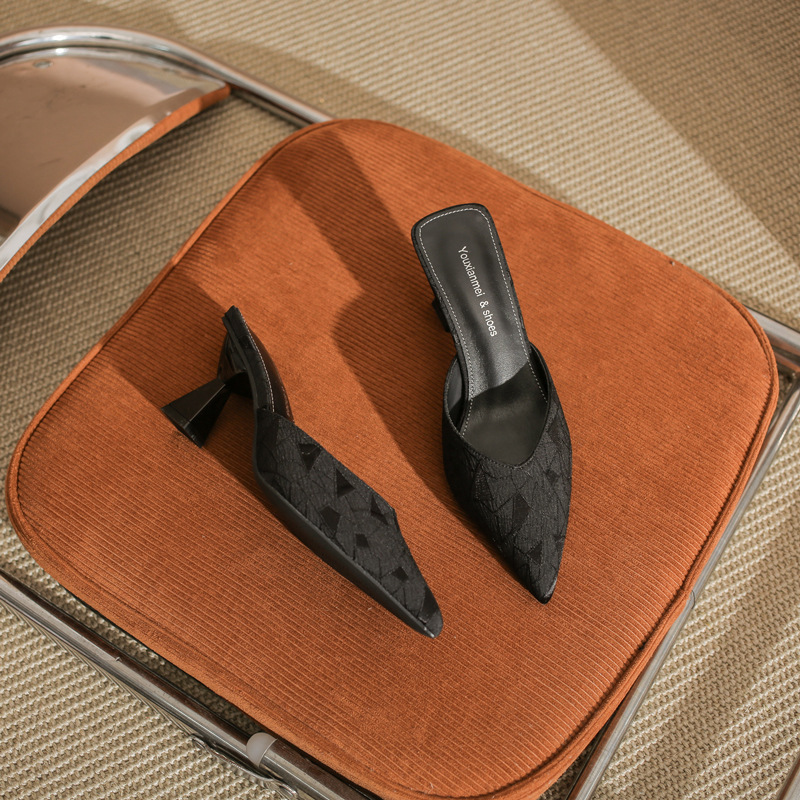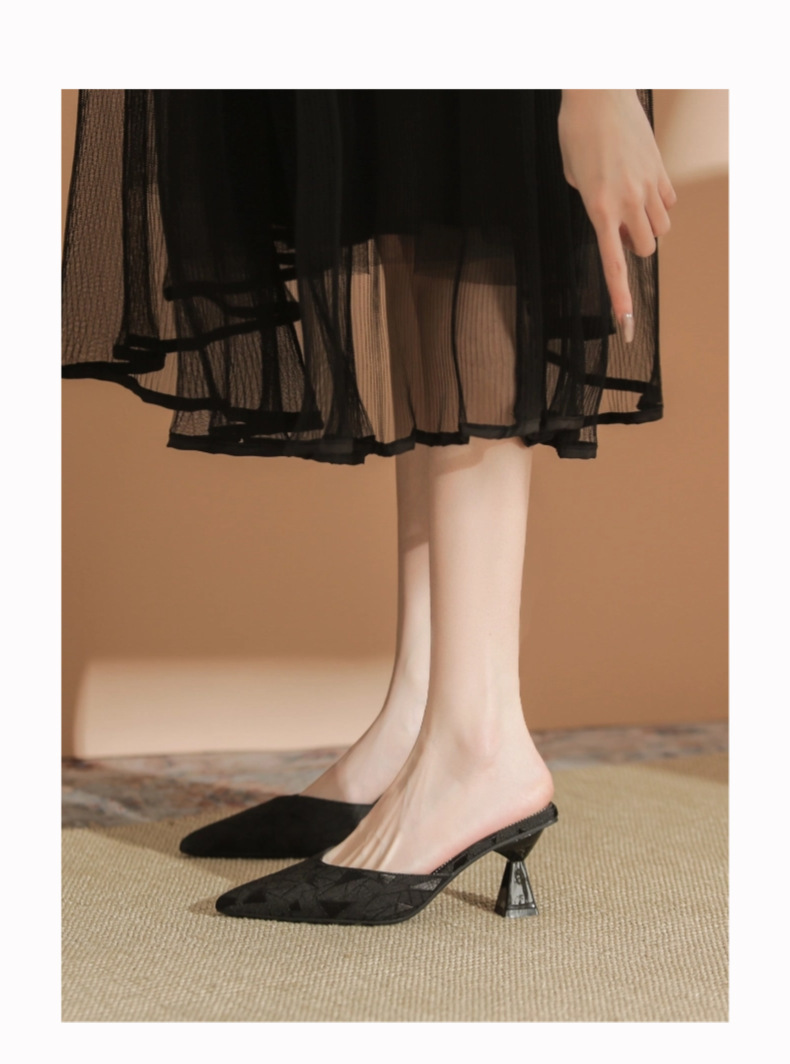 2025 весна-лето толстый каблук остроносые полусабо внешняя торговля французская мода универсальный стиль высокий каблук уличные сандалии кросс-граничная торговля