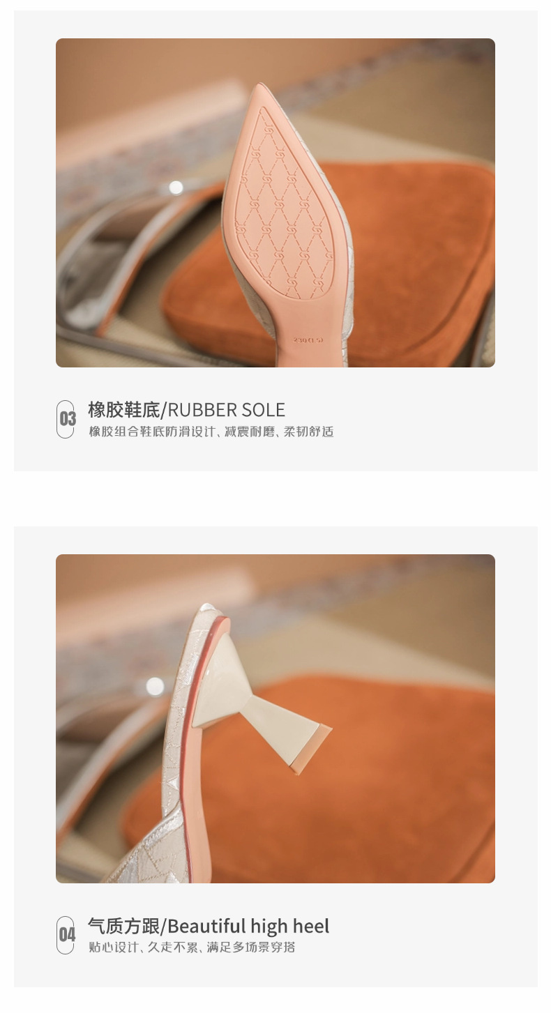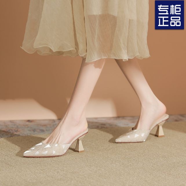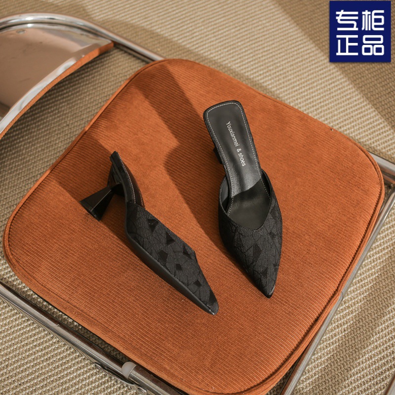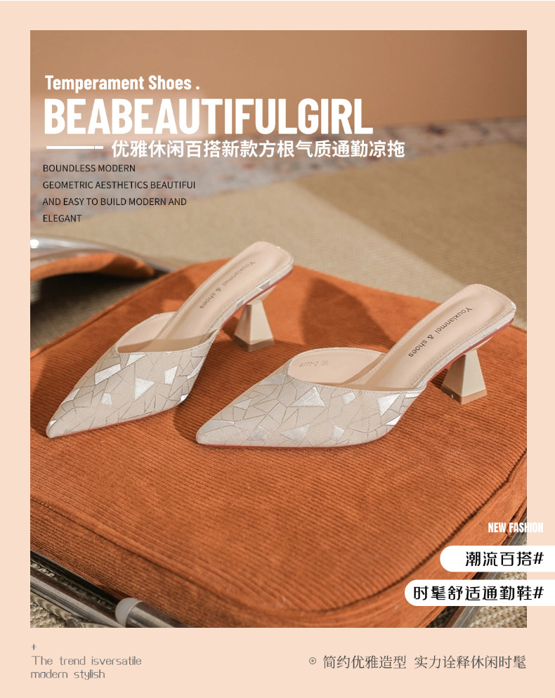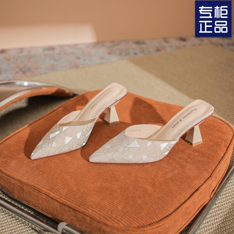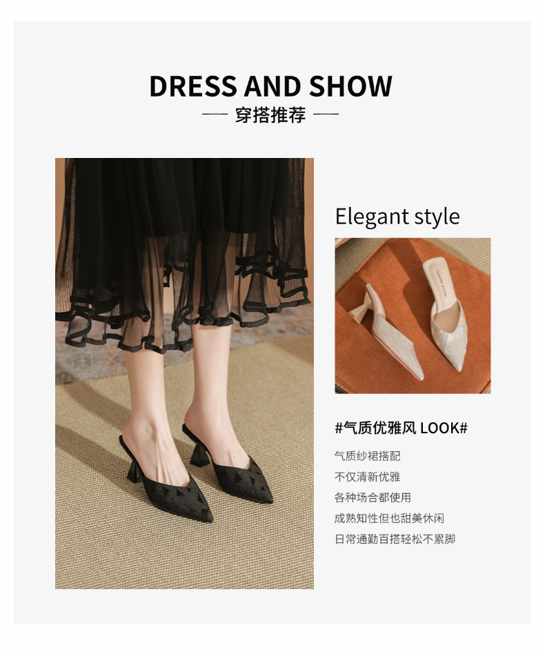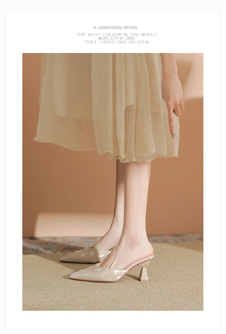 2025 весна-лето толстый каблук остроносые полусабо внешняя торговля французская мода универсальный стиль высокий каблук уличные сандалии кросс-граничная торговля
