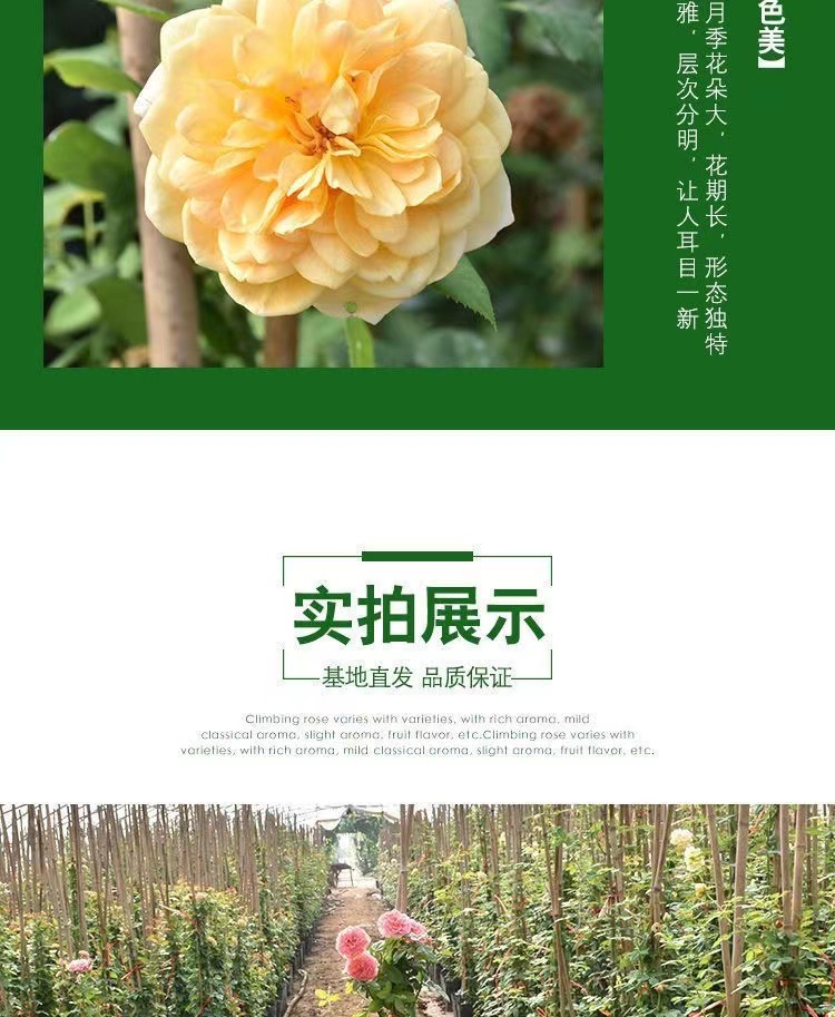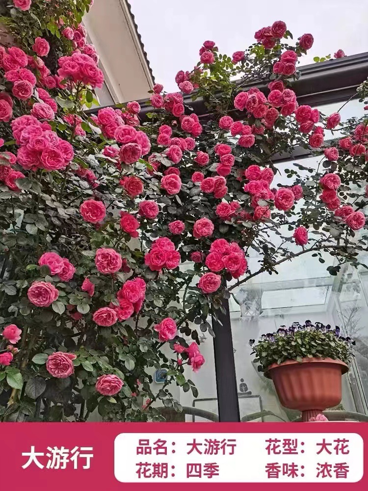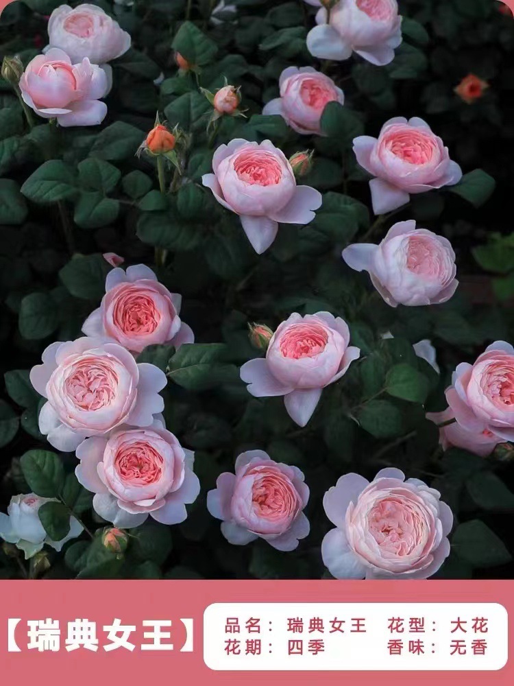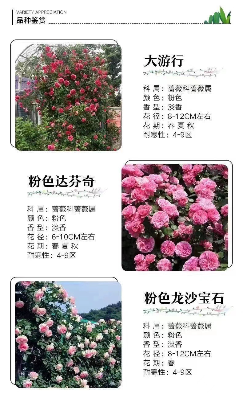 Один кусок розовых саженцев, виноградных роз, очень крупных цветочных лазающих растений, четырехсезонных цветущих роз в горшках.