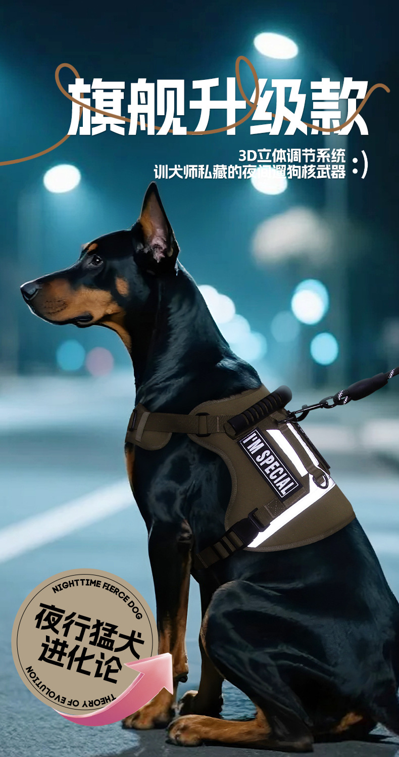 Тактический шлейко-поводок для крупных собак, легкий, с защитой от побега, для средних и крупных пород, светоотражающий, для использования на улице