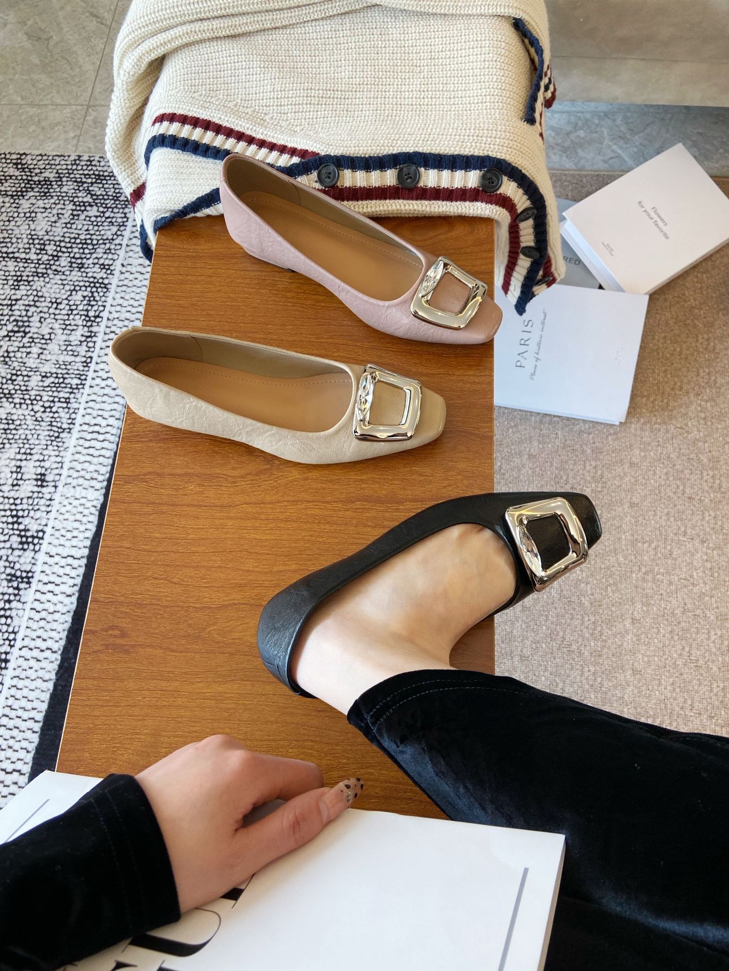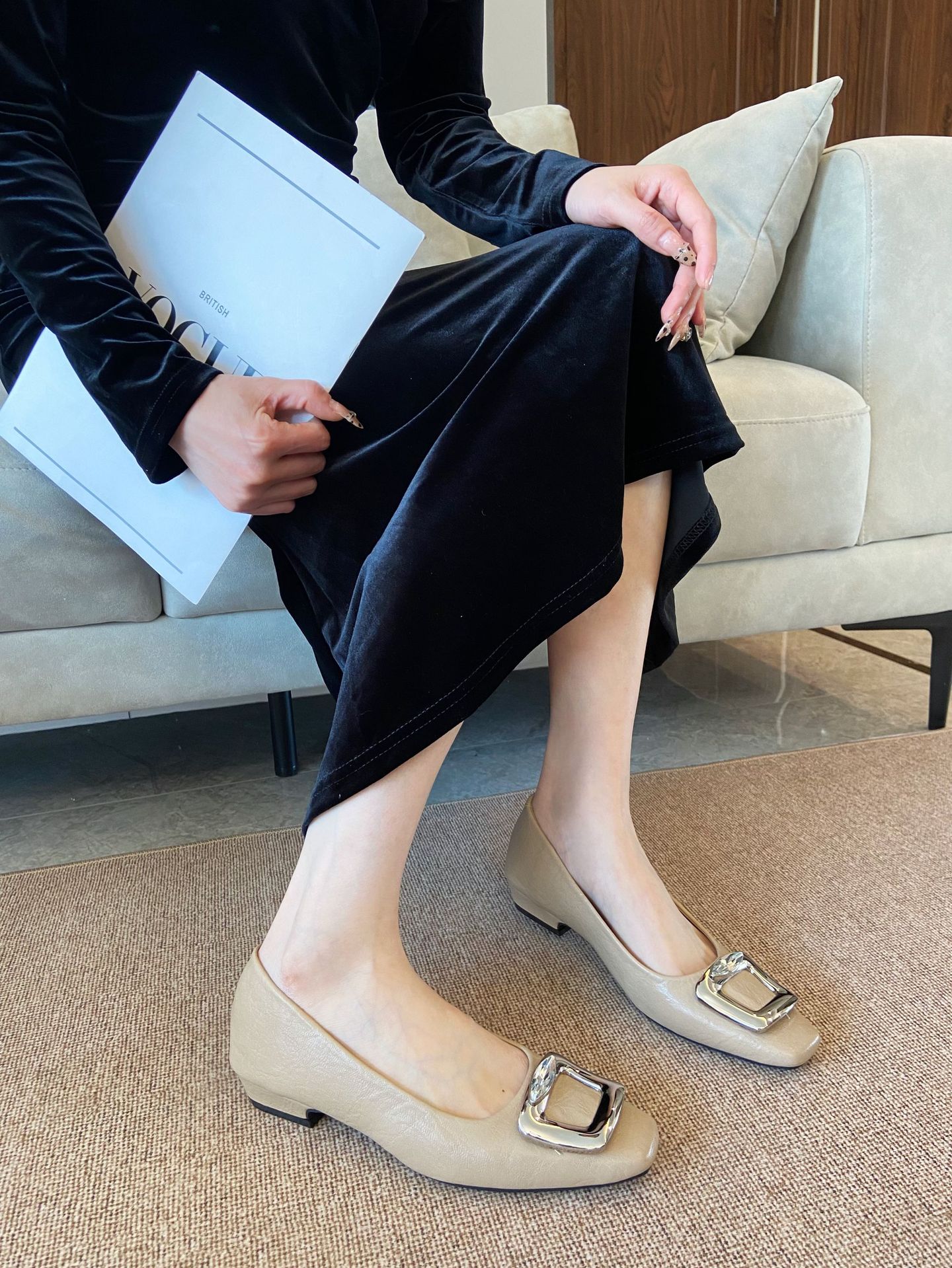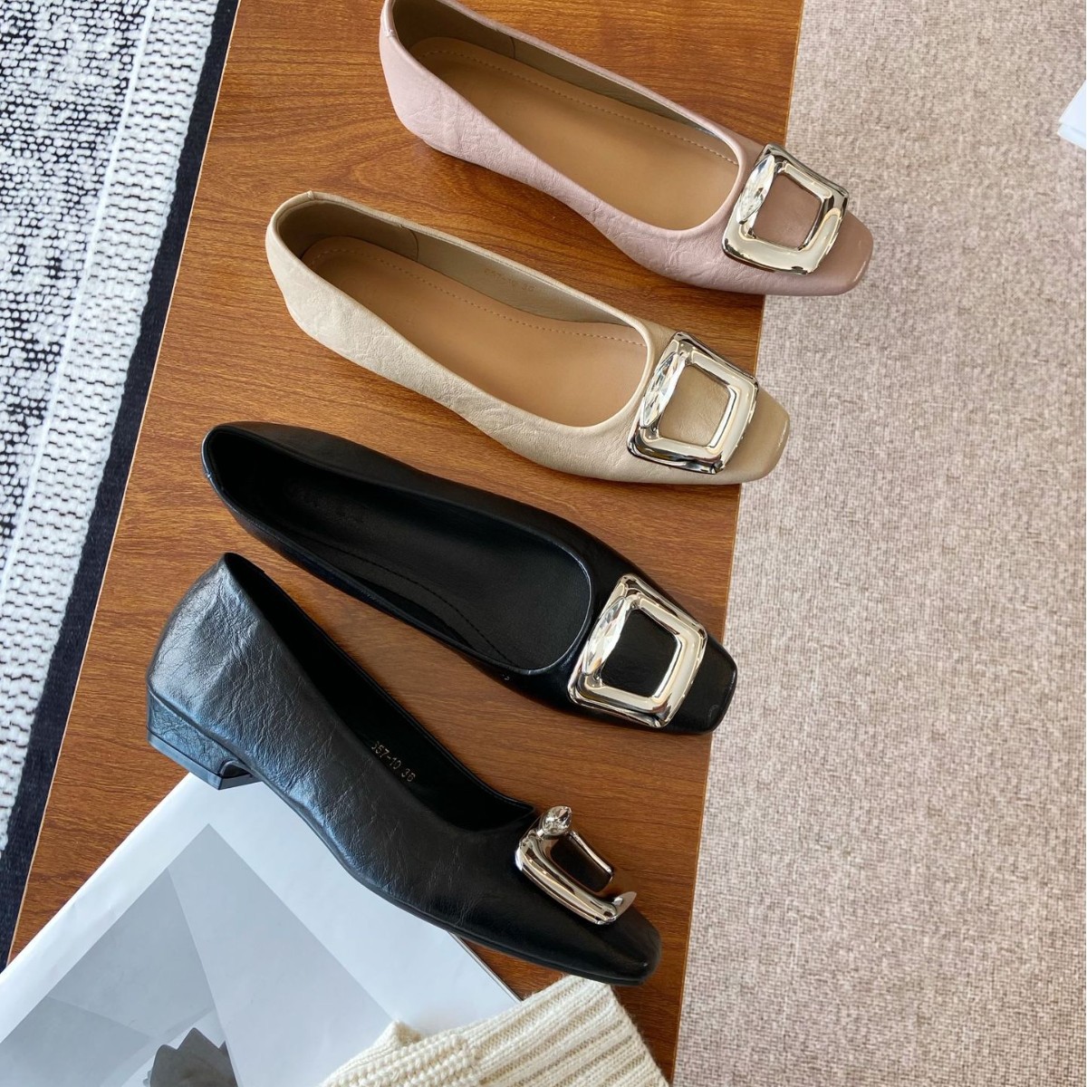 Элегантные черные туфли-лодочки с квадратным носком и пряжкой для женщин, весна-осень 2025, новые, из мягкой кожи, на мягкой подошве, для повседневной носки.