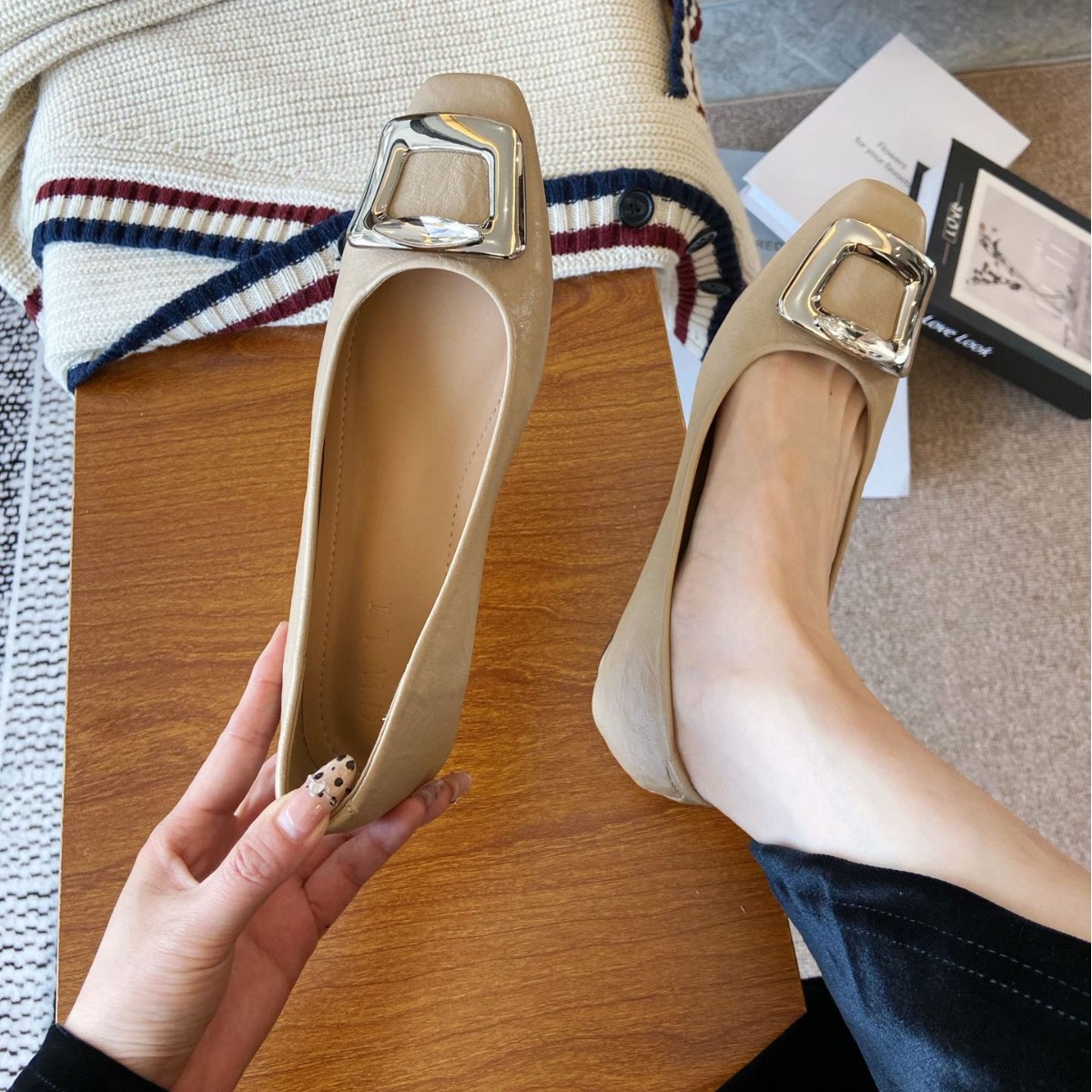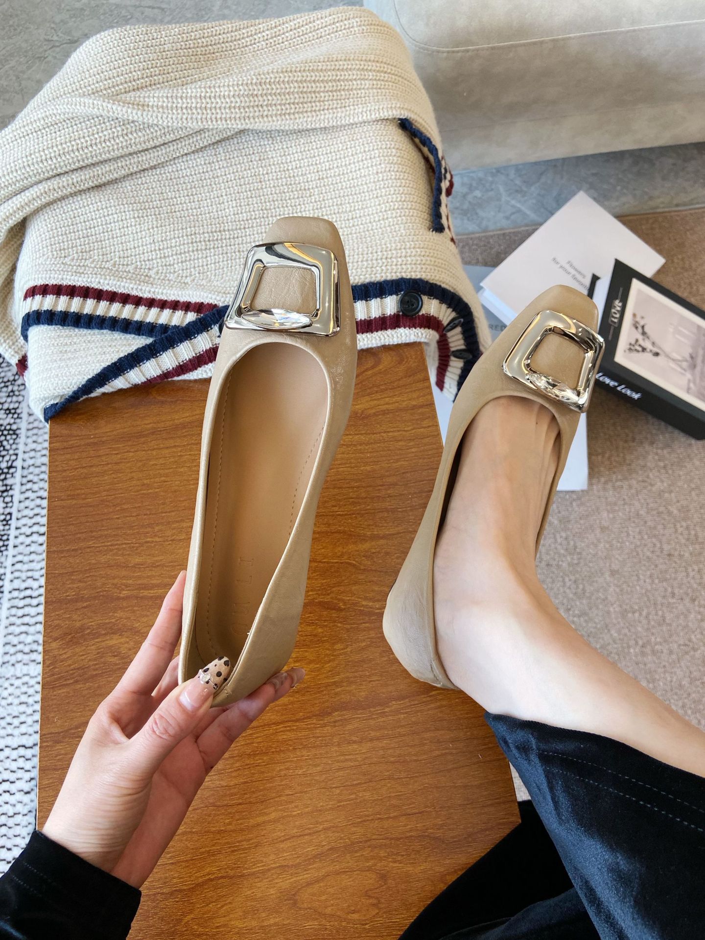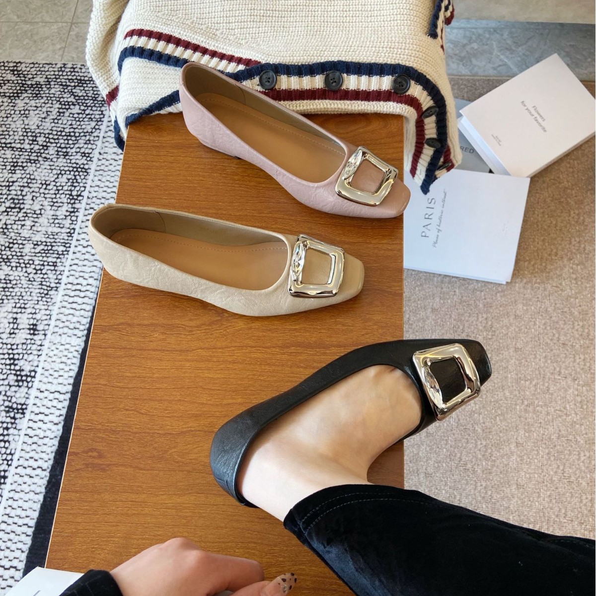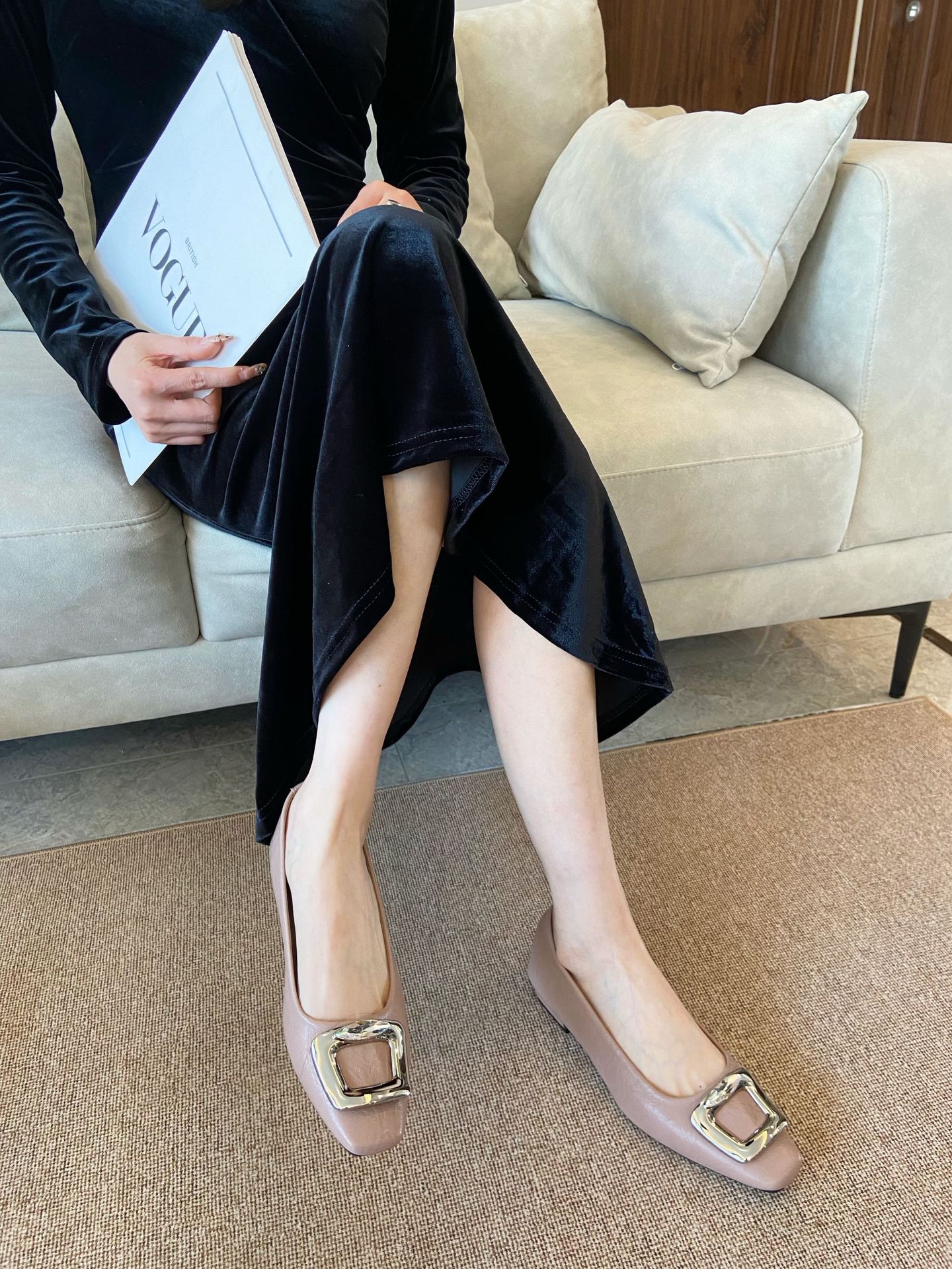 Элегантные черные туфли-лодочки с квадратным носком и пряжкой для женщин, весна-осень 2025, новые, из мягкой кожи, на мягкой подошве, для повседневной носки.