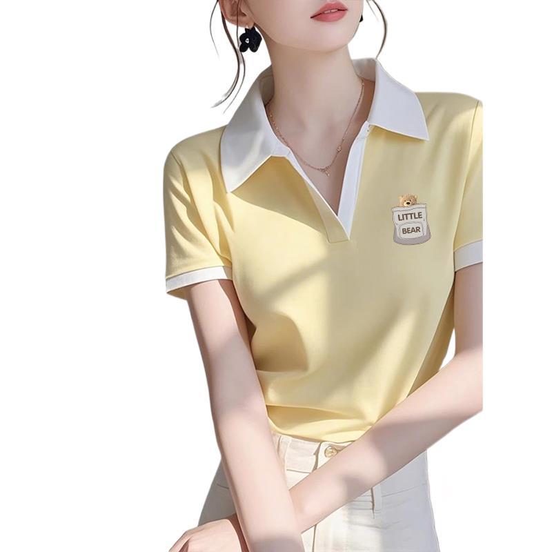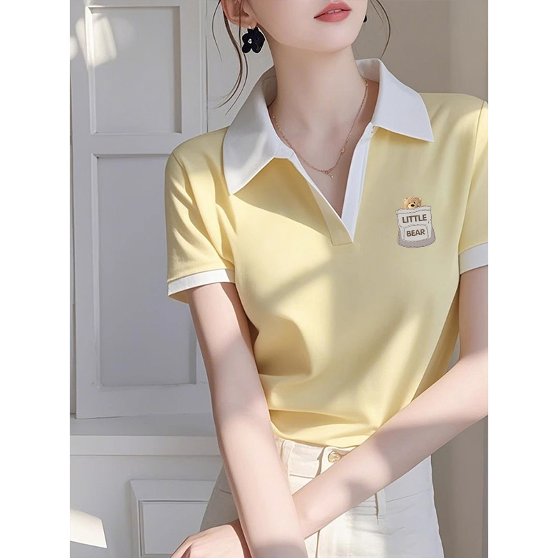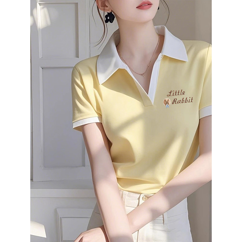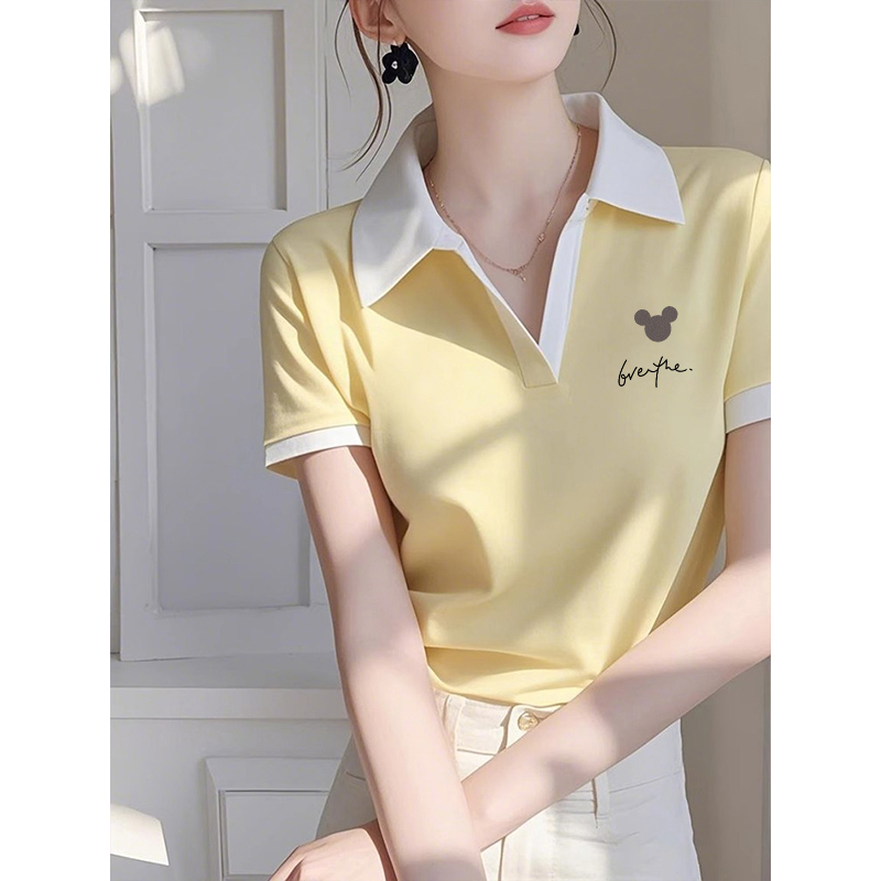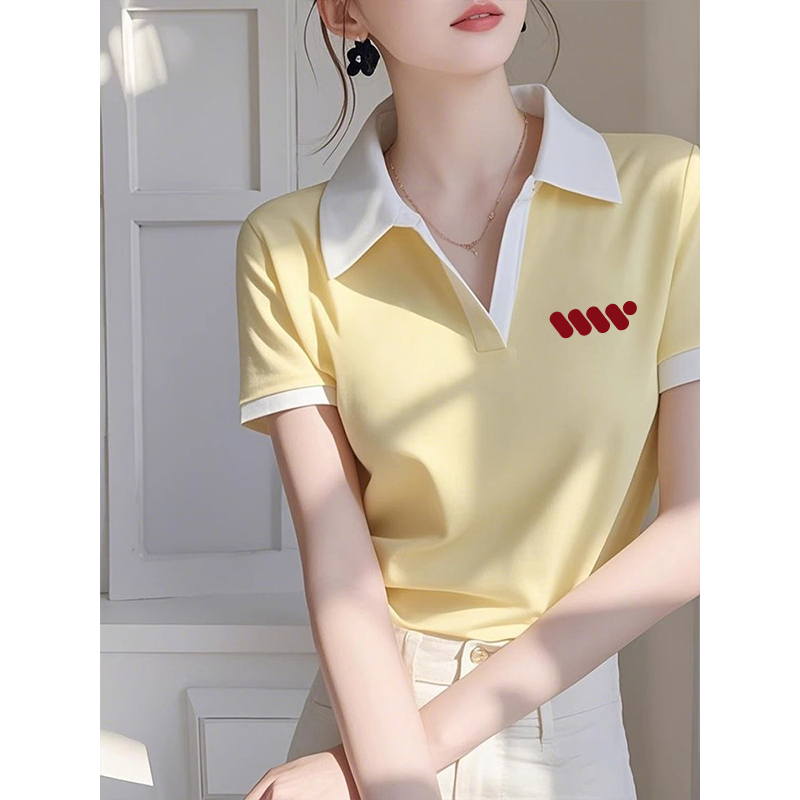 Хлопковая футболка контрастного цвета с воротником-поло на правое плечо и короткими рукавами для женщин, летняя футболка для похудения и множество супер красивых топов Pamine.