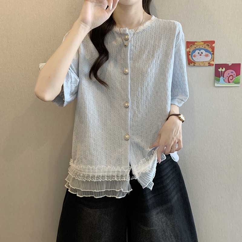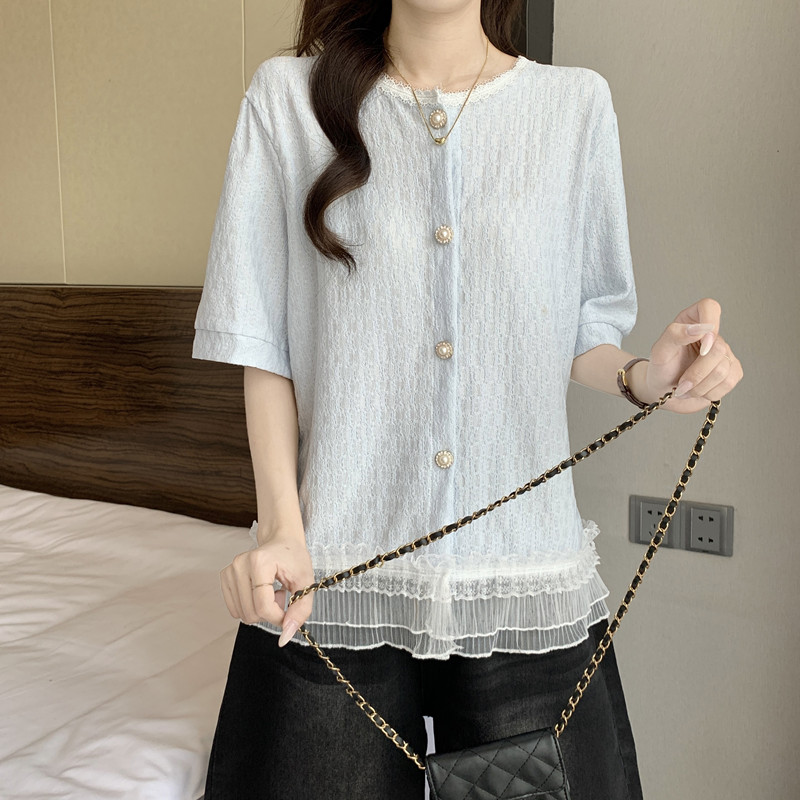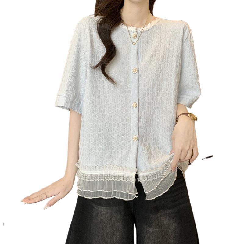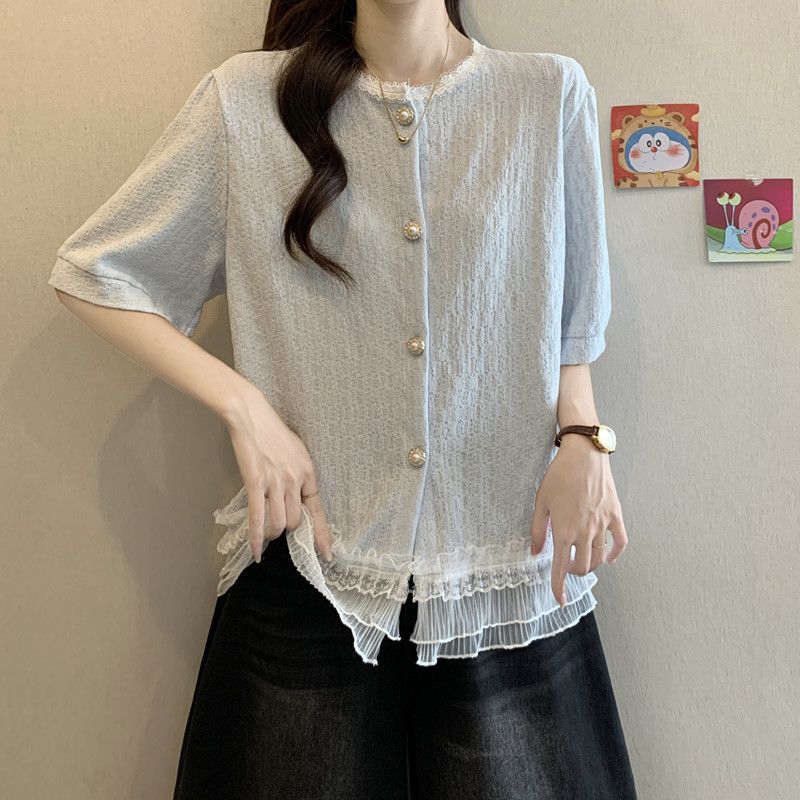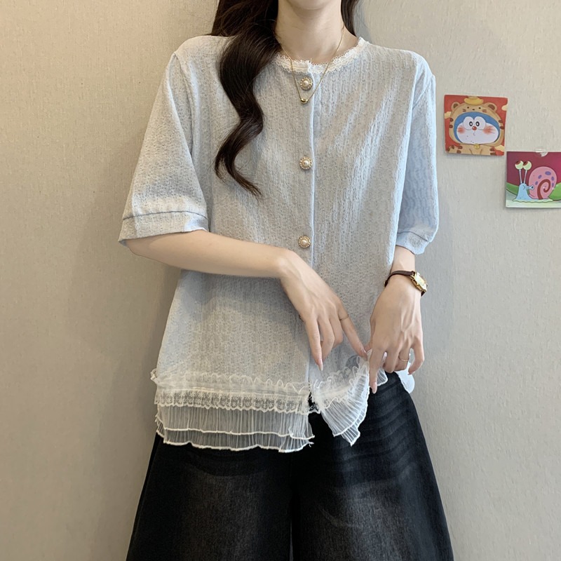 Женская рубашка с короткими рукавами и французским кружевом, летняя нижняя рубашка для полных девушек, топ большого размера, закрывающий живот