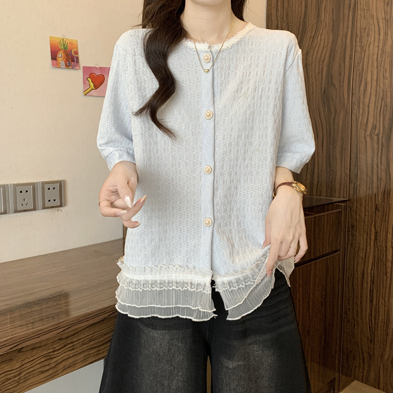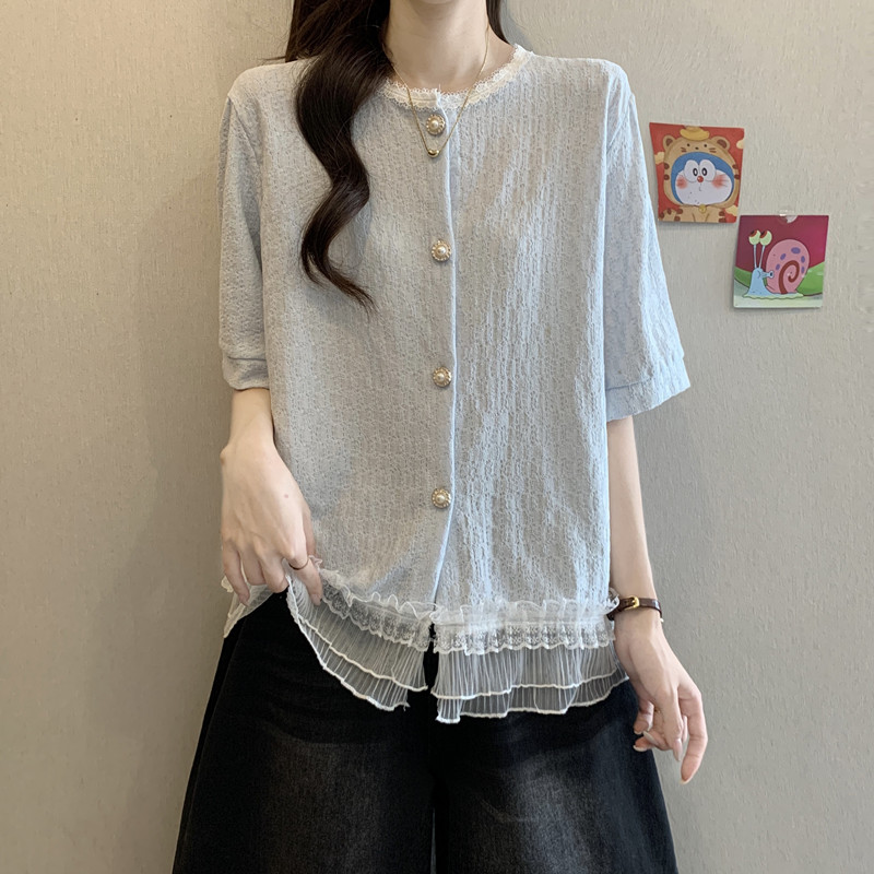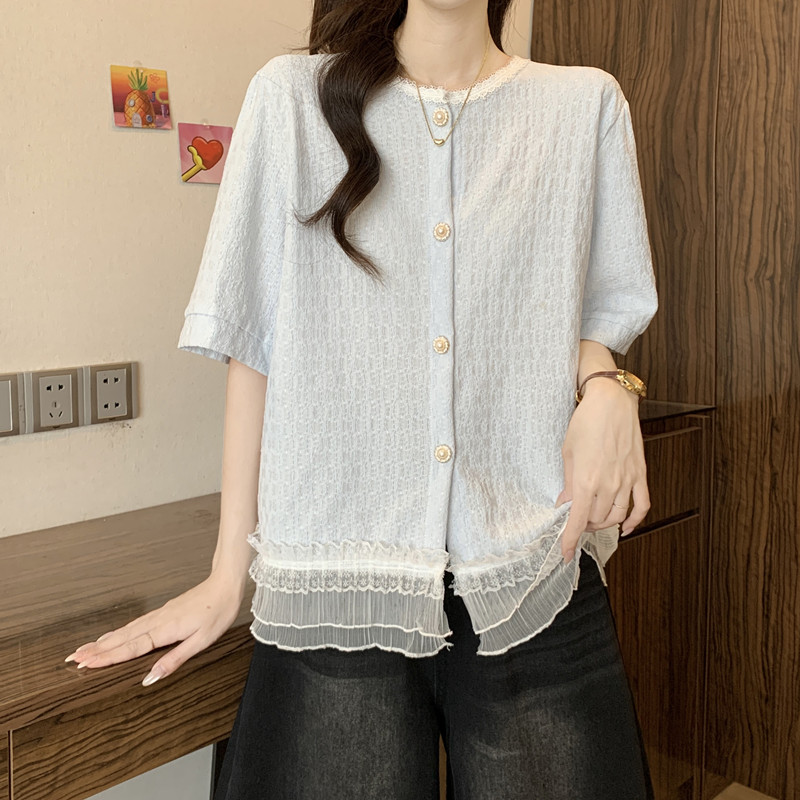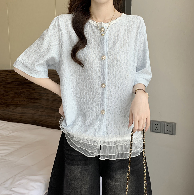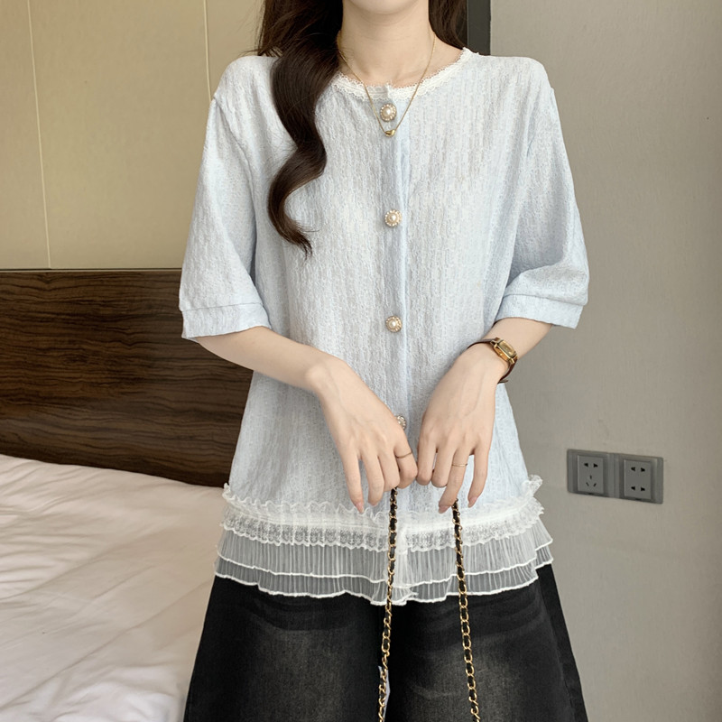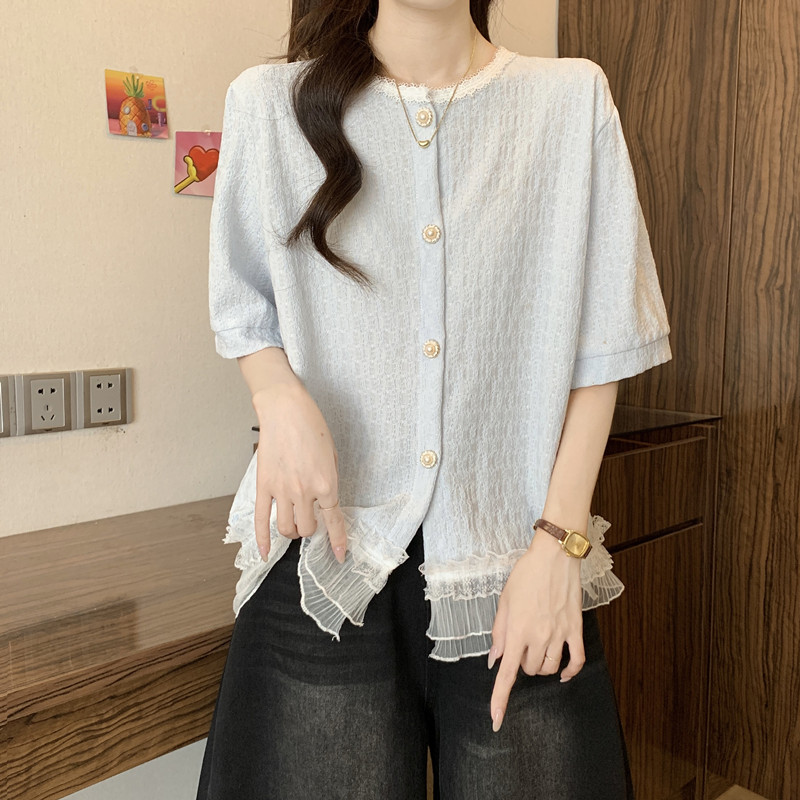 Женская рубашка с короткими рукавами и французским кружевом, летняя нижняя рубашка для полных девушек, топ большого размера, закрывающий живот