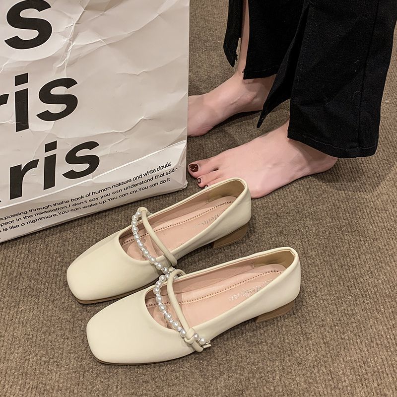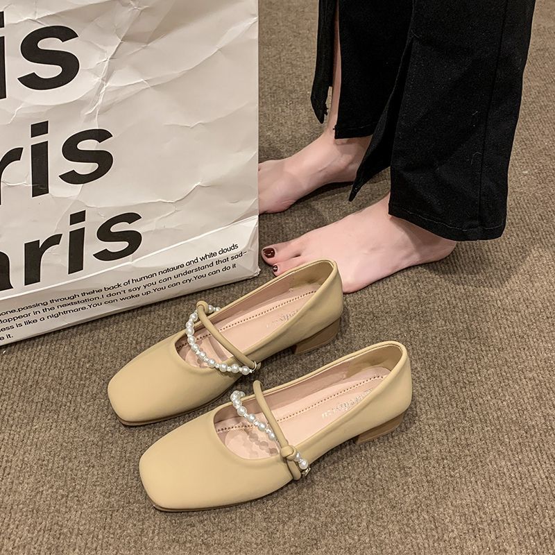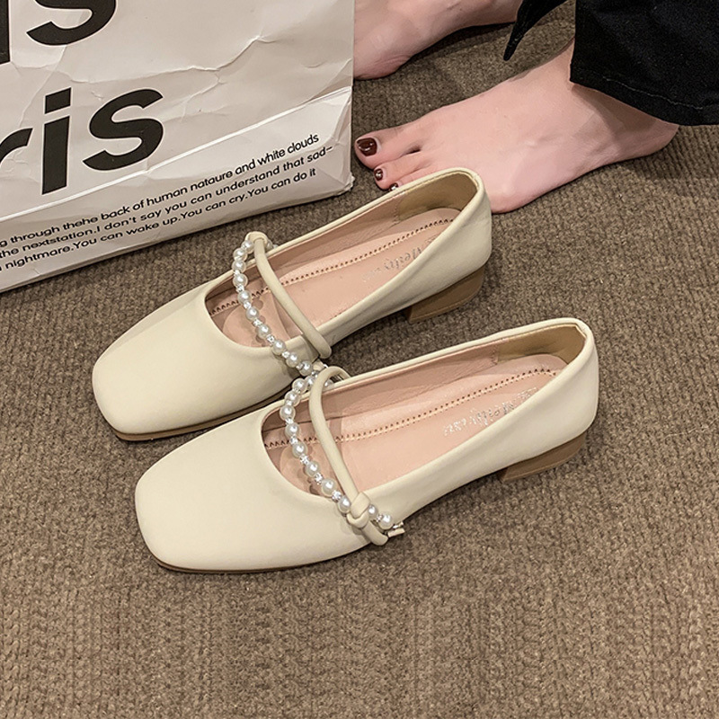[Собралось 6122 человека] Женские туфли на плоской подошве на толстом каблуке, весенний новый стиль, пряжка с жемчугом, Мэри Джейн, на низком каблуке с юбкой, мягкая подошва