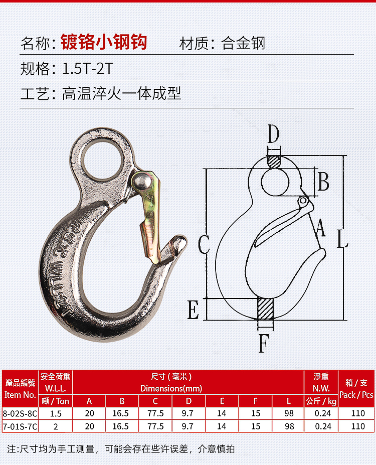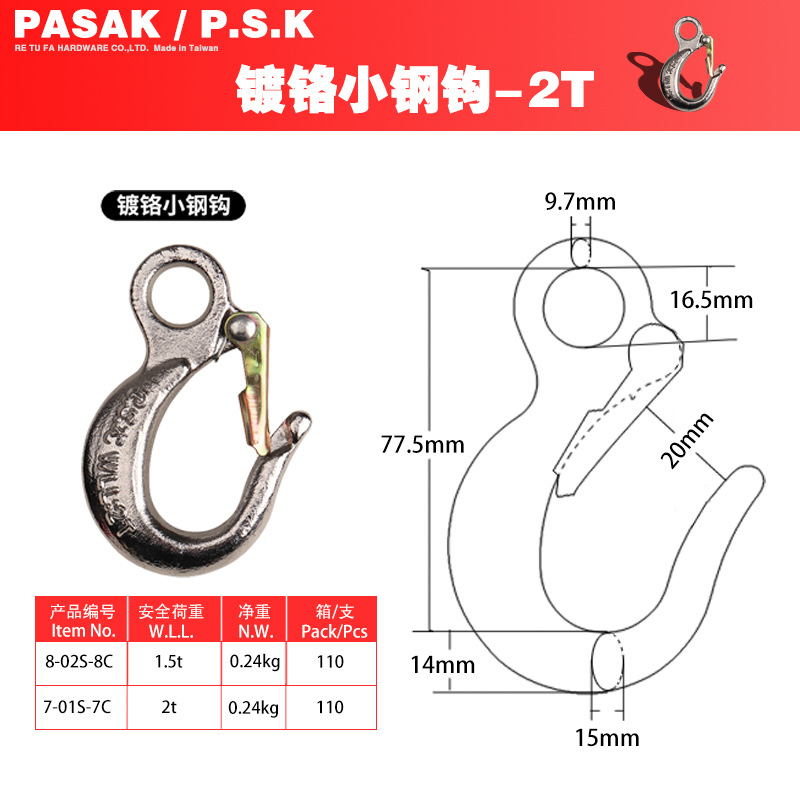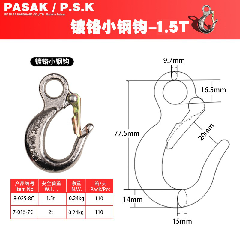 Тайваньский хромированный маленький стальной крюк 1,5-2 т, подъемный инструмент, высокая несущая способность, надежный и прочий