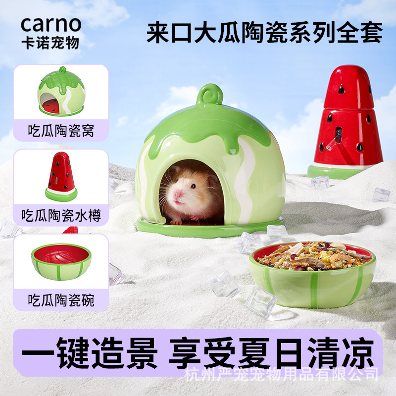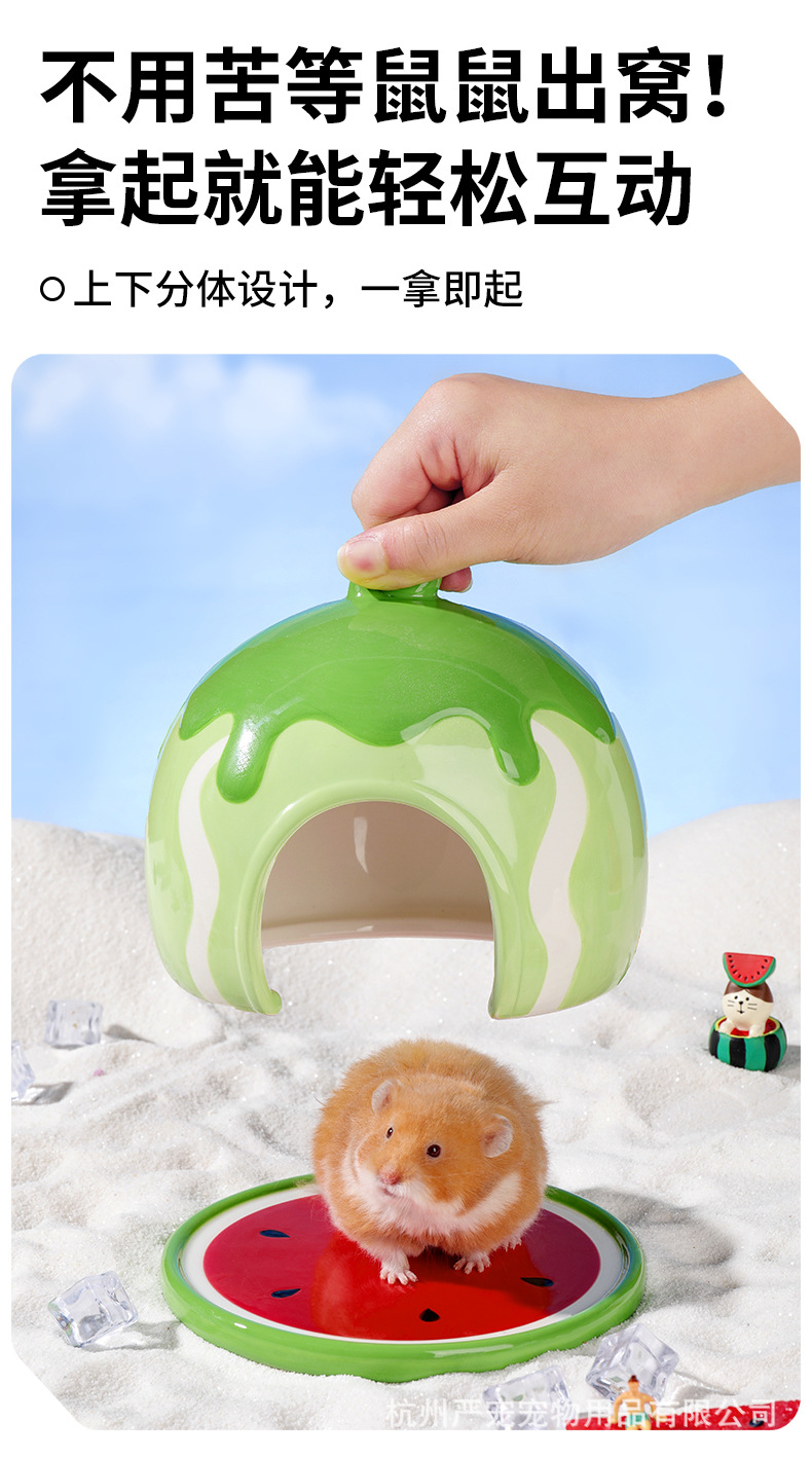 Керамический домик-арбуз для хомяков для охлаждения летом, ледяной домик, игрушка-бутылка для воды для золотистых хомяков.