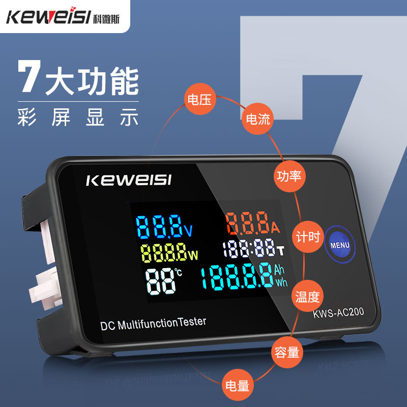 Цифровой дисплей постоянного тока, напряжение и амперметр, цветной экран, тестер мощности и электроэнергии, головка прибора обнаружения 0-200 В 0-100 А