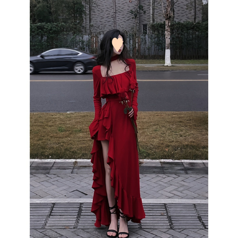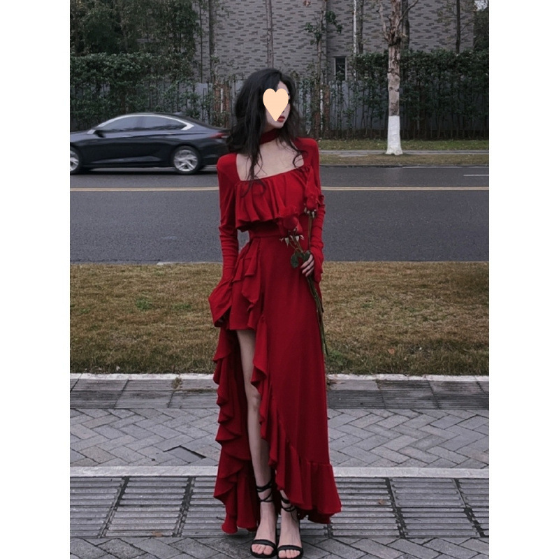 Французское романтическое красное платье с большой юбкой в стиле Хепберн для женщин, летняя художественная длинная юбка высокого класса в тайском стиле