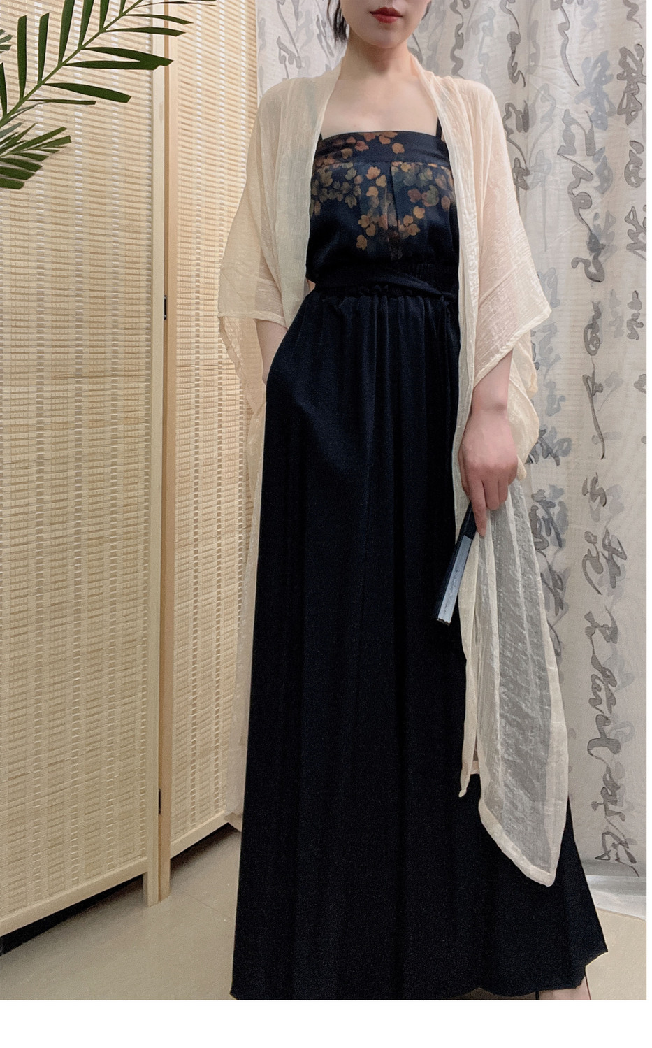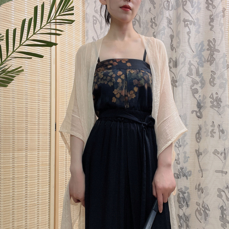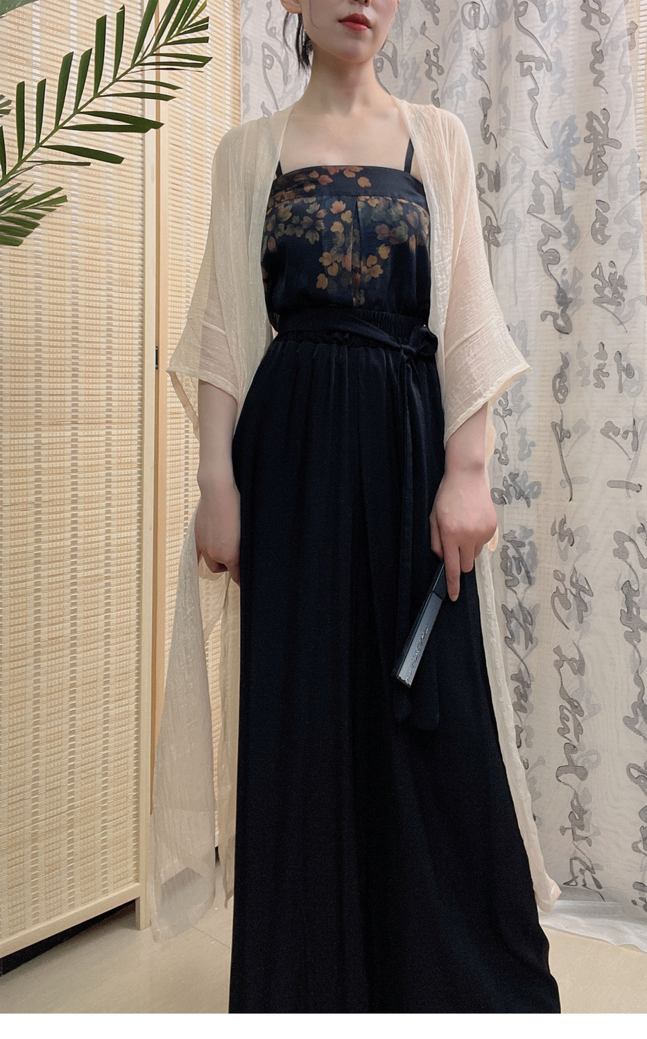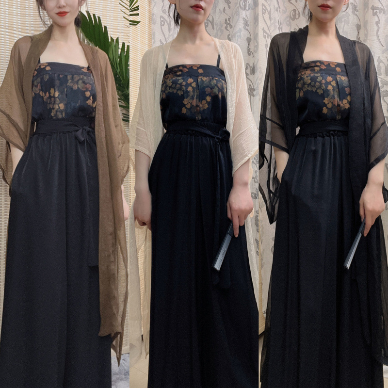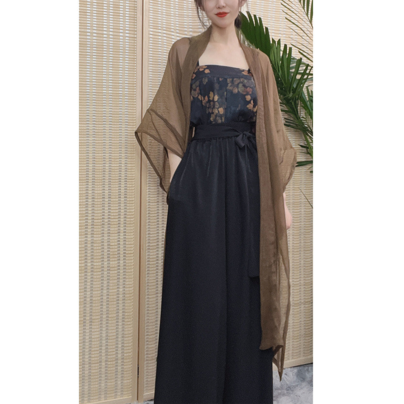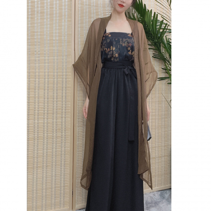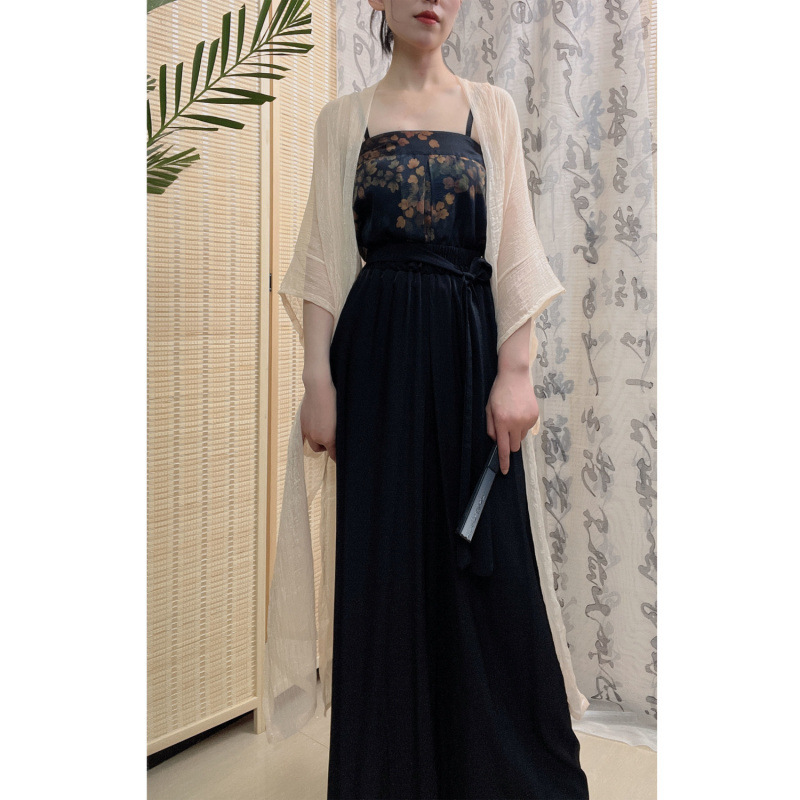 Династия Сун, храм Чангань, двубортная длинная рубашка с половиной рукавов Hanfu и подтяжками, модифицированные брюки династии Сун, повседневный стиль