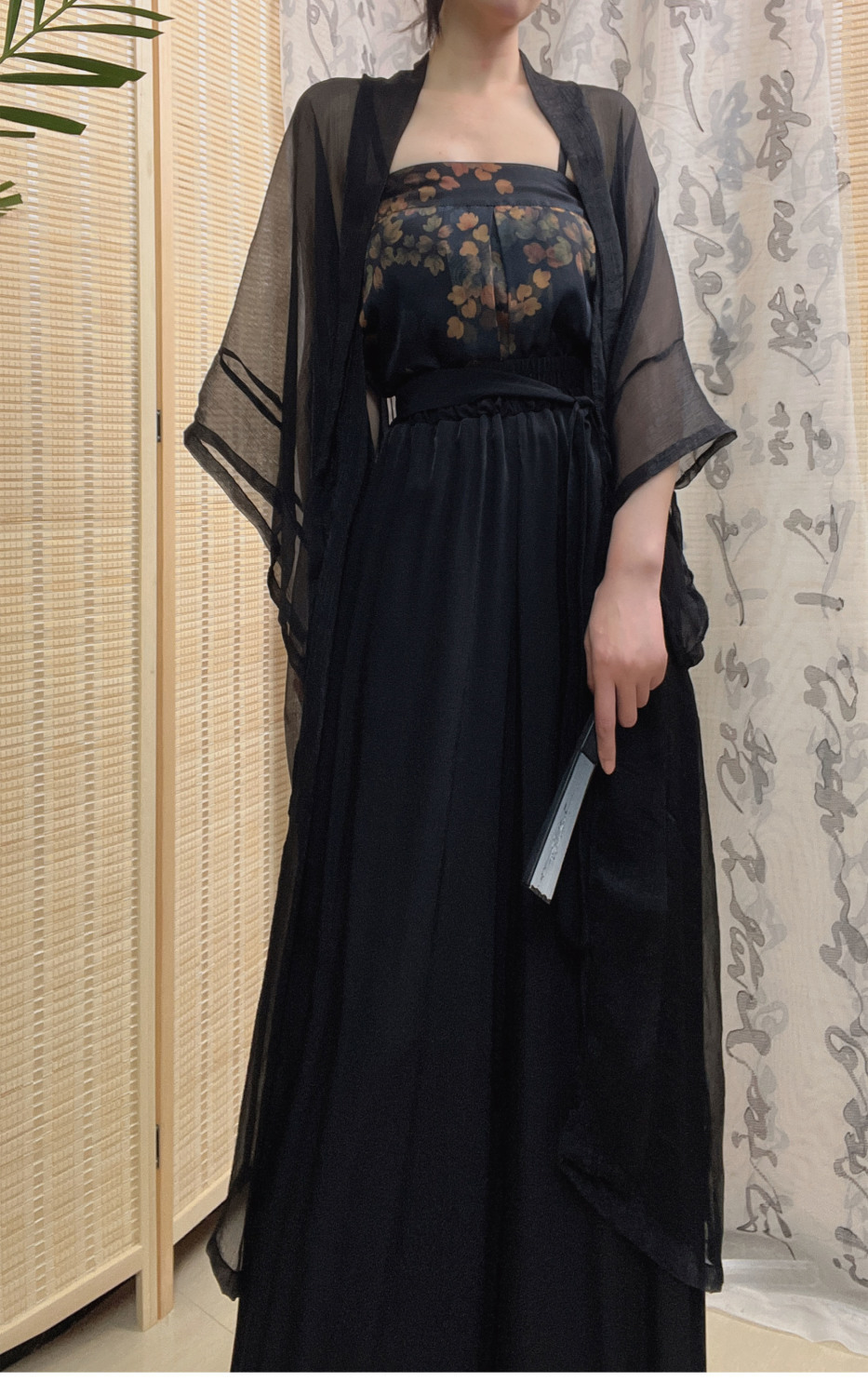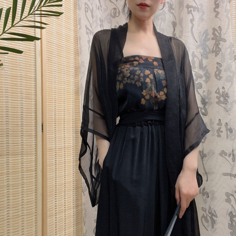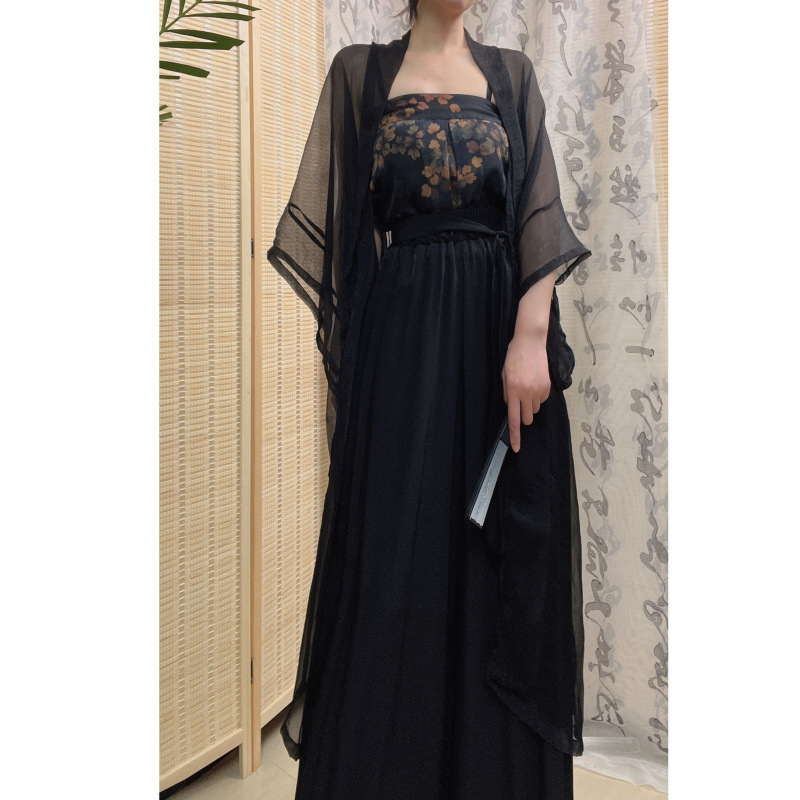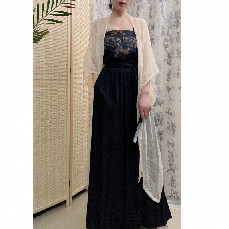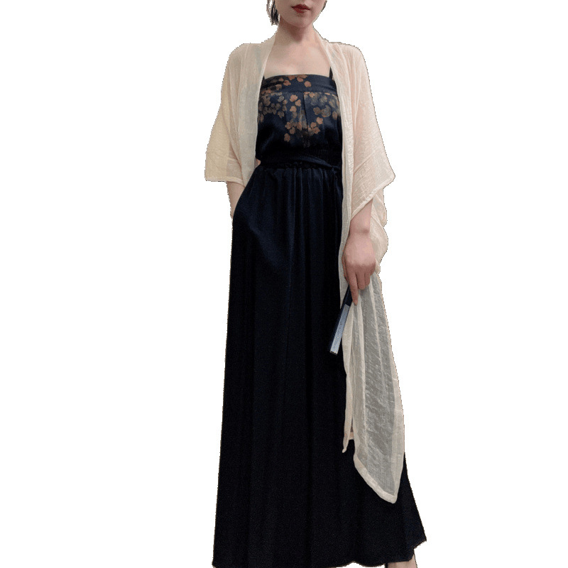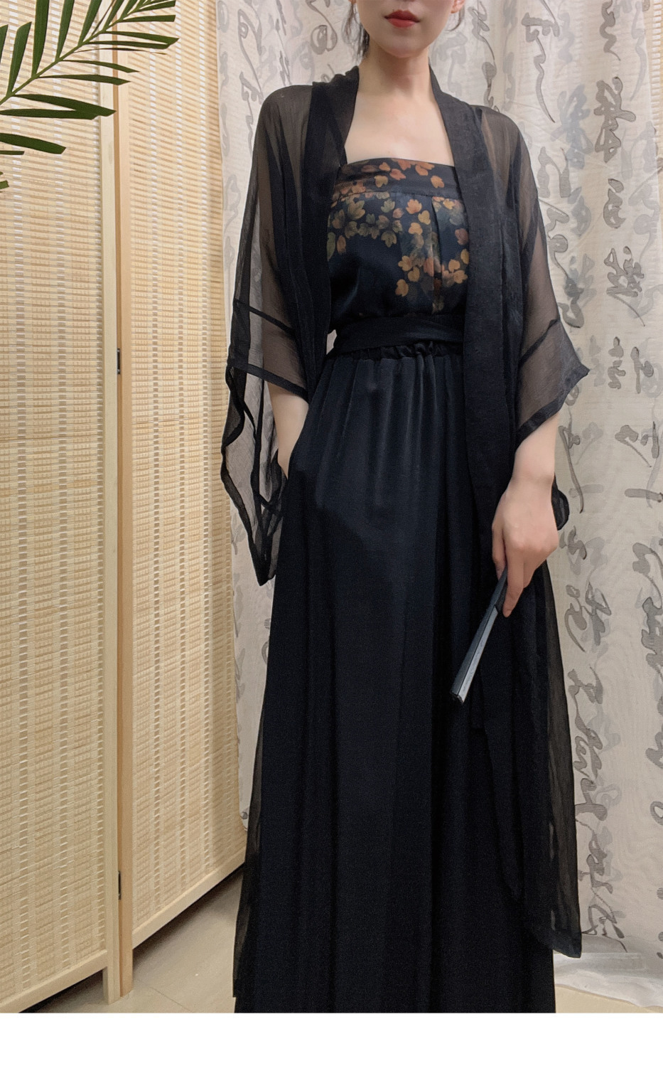 Династия Сун, храм Чангань, двубортная длинная рубашка с половиной рукавов Hanfu и подтяжками, модифицированные брюки династии Сун, повседневный стиль