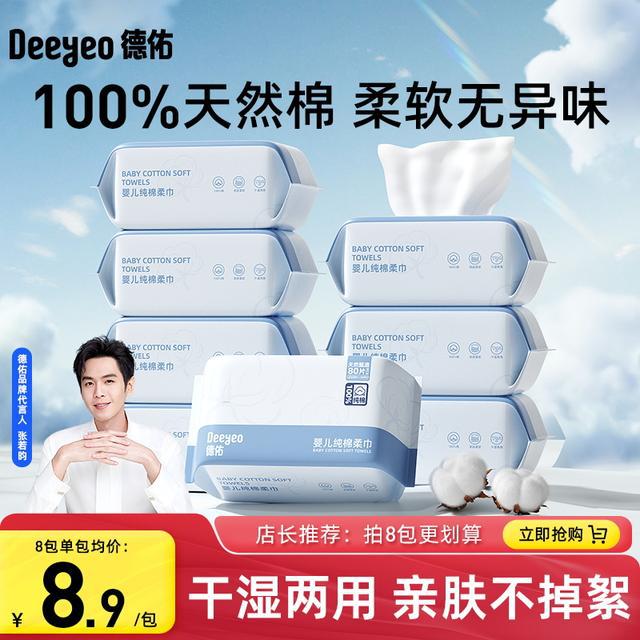 Мягкое хлопковое полотенце Deyou, детское влажное и сухое детское одноразовое полотенце, семейная упаковка, 80 влажных салфеток, нет
