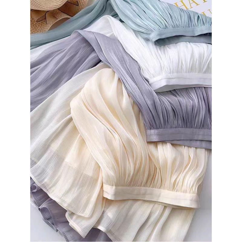 Элегантная юбка из перламутрового тюля, весна-лето, женская, средней длины, тонкая, драпированная, плиссированная, новый стиль 2025 года